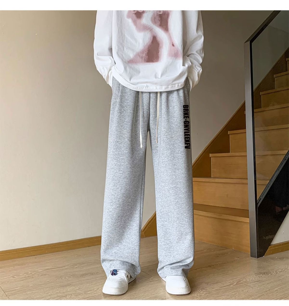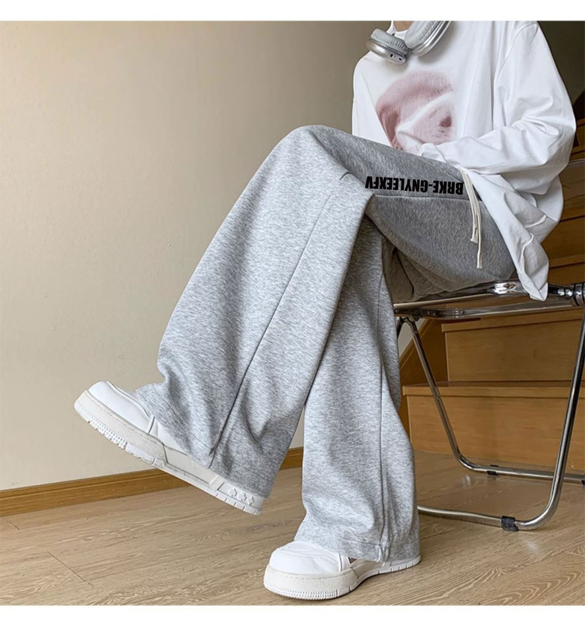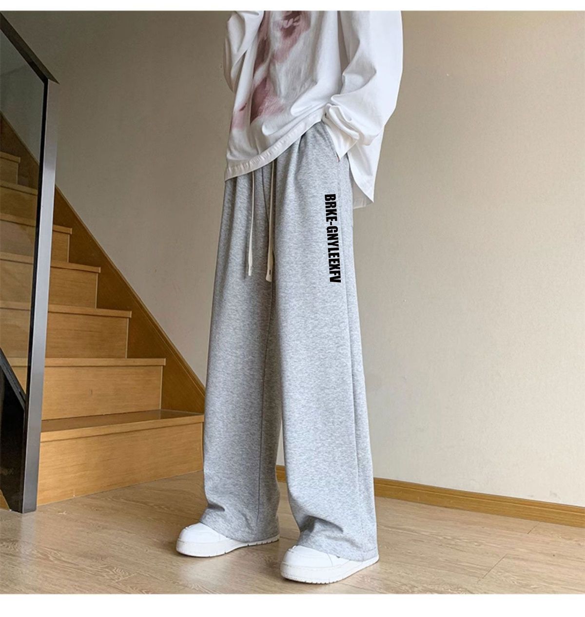 Популярные летние спортивные брюки для мужчин, модные студенческие спортивные штаны прямого кроя, свободные универсальные повседневные длинные брюки больших размеров для похудения.