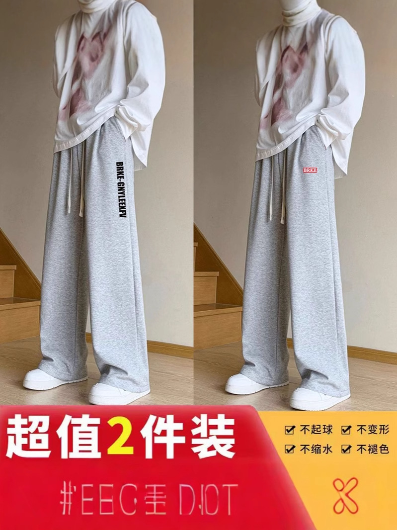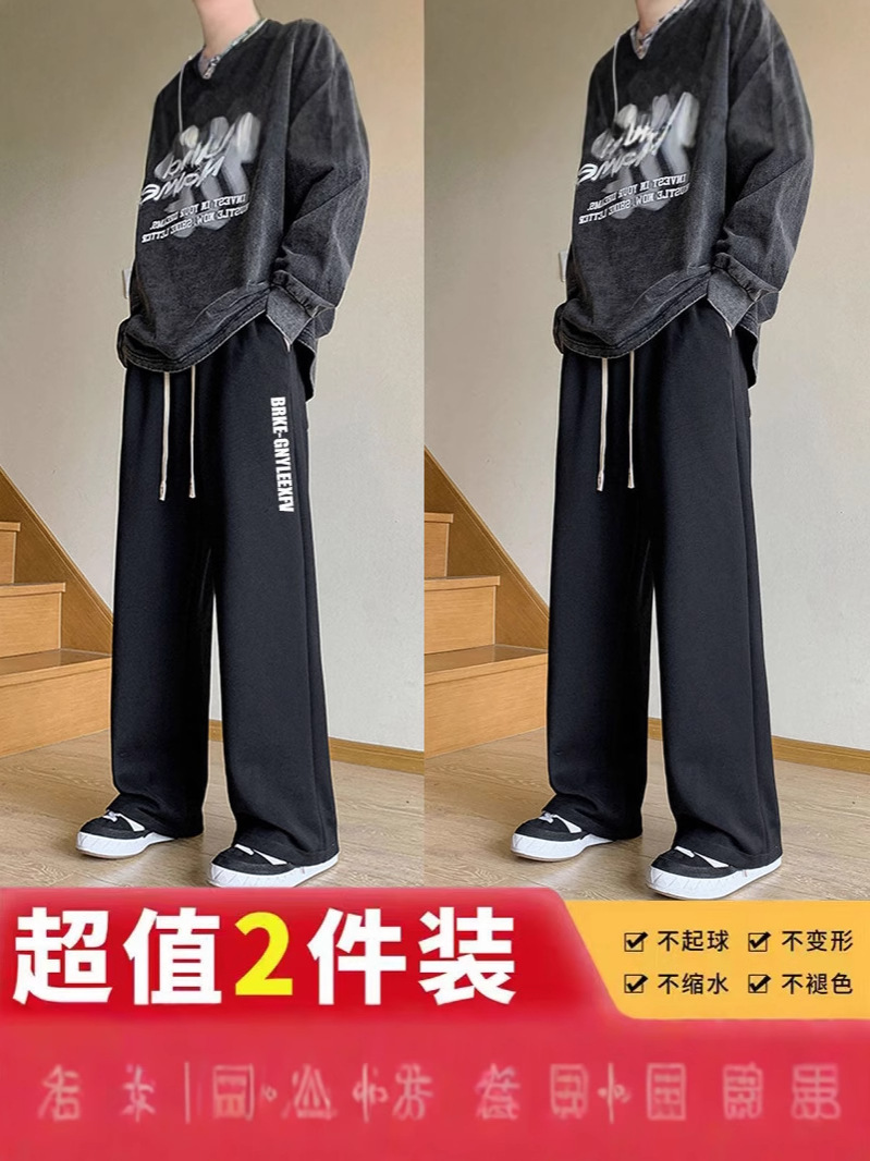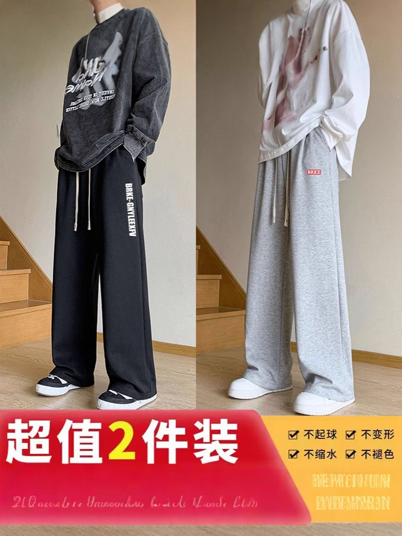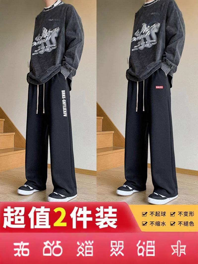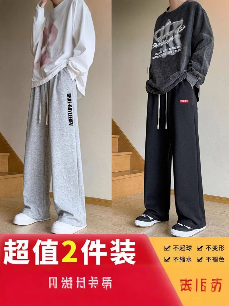 Популярные летние спортивные брюки для мужчин, модные студенческие спортивные штаны прямого кроя, свободные универсальные повседневные длинные брюки больших размеров для похудения.