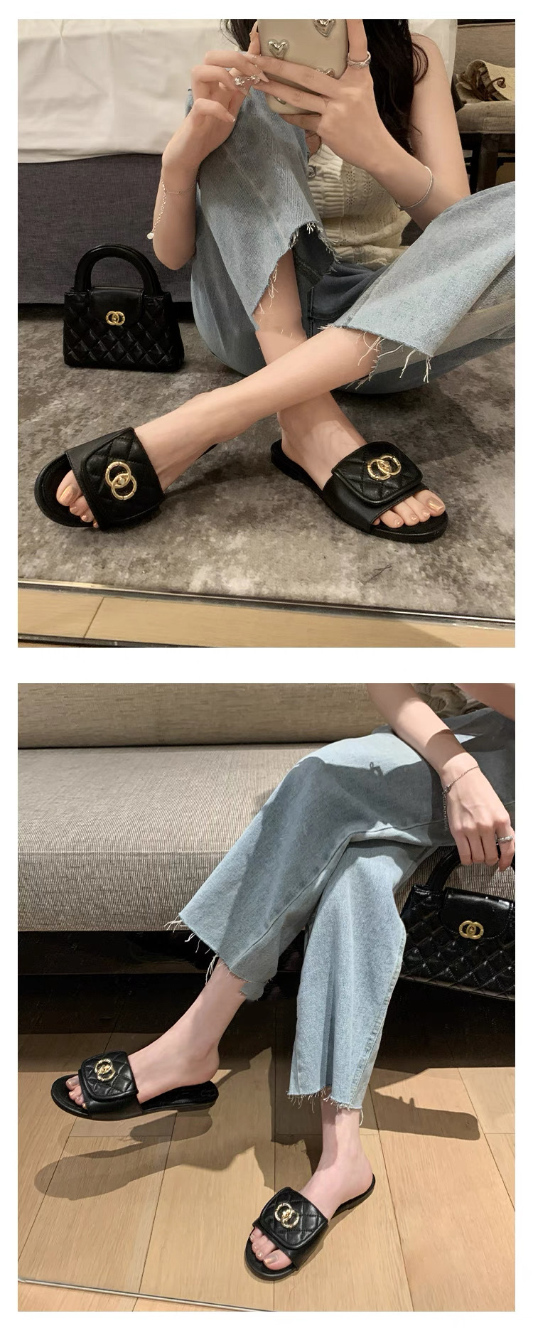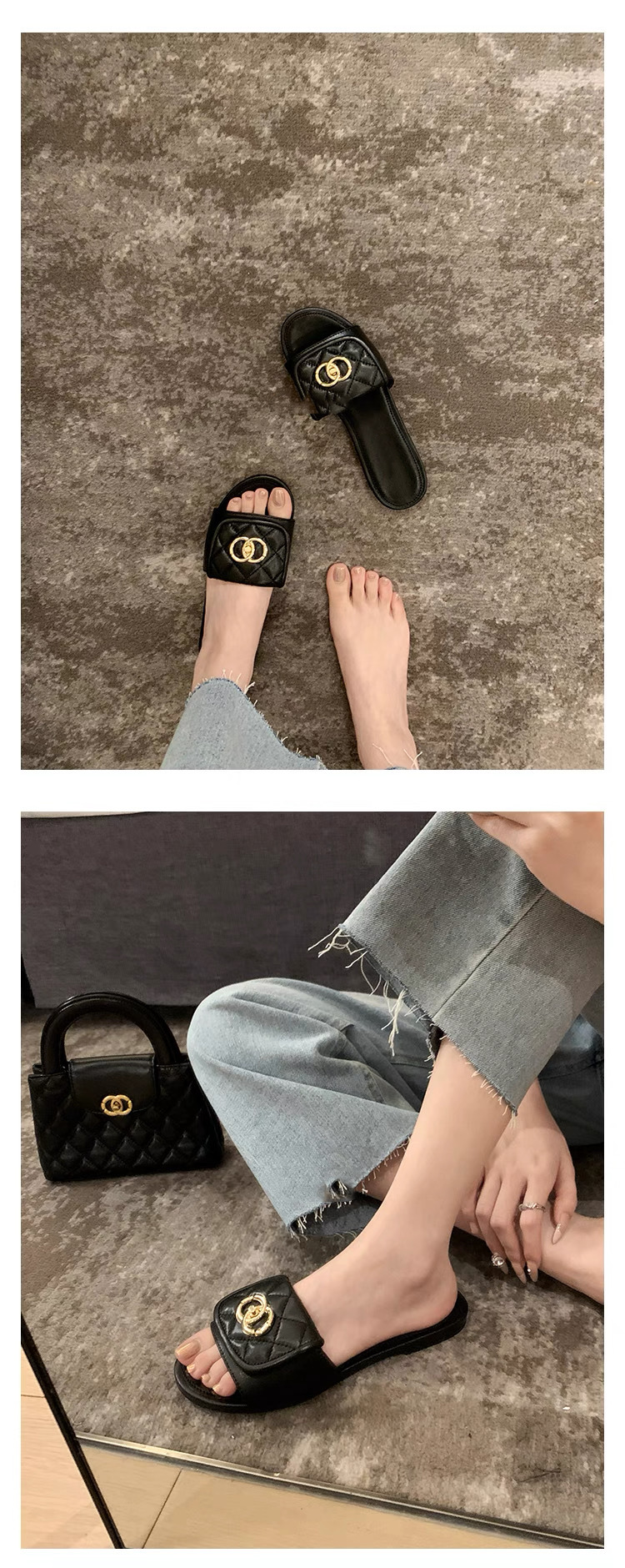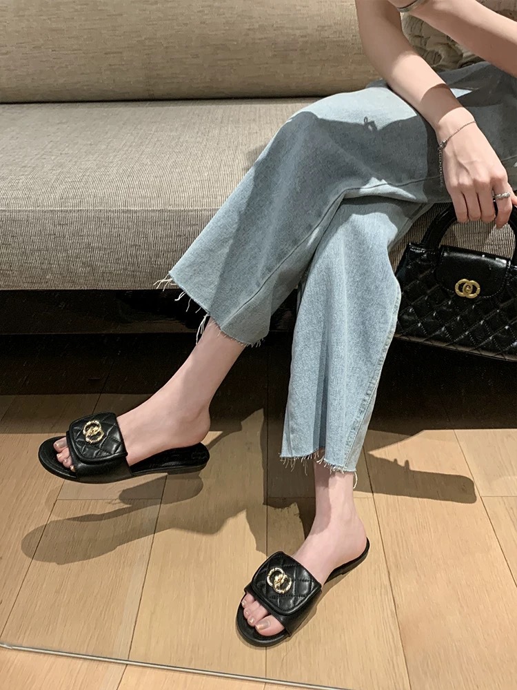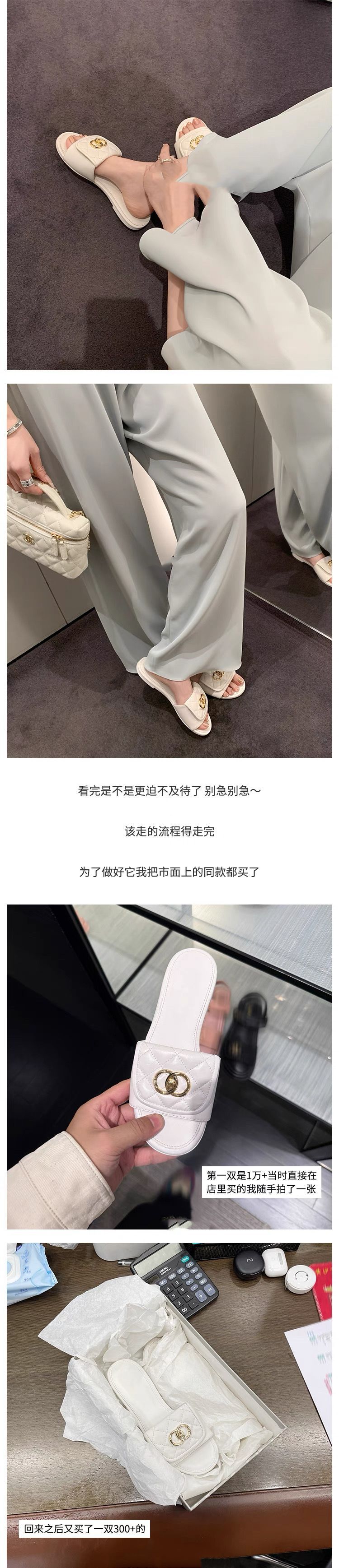 Высокая версия Xiao Xiangfeng Книжная пряжка тапочки плоское дно перетаскивания 2025 новая мягкая кожа в клетку