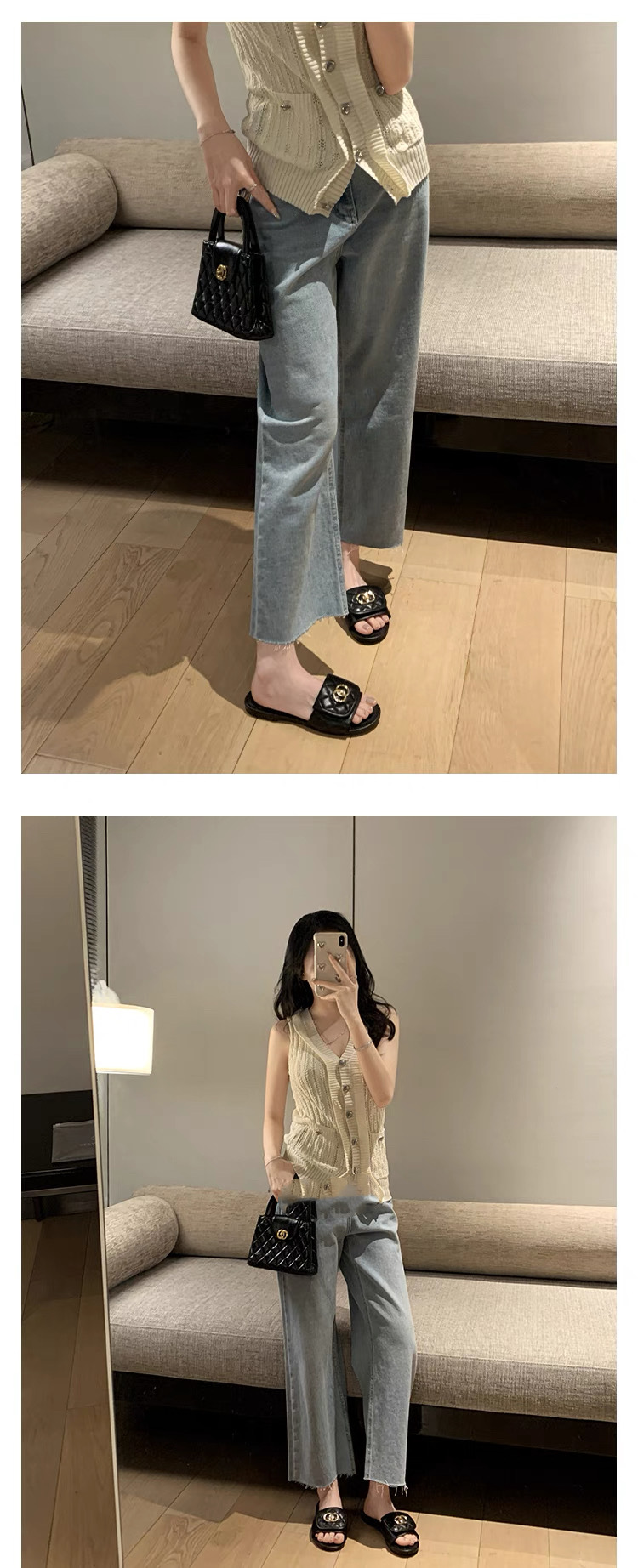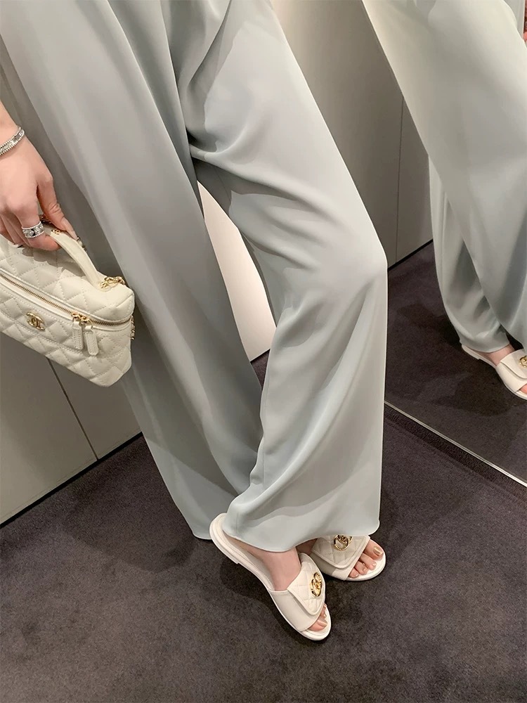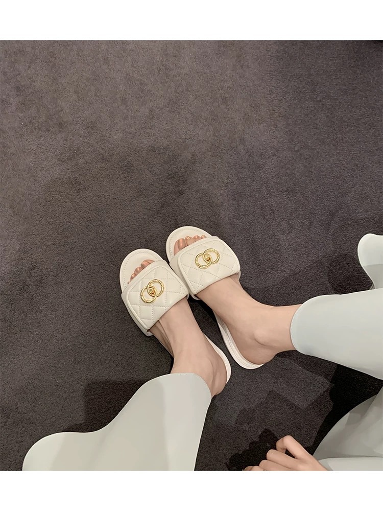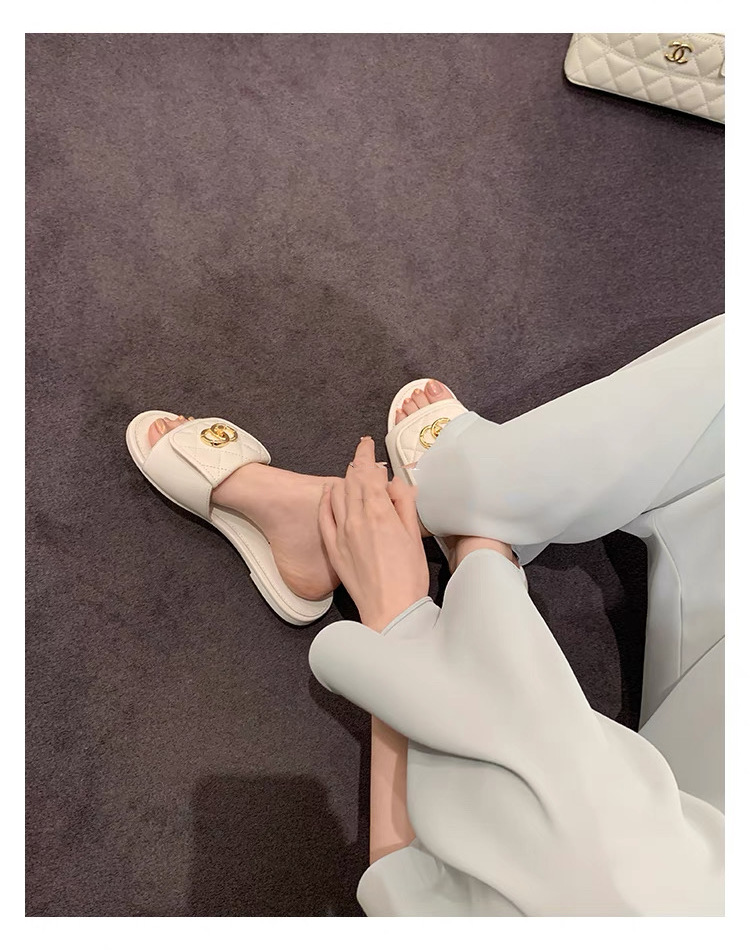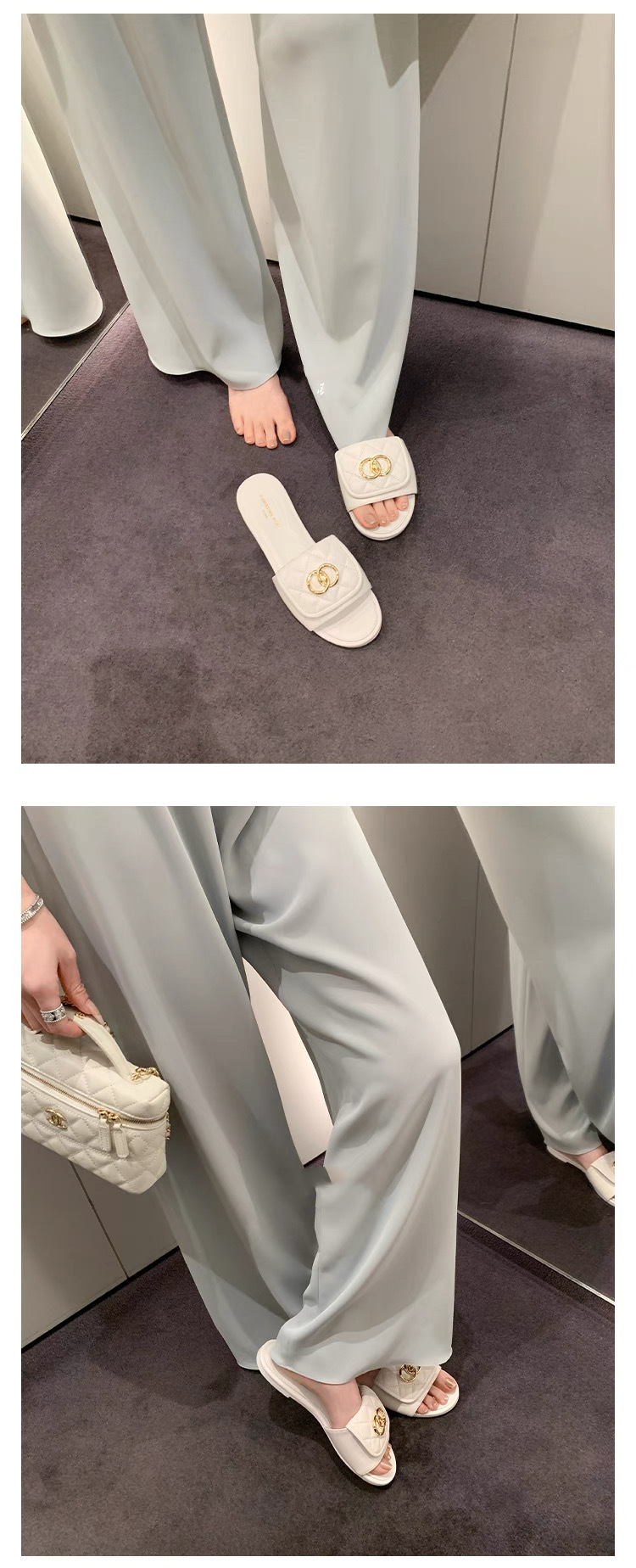 Высокая версия Xiao Xiangfeng Книжная пряжка тапочки плоское дно перетаскивания 2025 новая мягкая кожа в клетку