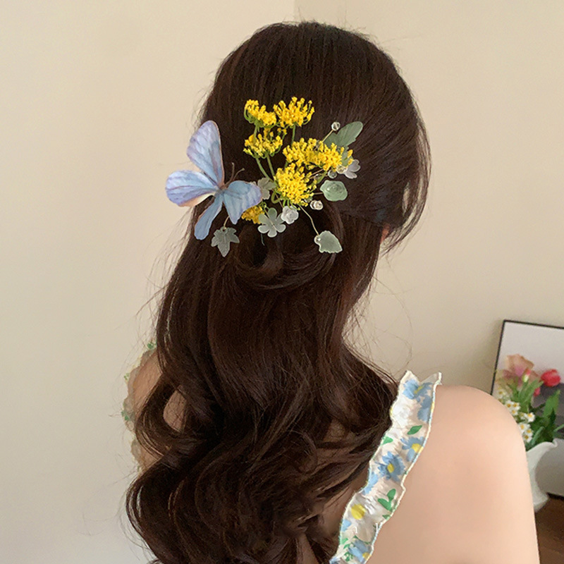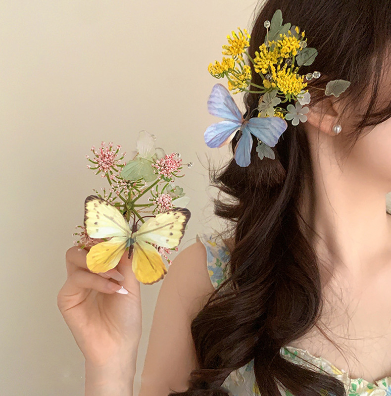 Ранняя весна, заколка для волос с цветком бабочки, заколка для волос, аксессуар для волос в лесном стиле, милый цветок, боковая челка, зажим для волос, аксессуар для волос