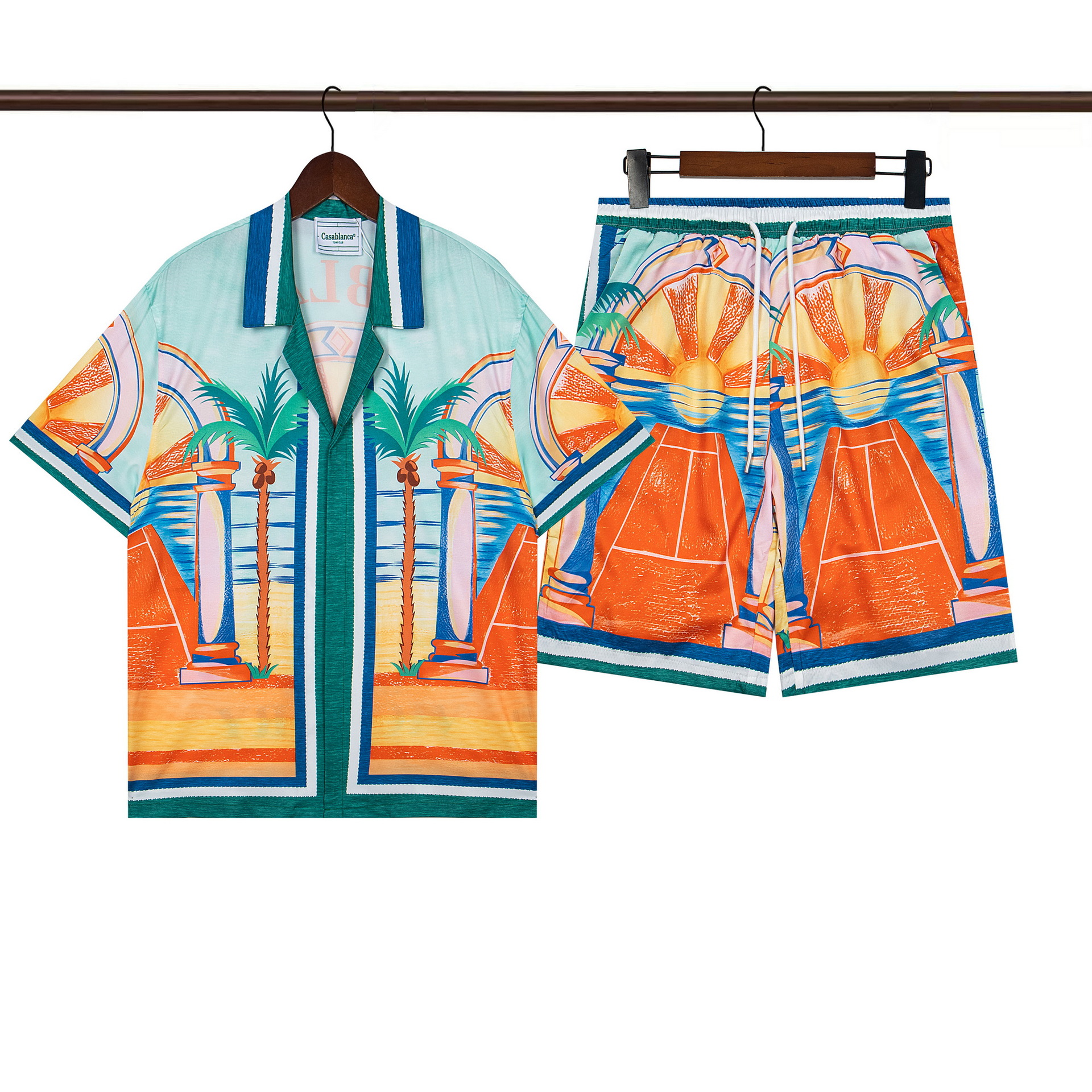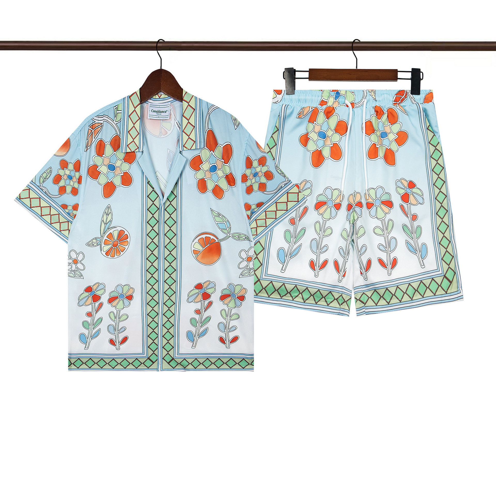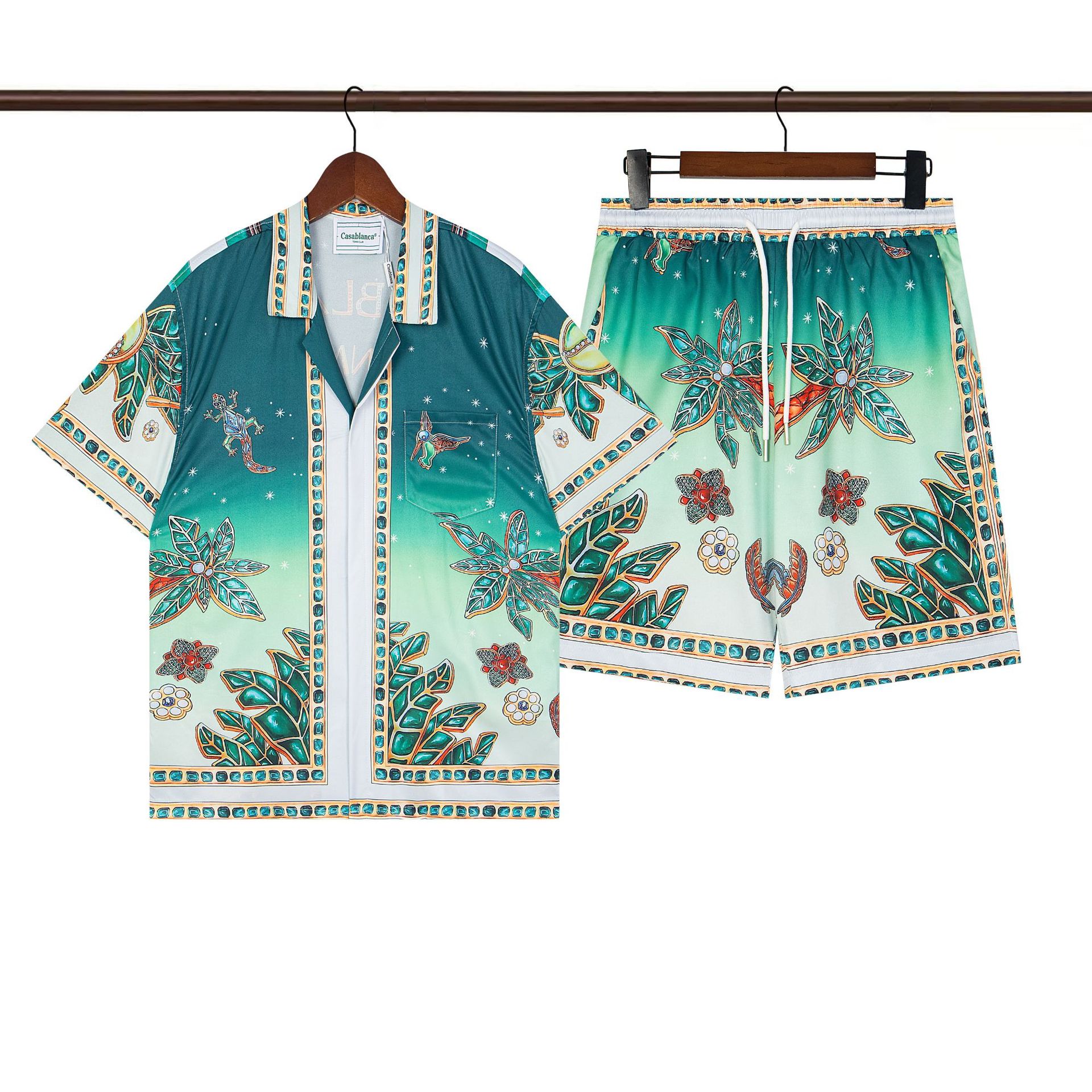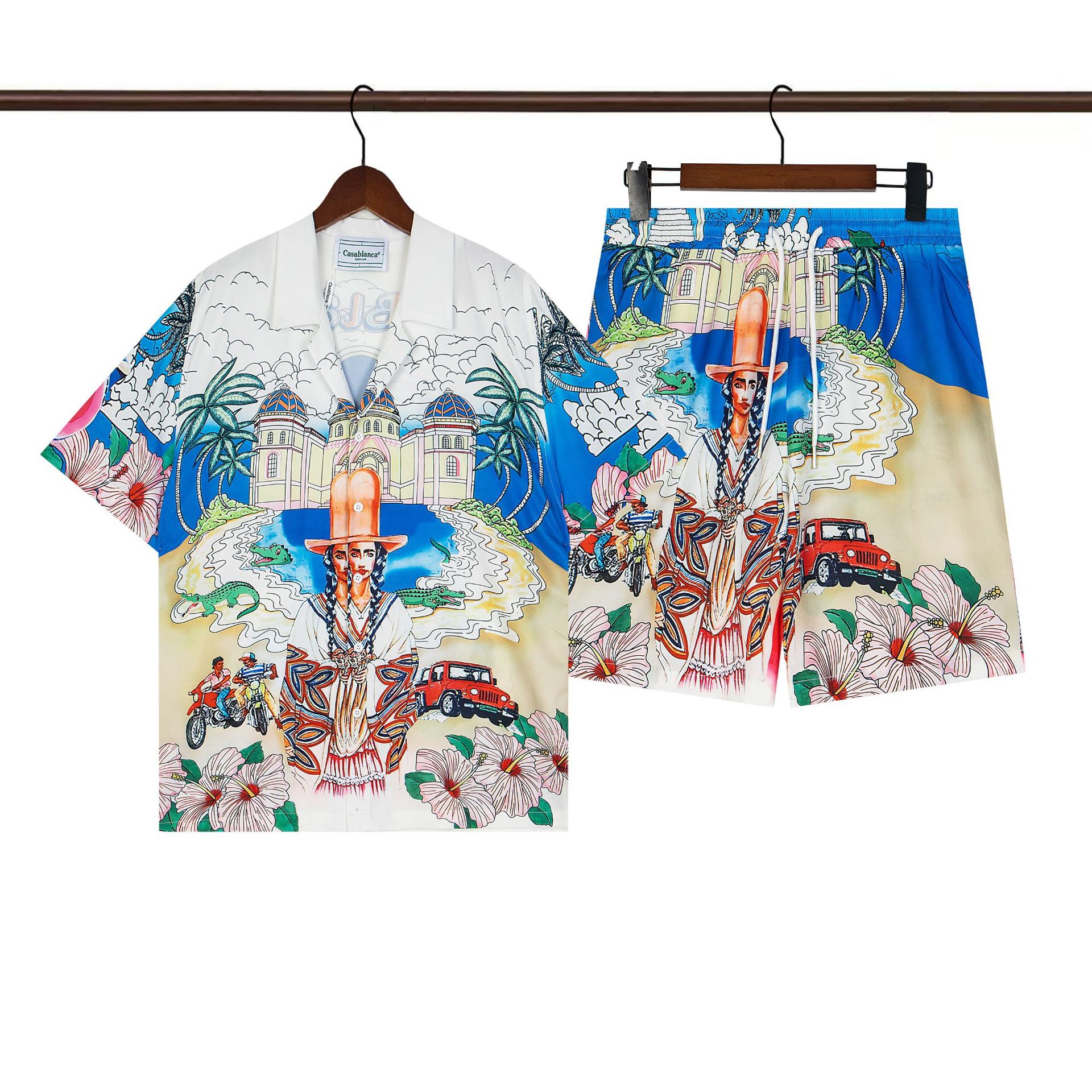 Casablanca 25 новая гавайская пляжная рубашка с цветочным принтом Casablanca, свободный костюм с шортами и короткими рукавами