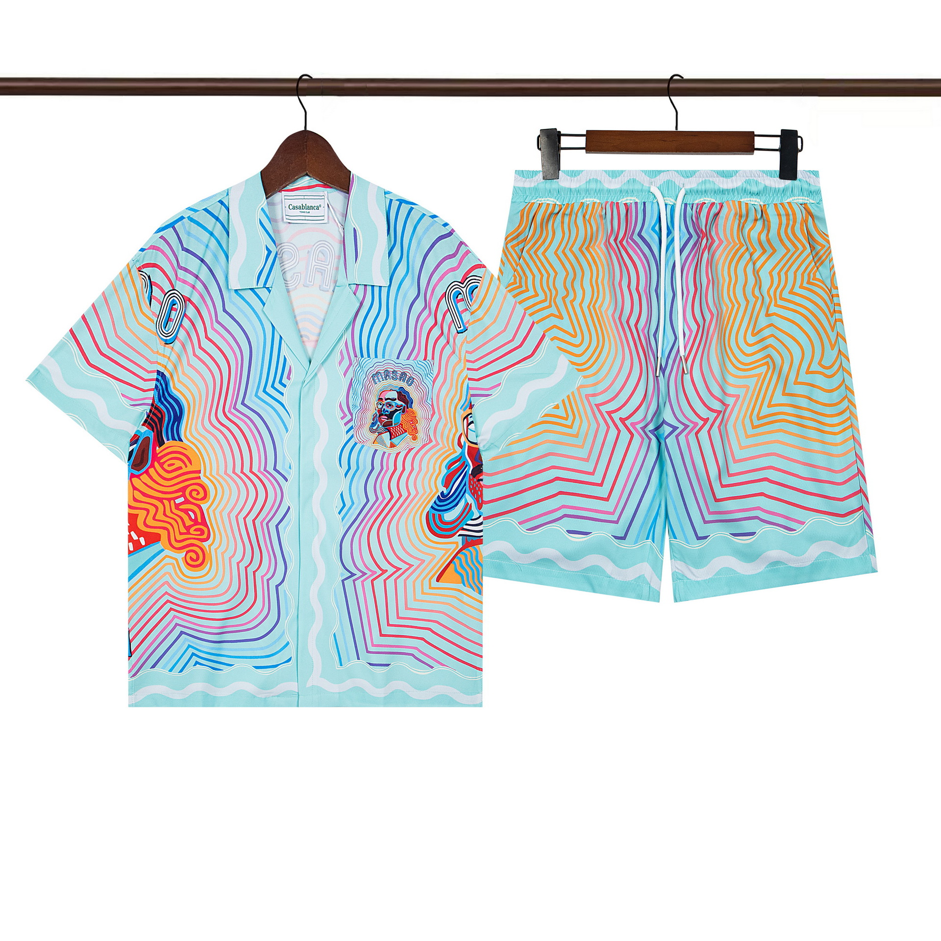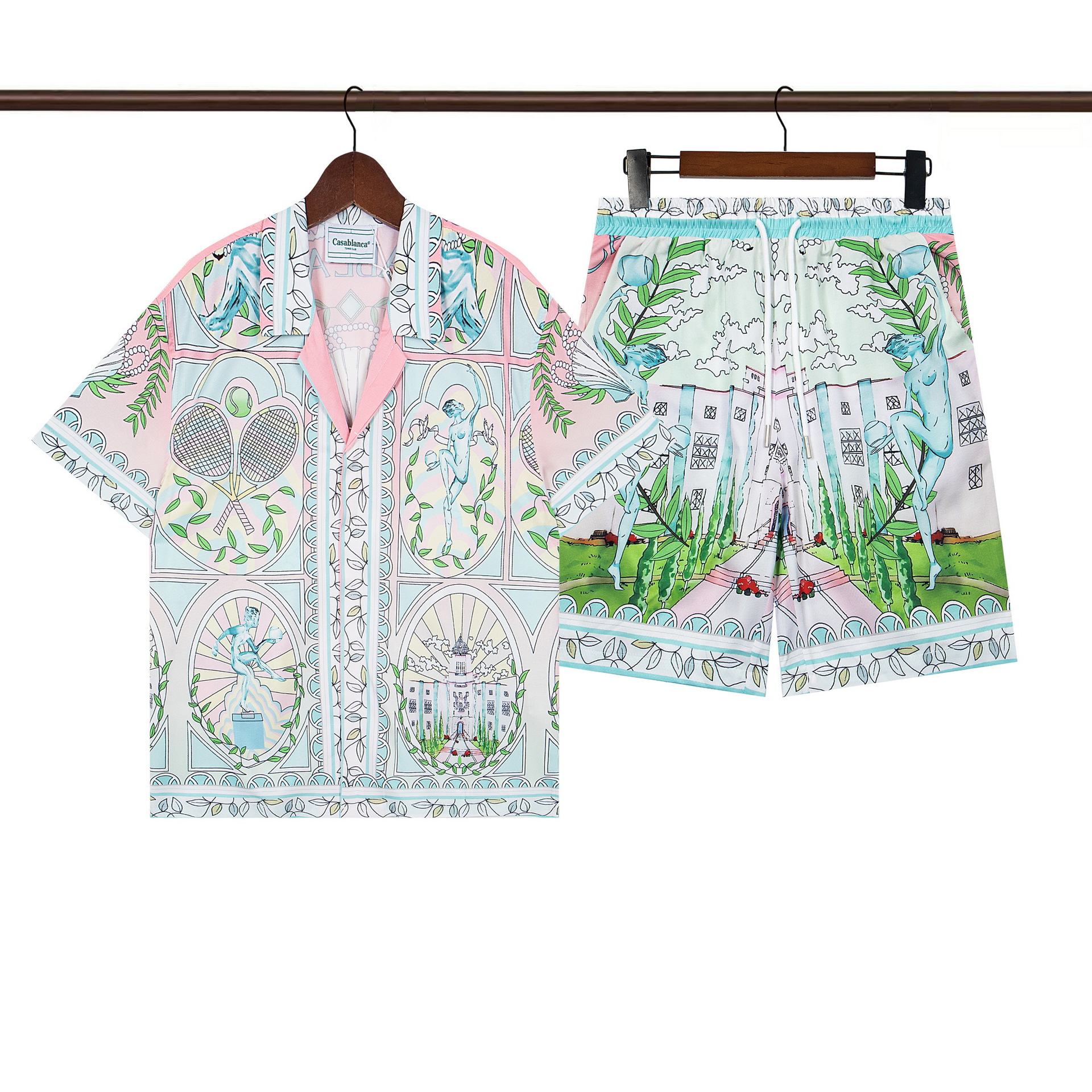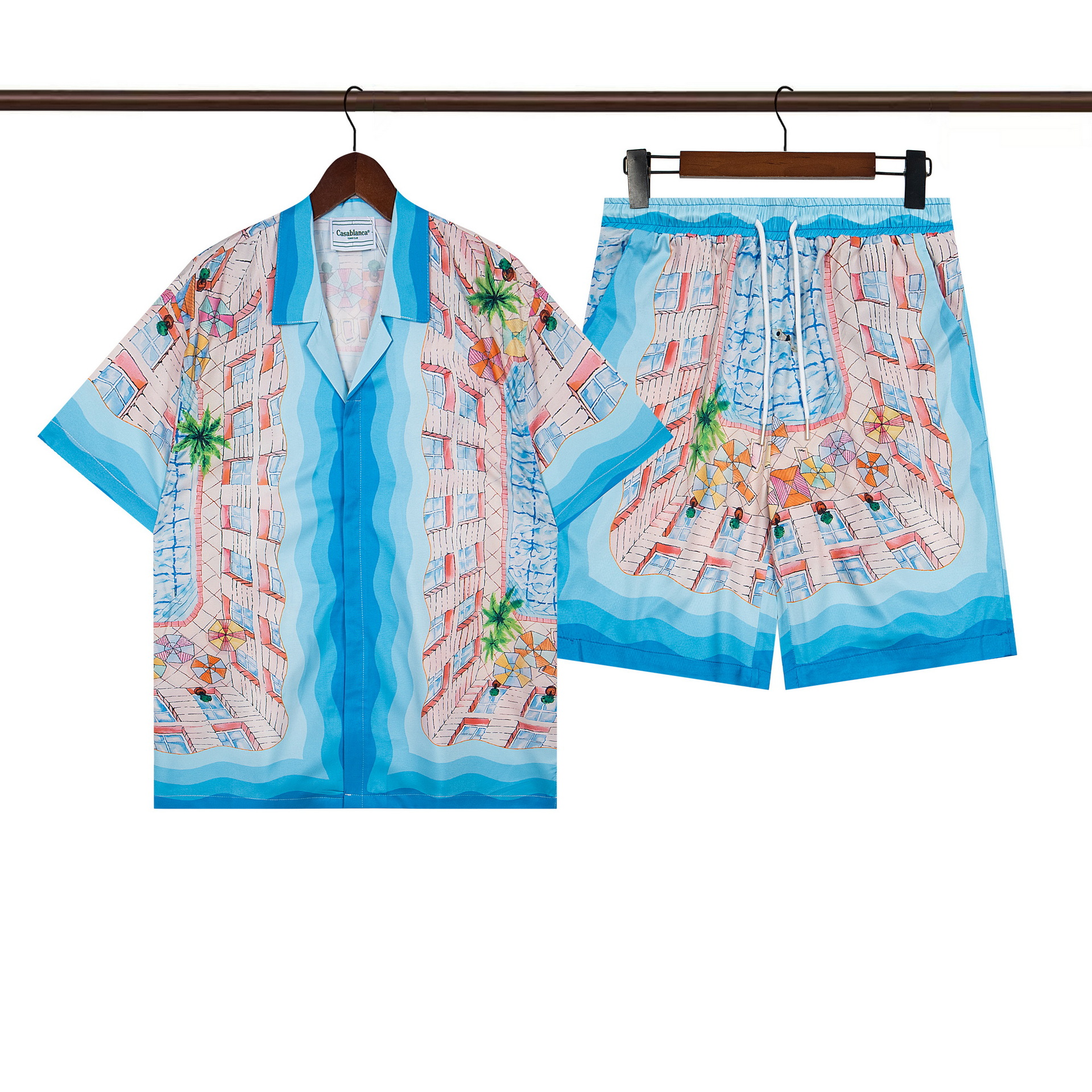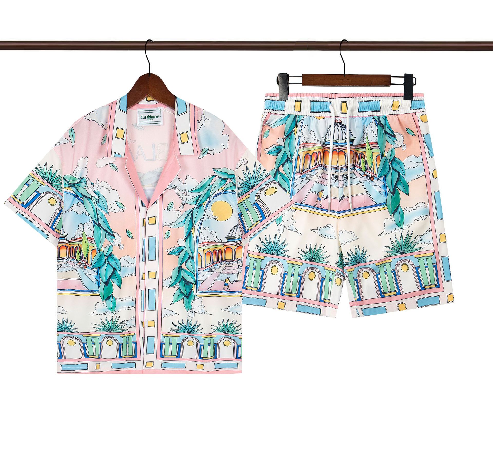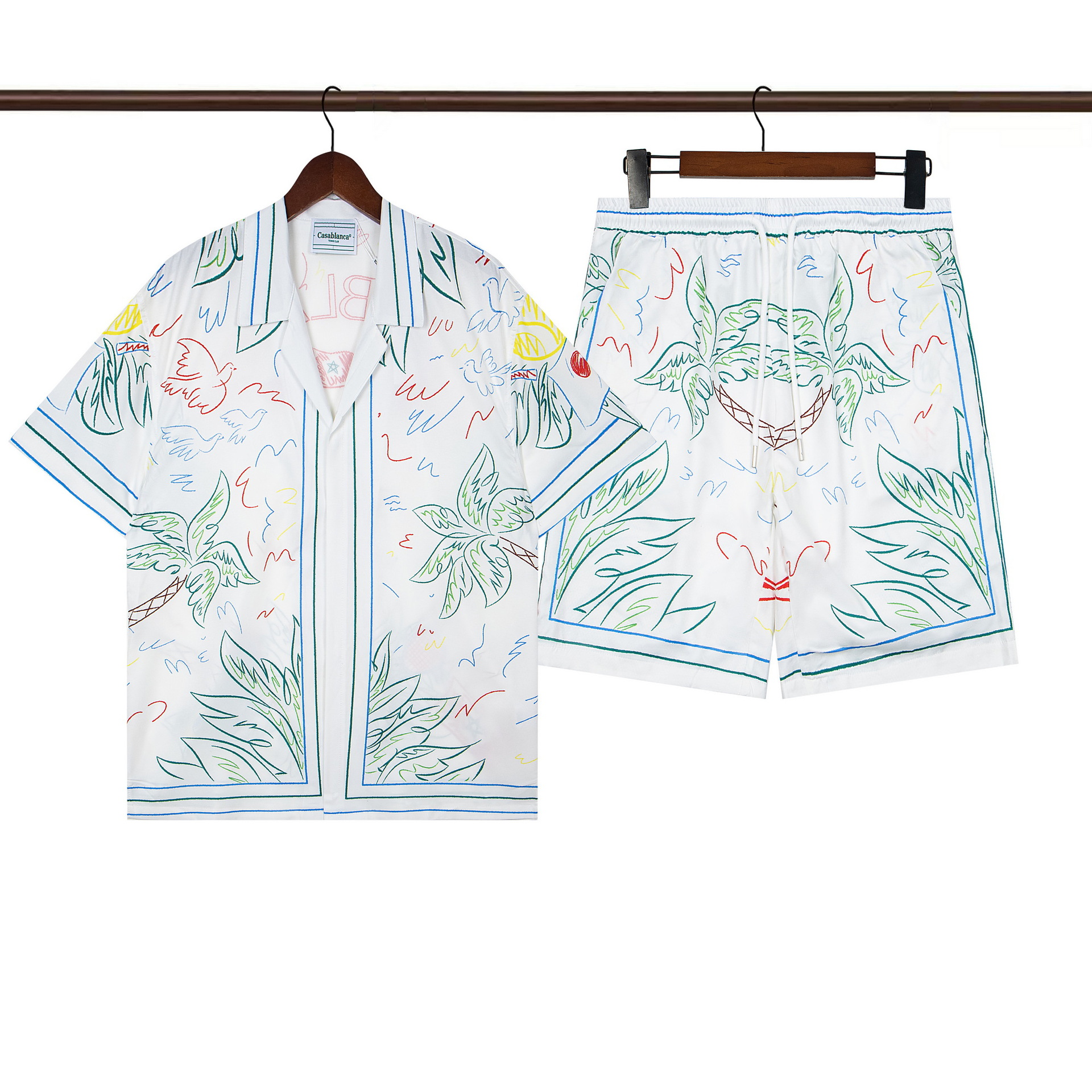 Casablanca 25 новая гавайская пляжная рубашка с цветочным принтом Casablanca, свободный костюм с шортами и короткими рукавами