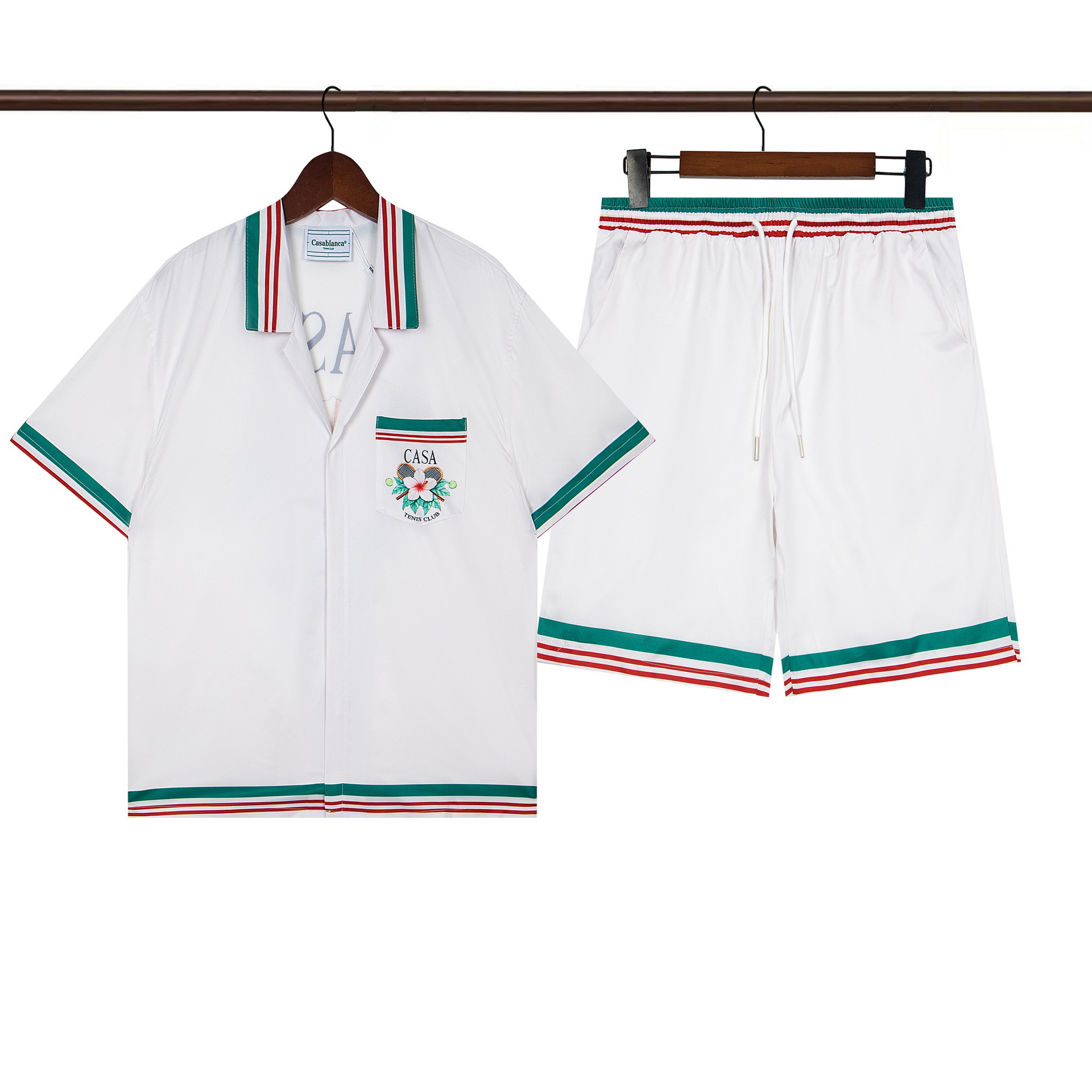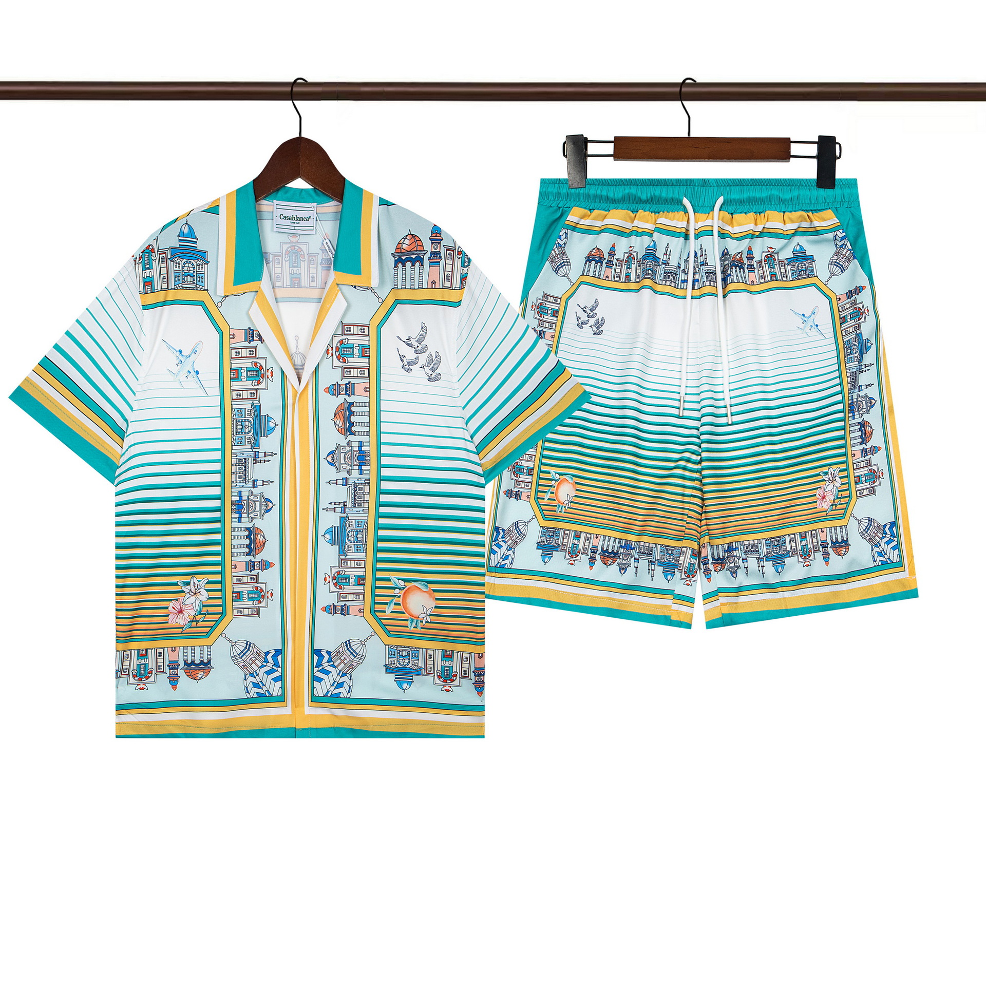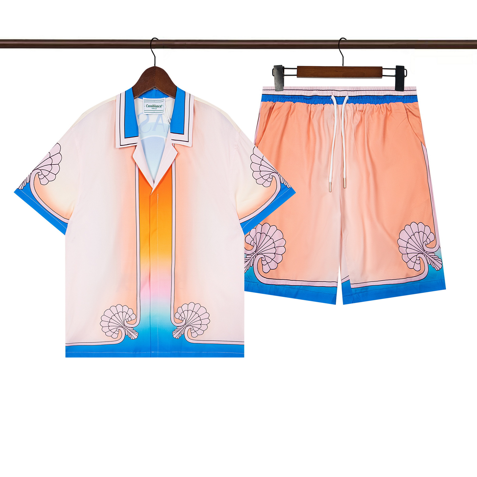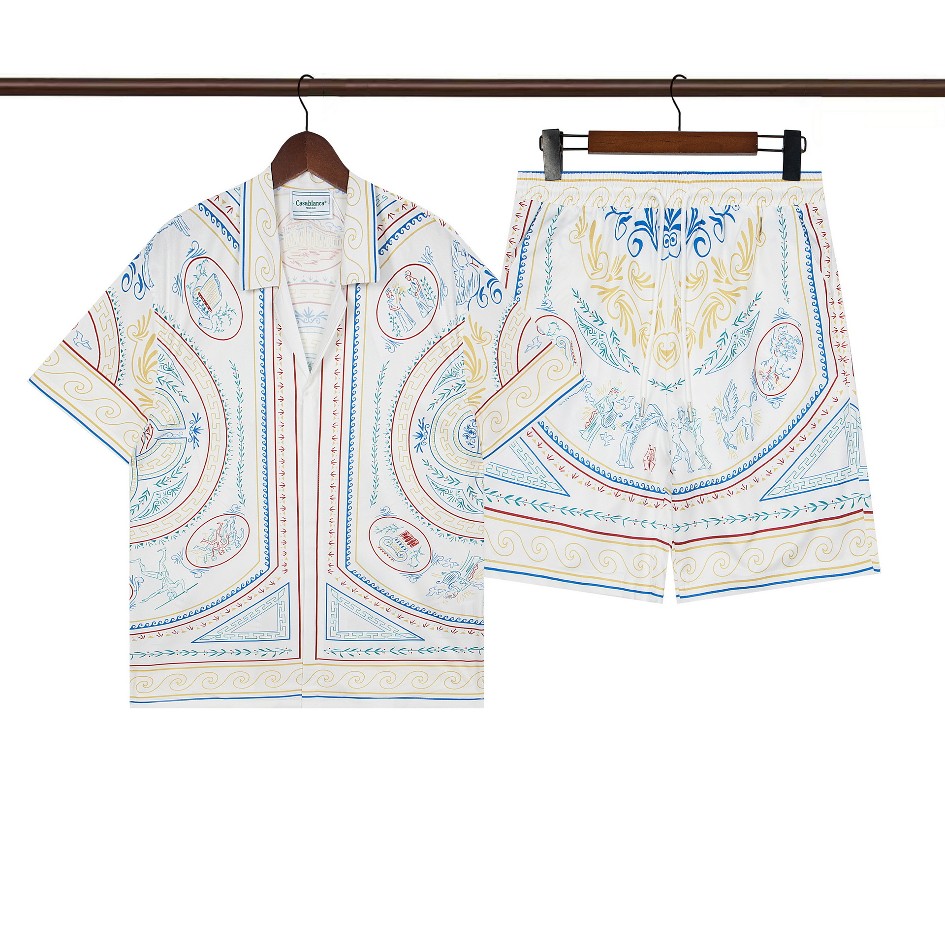 Casablanca 25 новая гавайская пляжная рубашка с цветочным принтом Casablanca, свободный костюм с шортами и короткими рукавами
