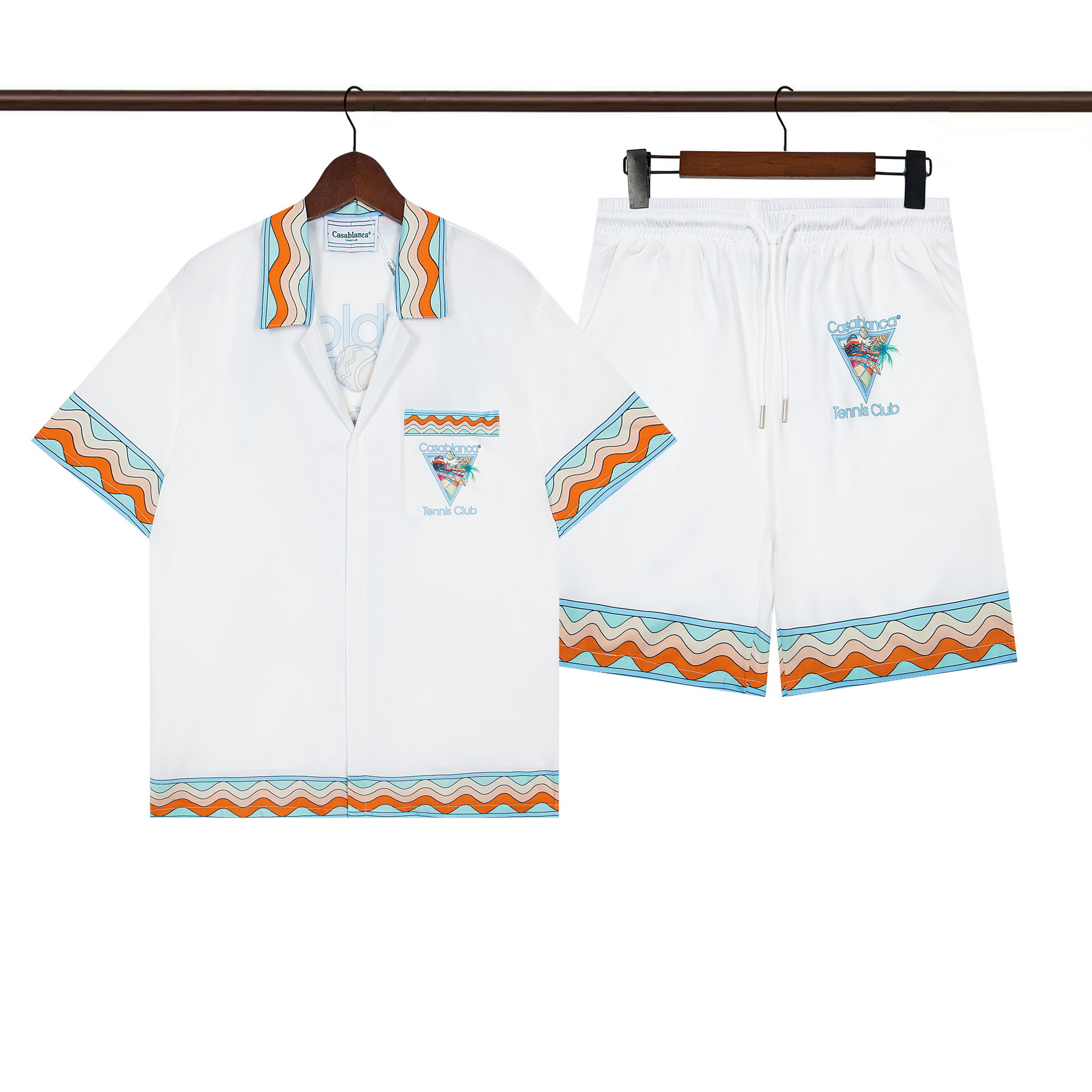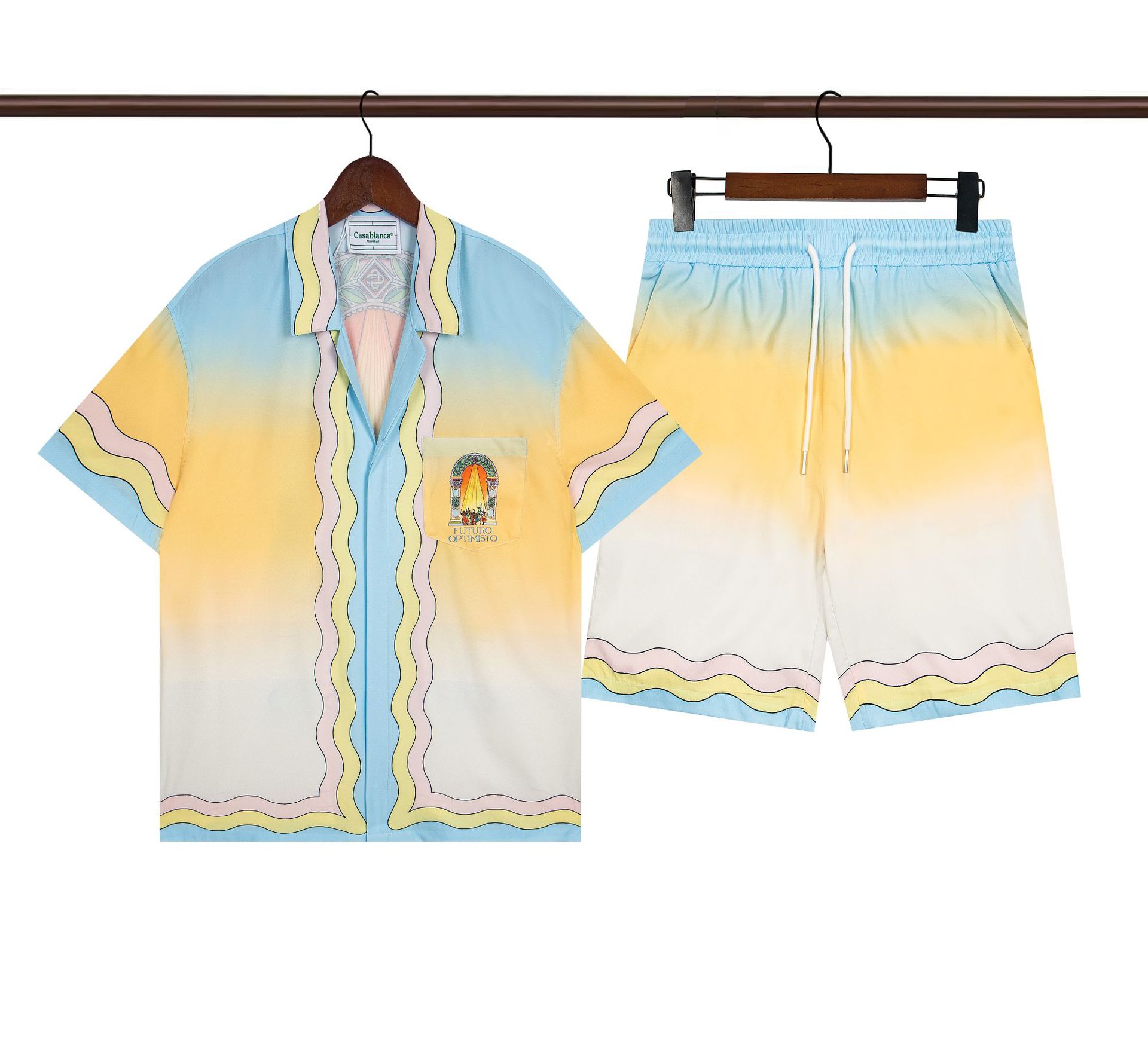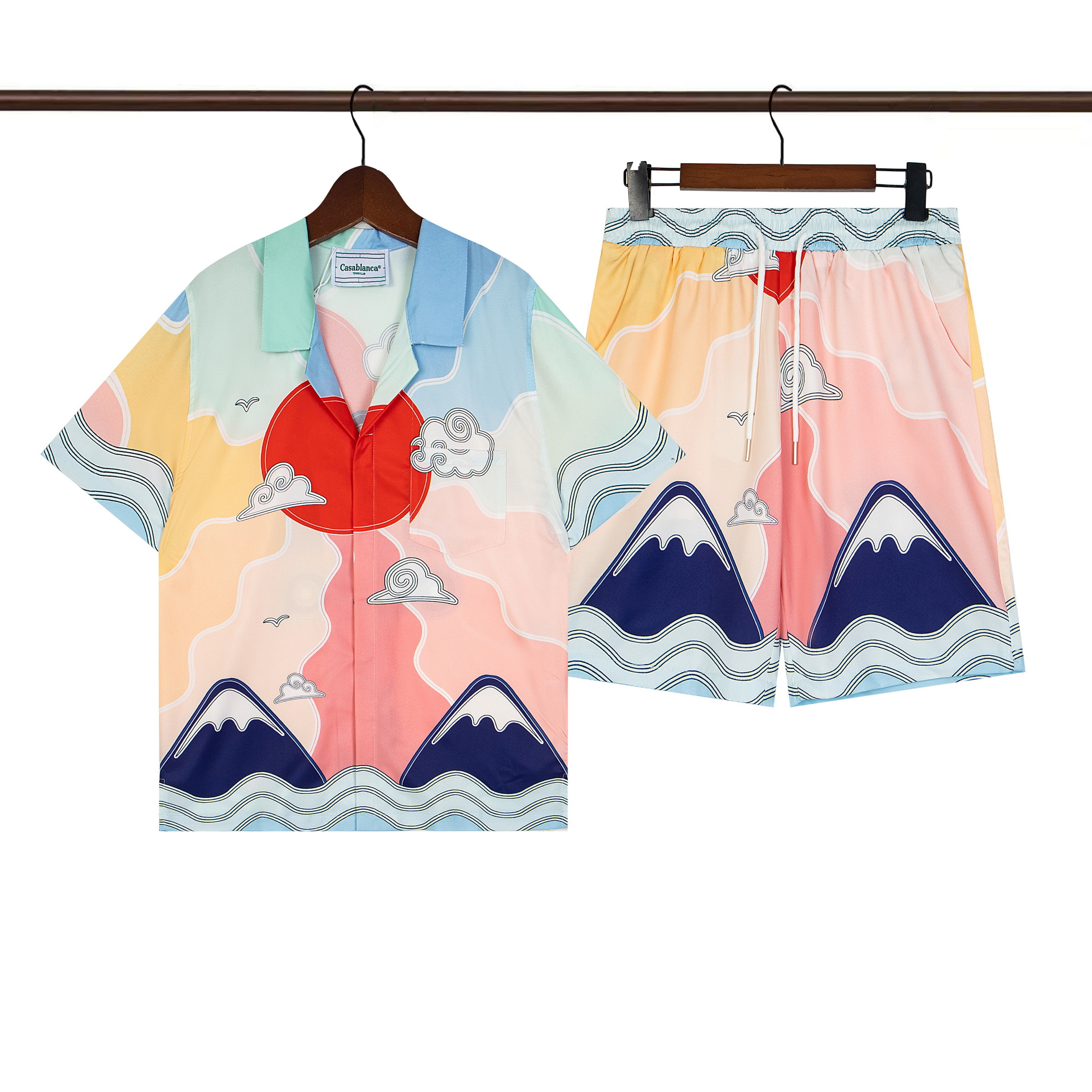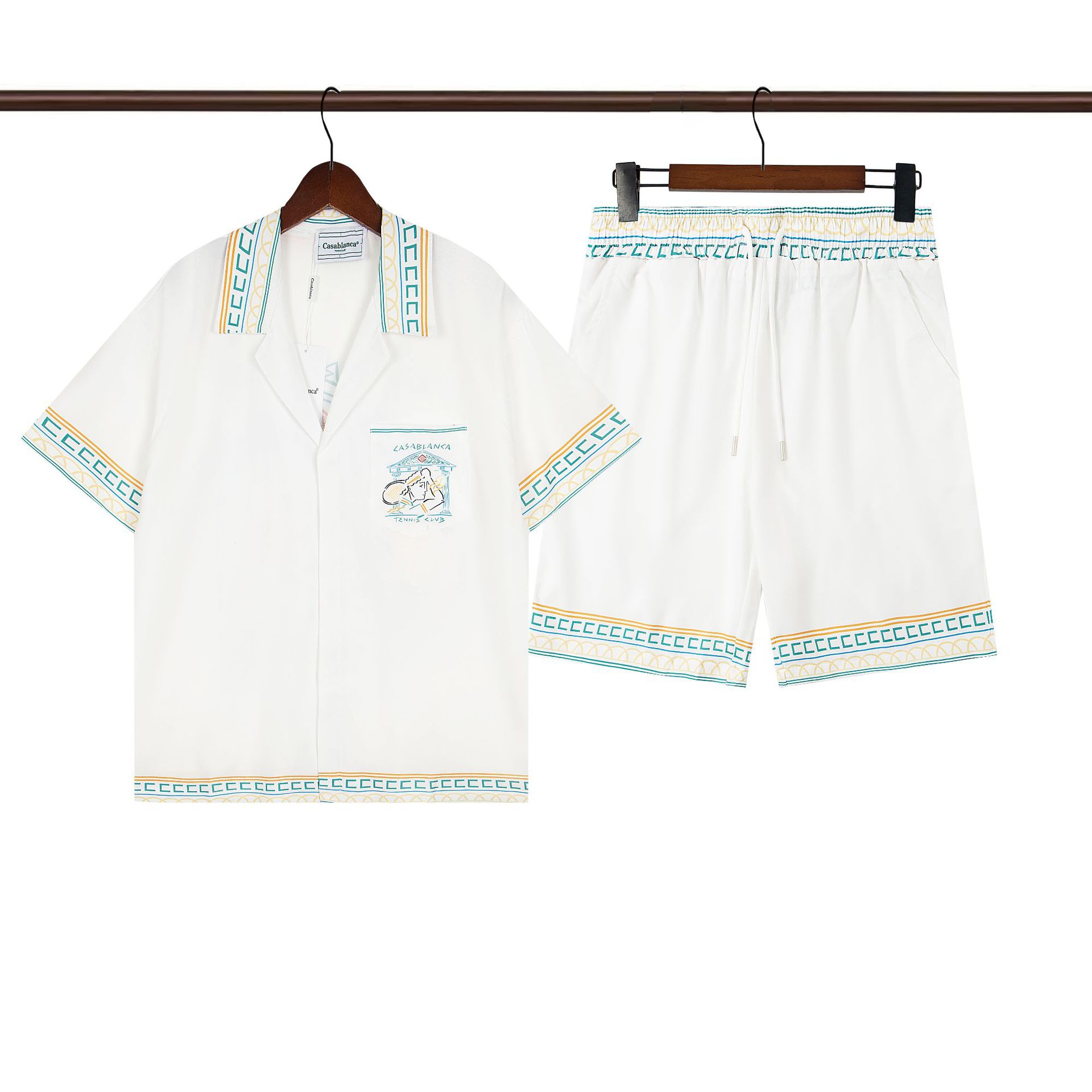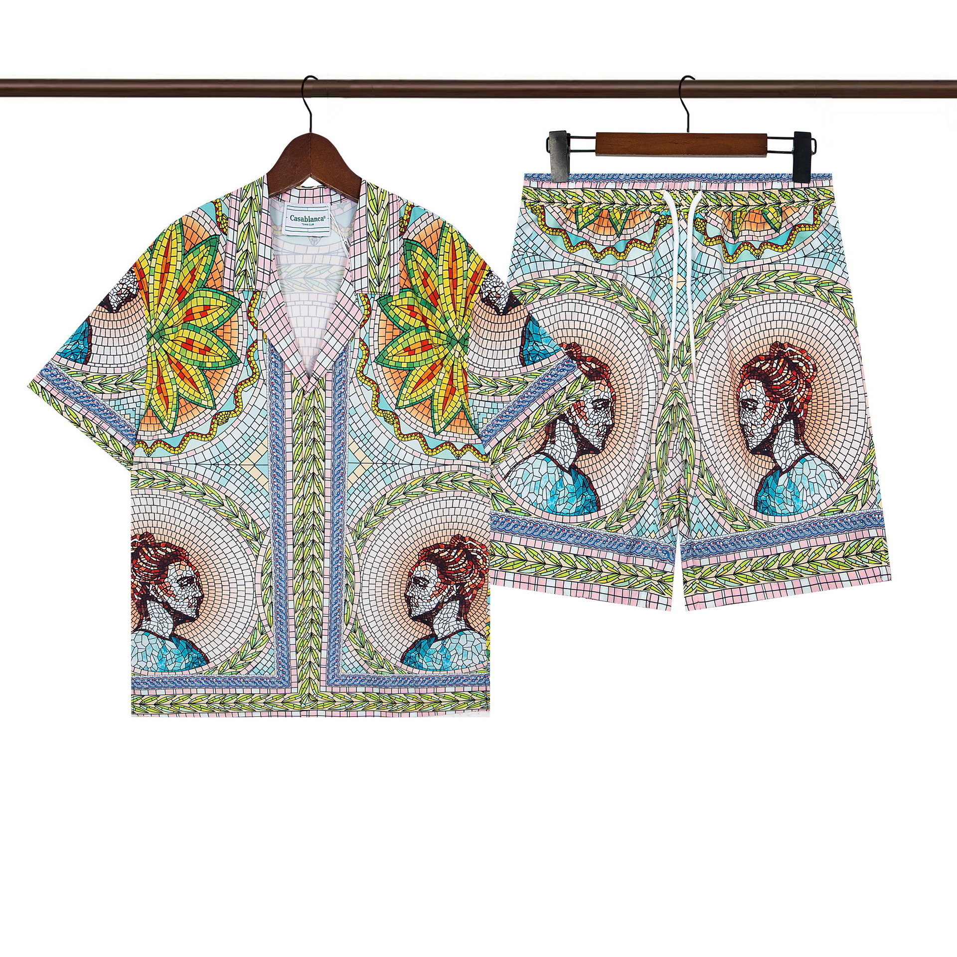 Casablanca 25 новая гавайская пляжная рубашка с цветочным принтом Casablanca, свободный костюм с шортами и короткими рукавами