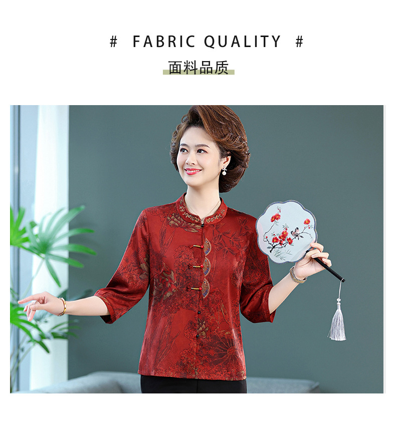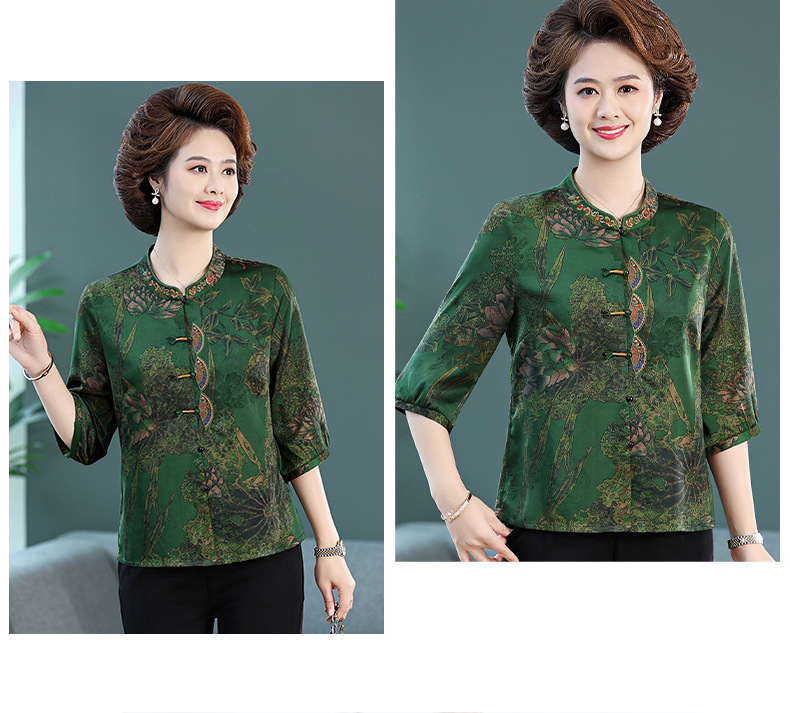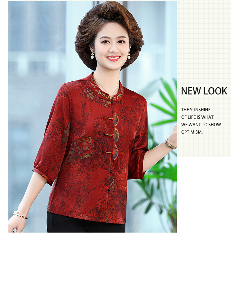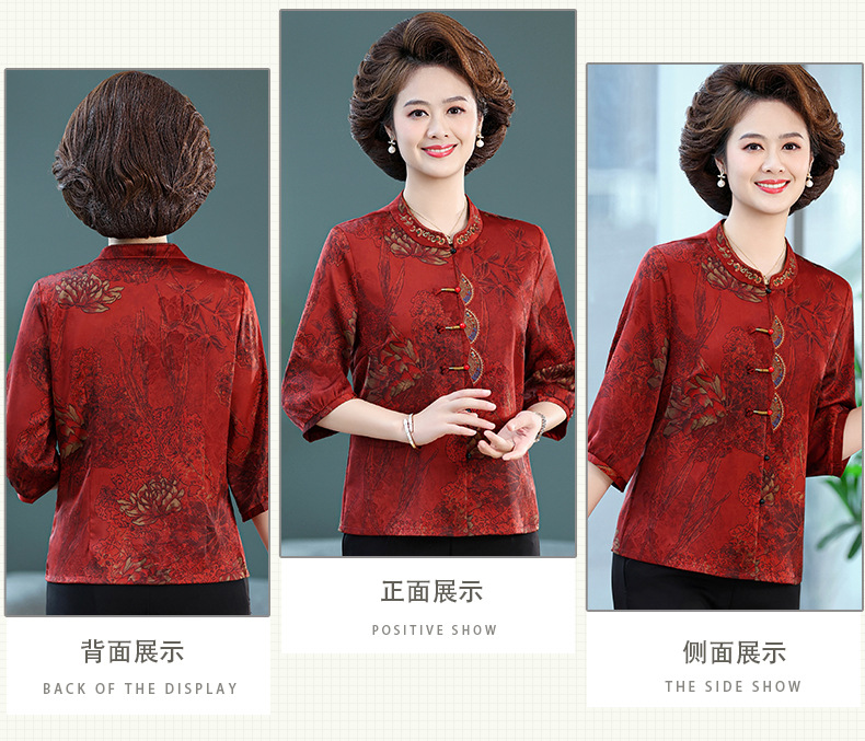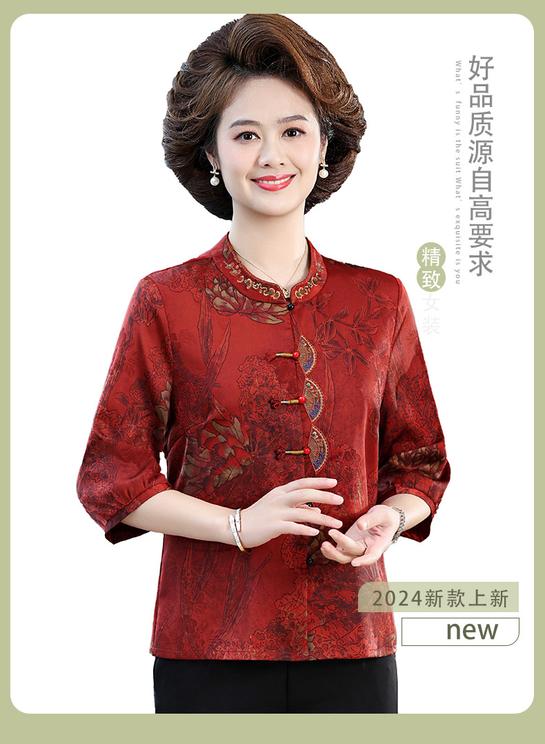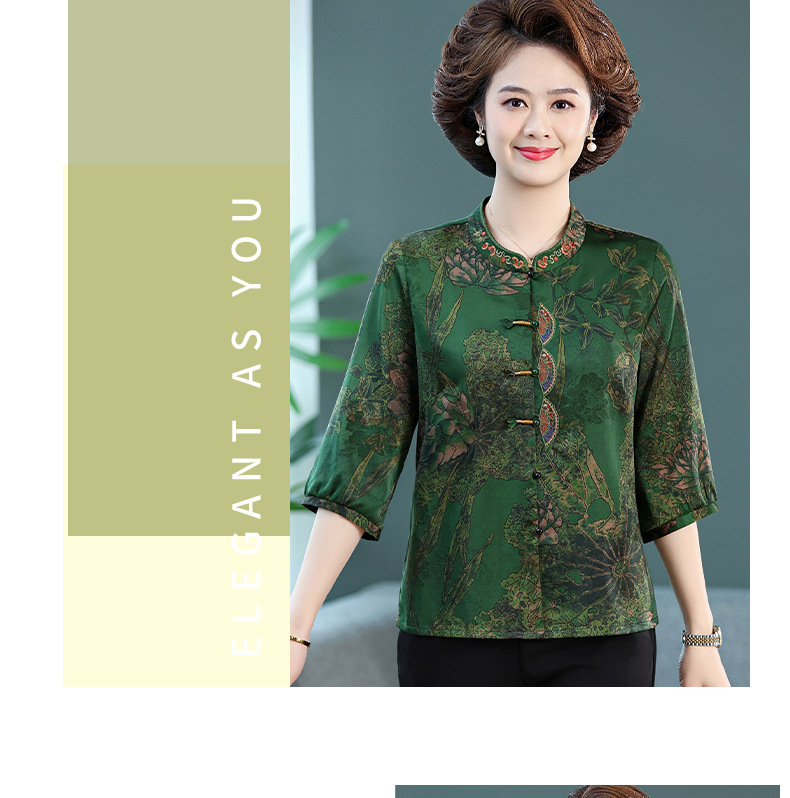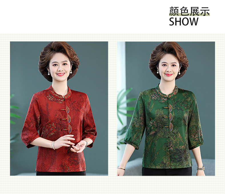 Среднего и пожилого возраста бабушка новый китайский стиль рубашка женская весна и лето шелк атласная мама летнее платье с отворотами, дикий кардиган топ