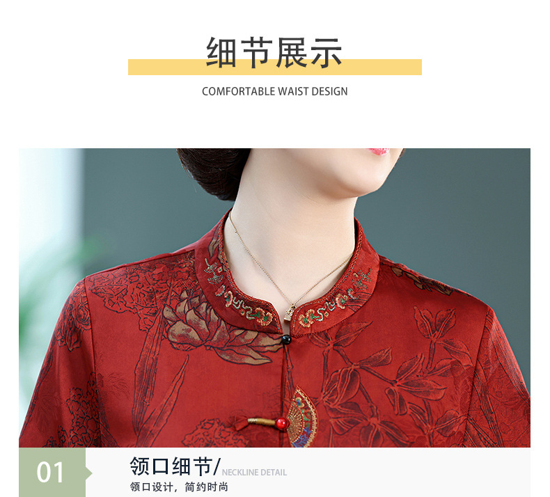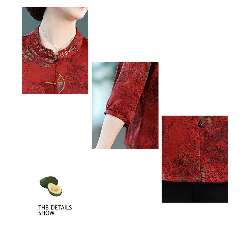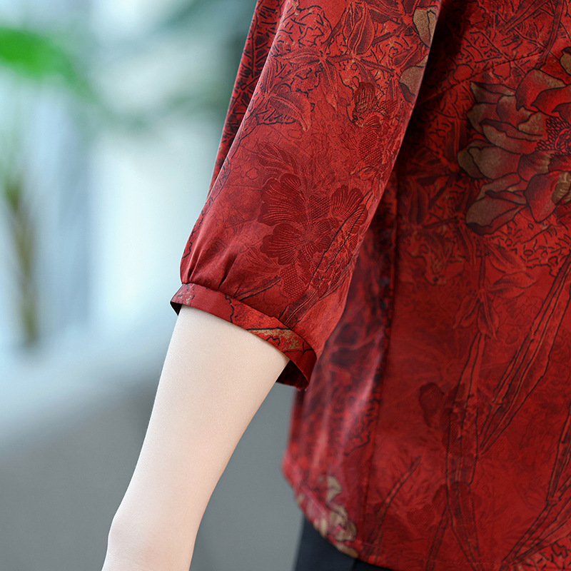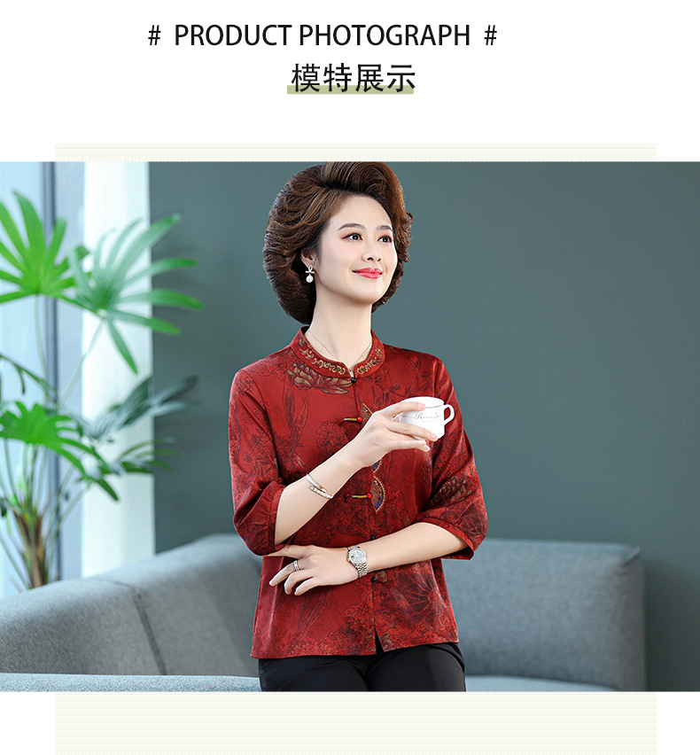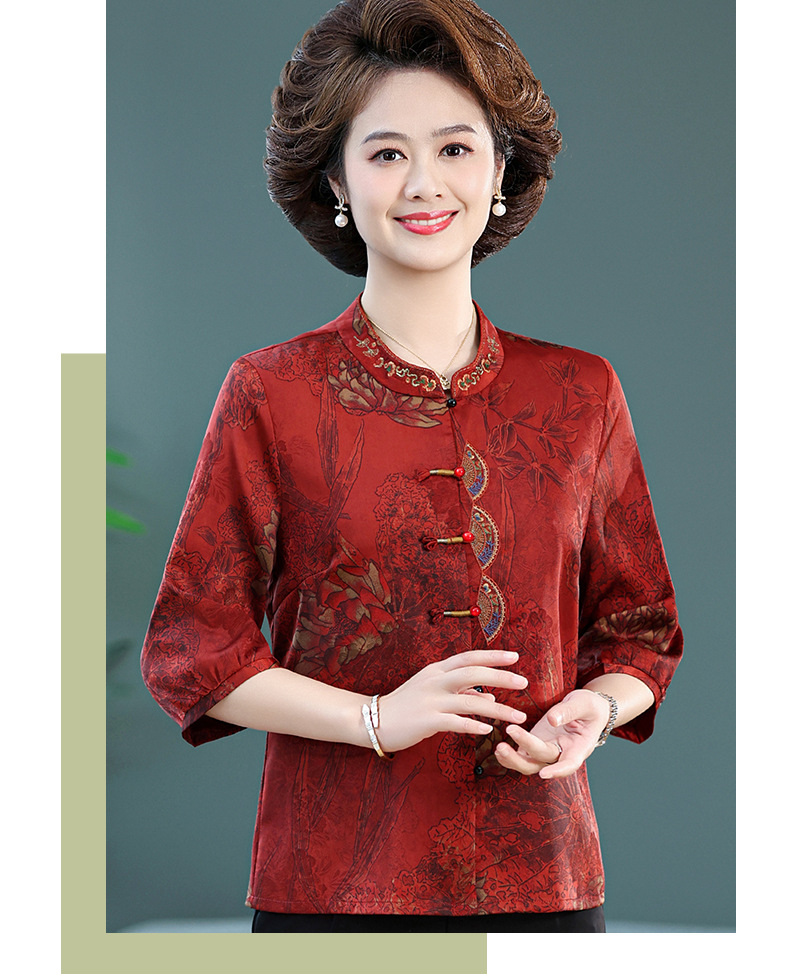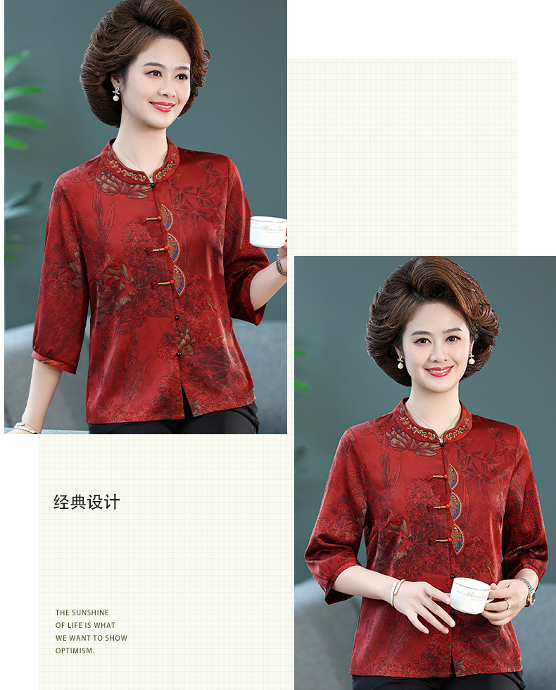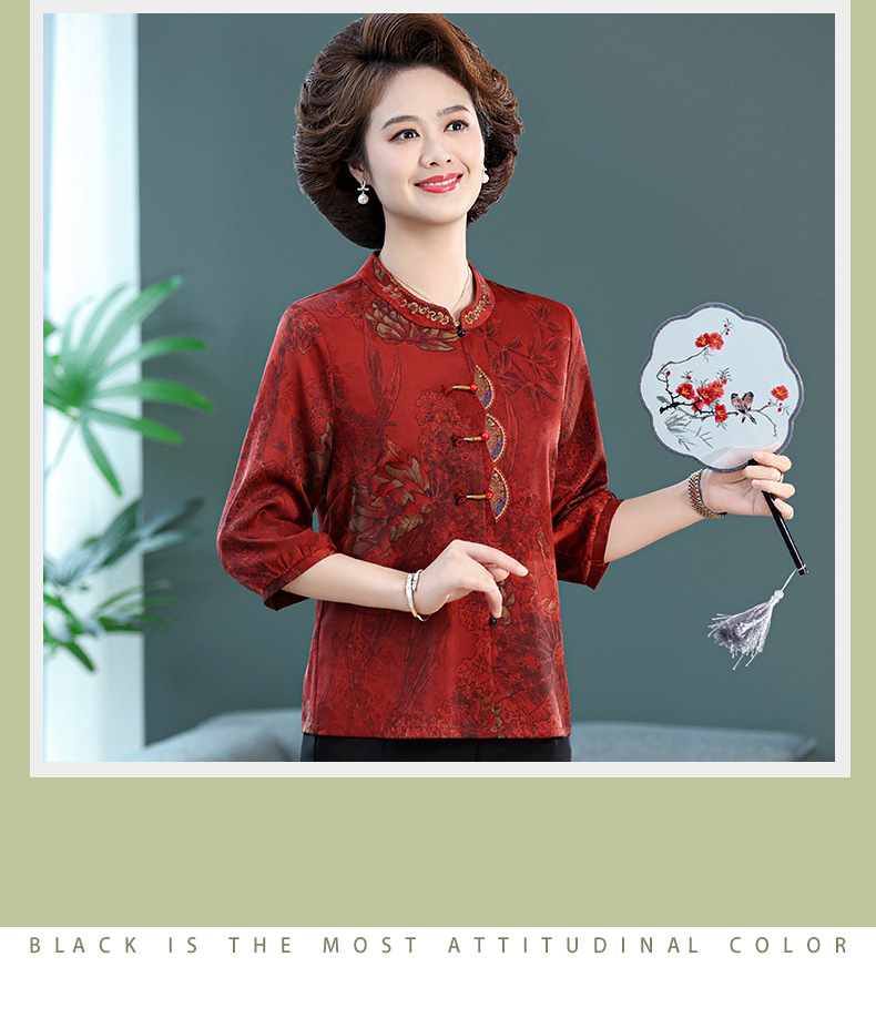 Среднего и пожилого возраста бабушка новый китайский стиль рубашка женская весна и лето шелк атласная мама летнее платье с отворотами, дикий кардиган топ