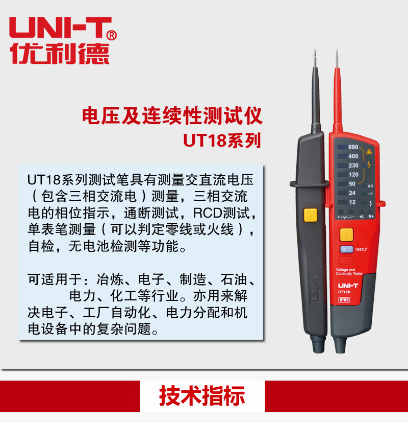 UNI-T UT18C/UT18D тестер напряжения и целостности цепи