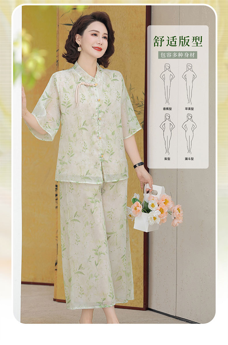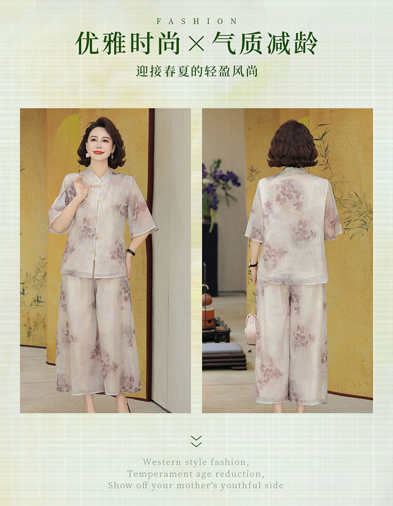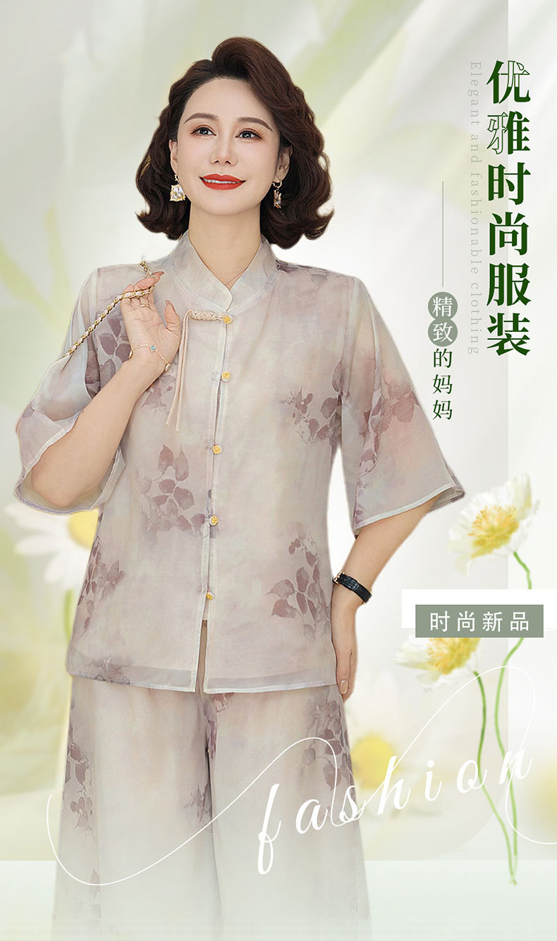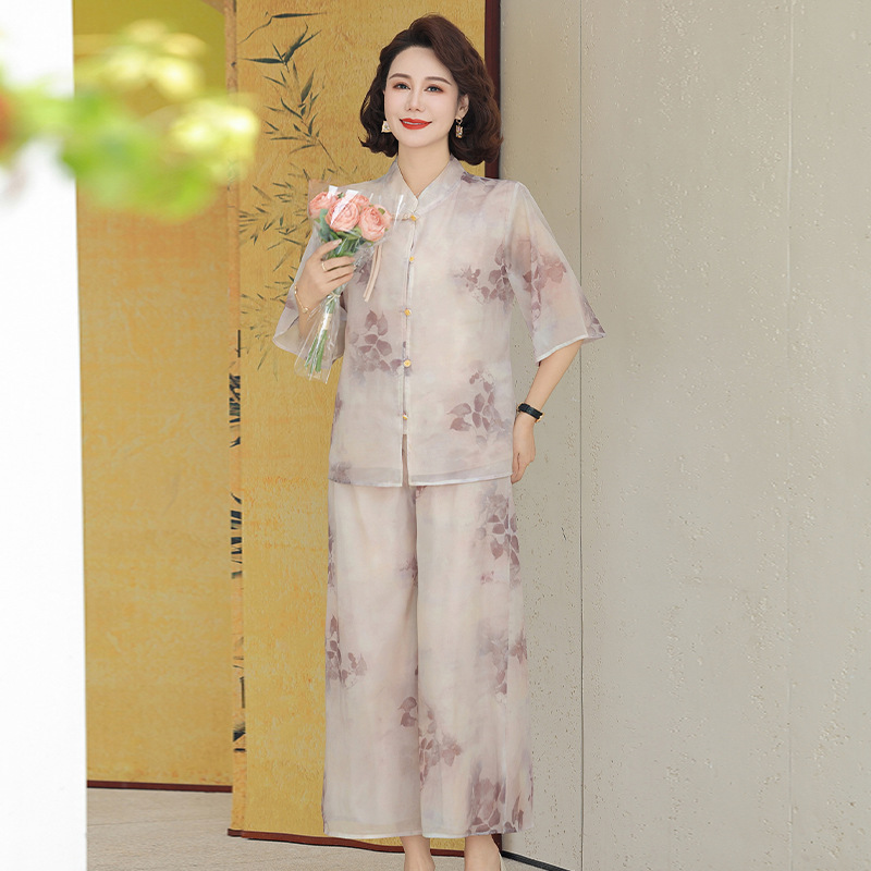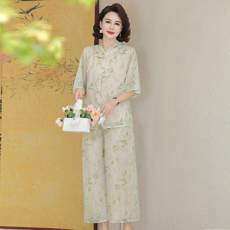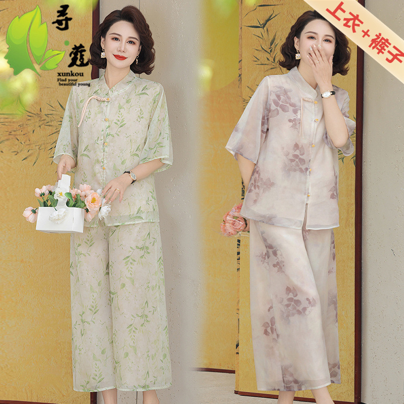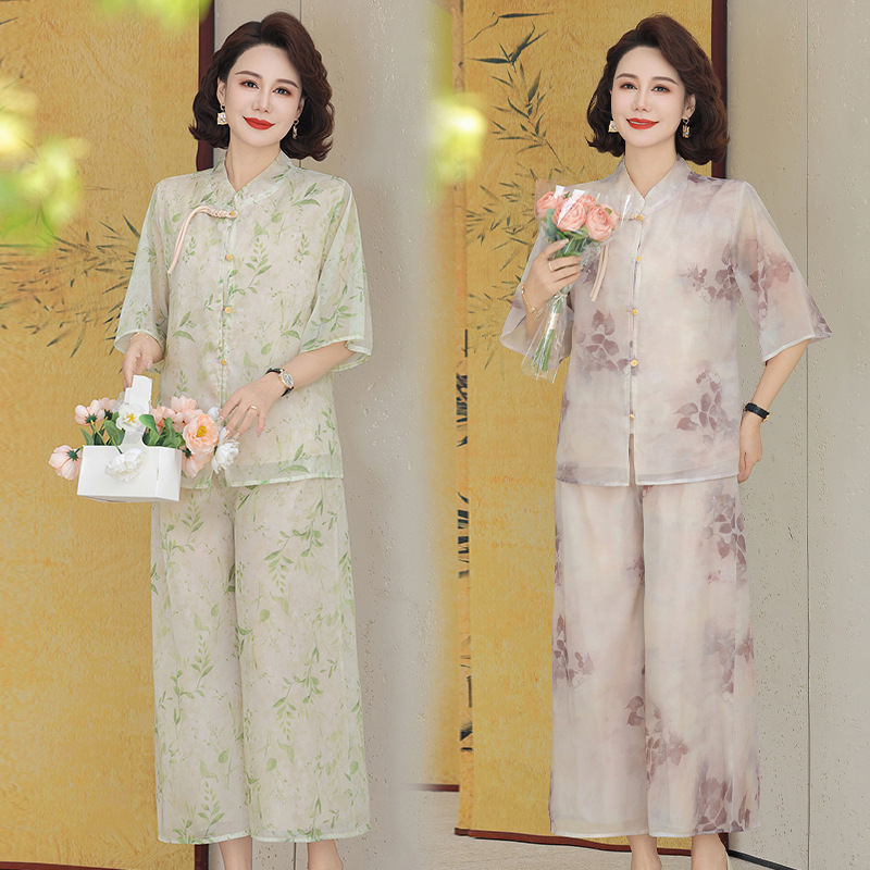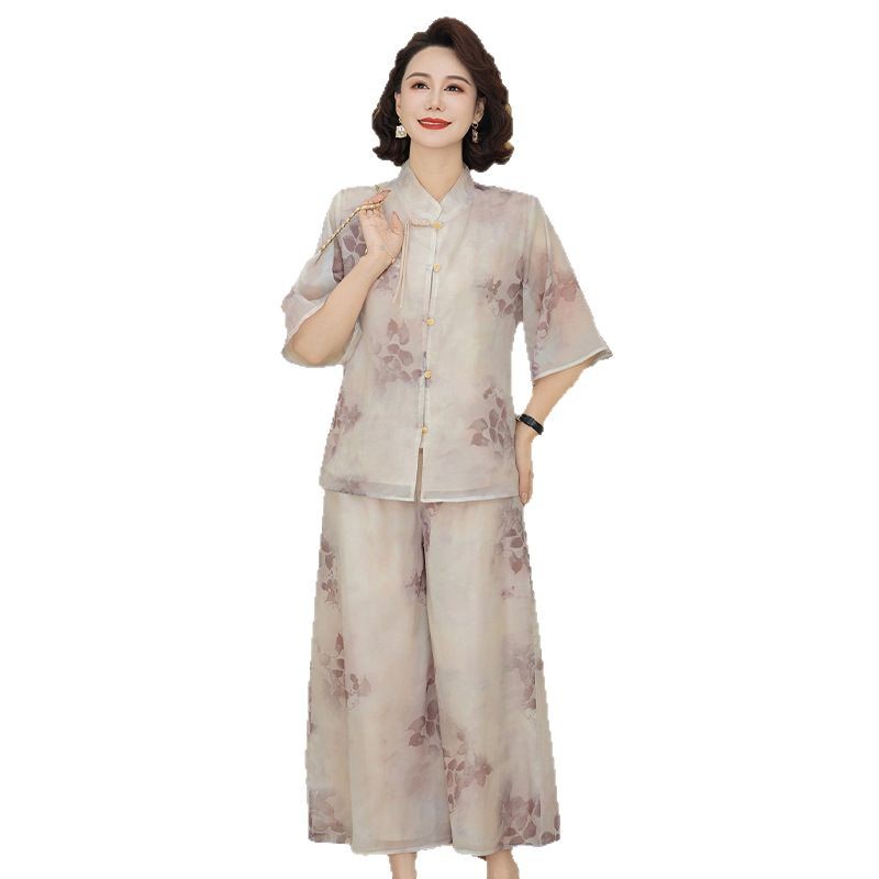 Шифоновая летняя одежда для мам для женщин среднего и пожилого возраста, летние костюмы, модная легкая женская одежда с принтом для людей среднего возраста