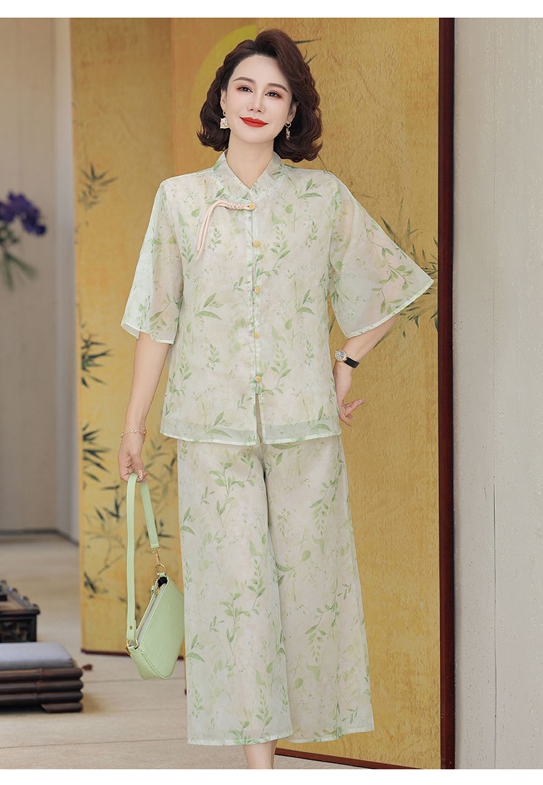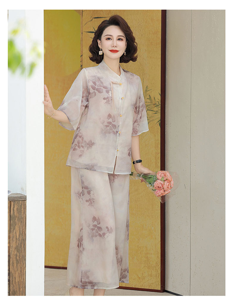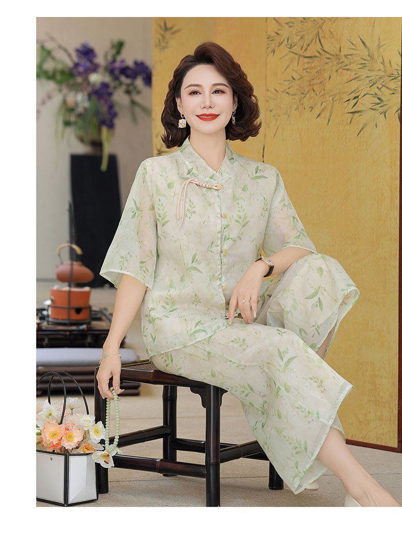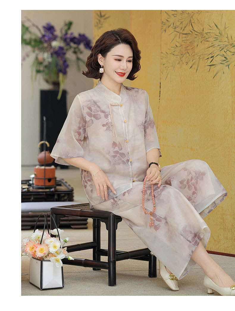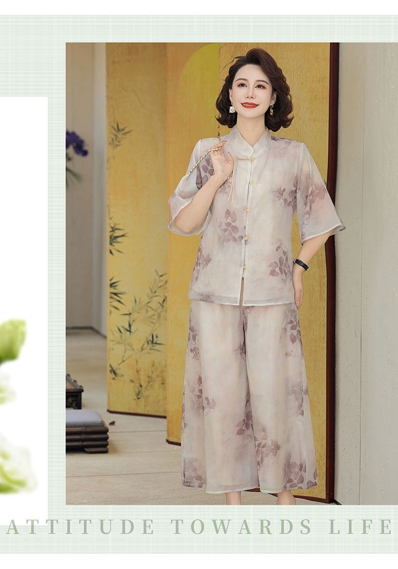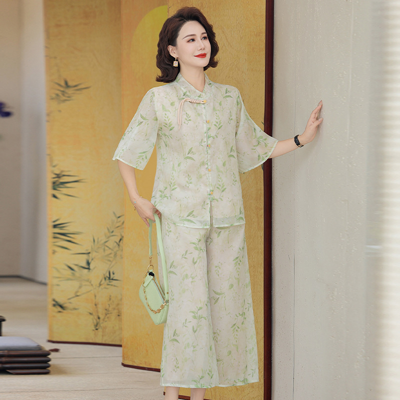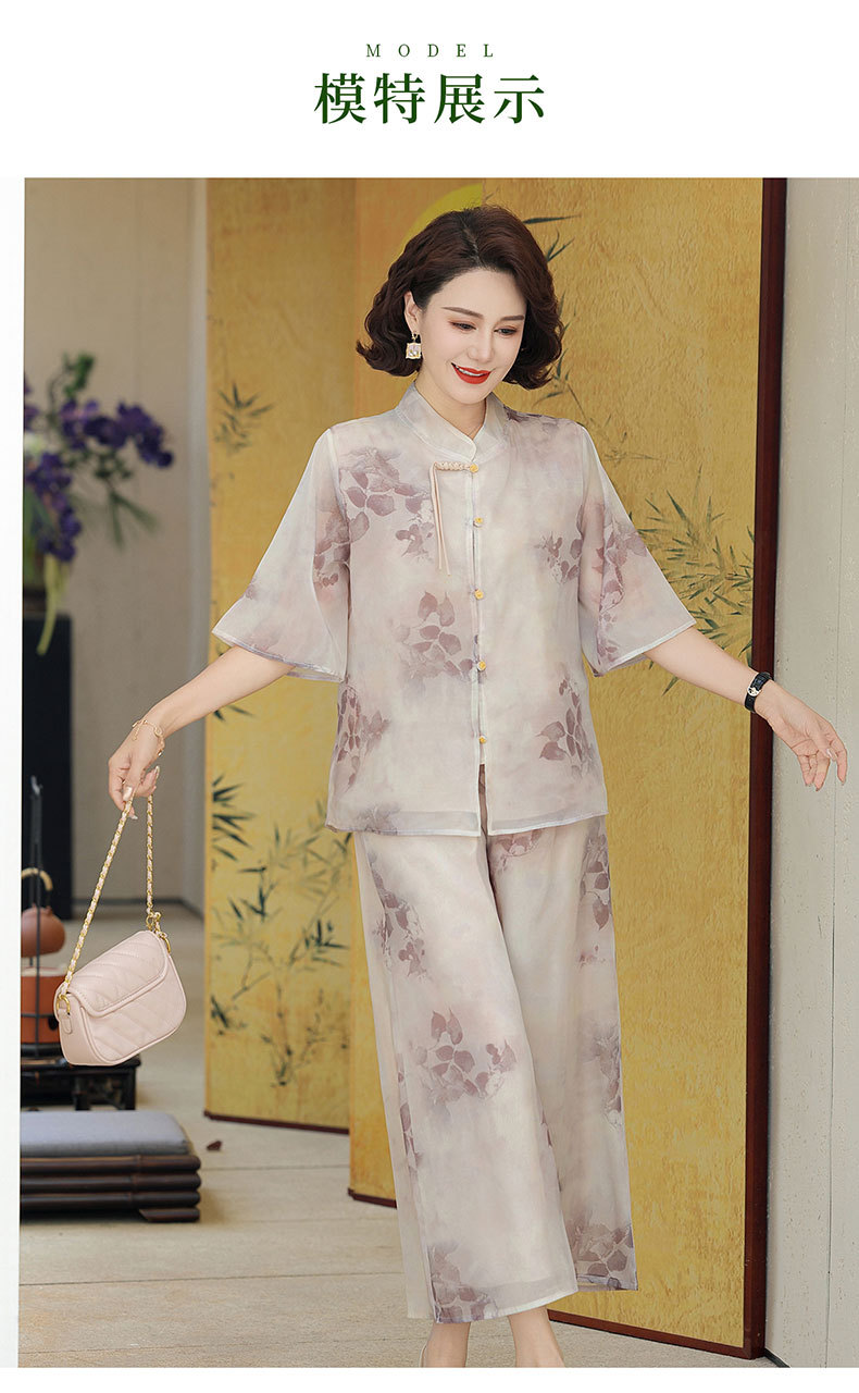 Шифоновая летняя одежда для мам для женщин среднего и пожилого возраста, летние костюмы, модная легкая женская одежда с принтом для людей среднего возраста