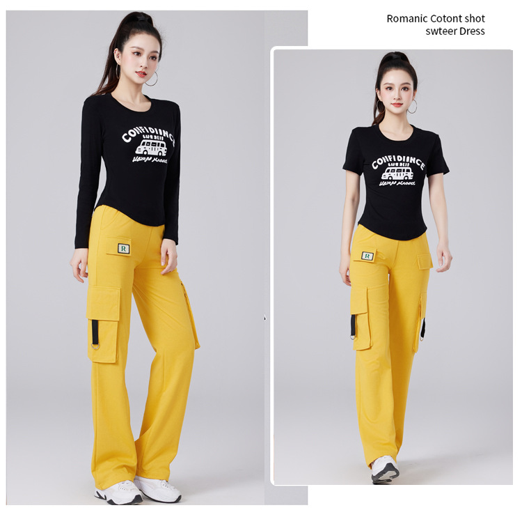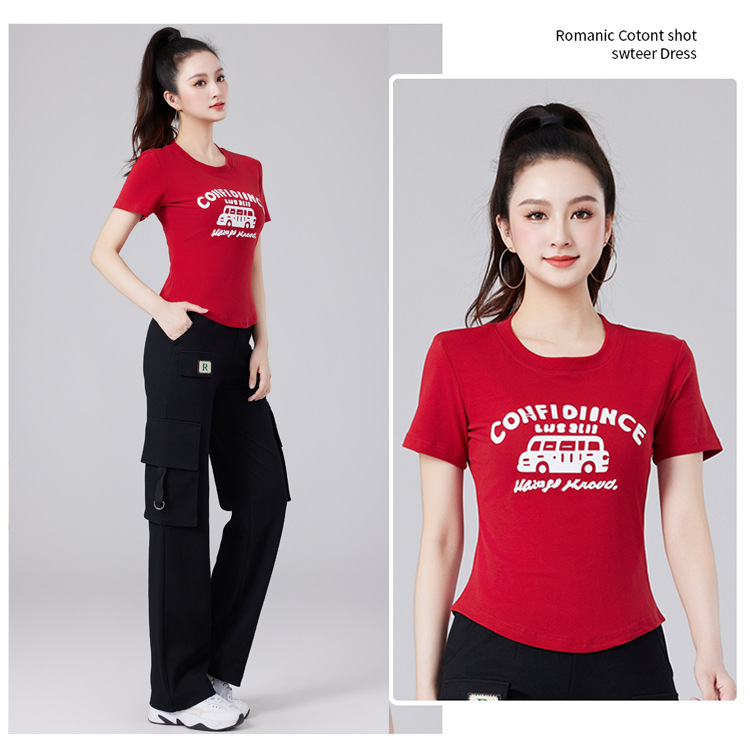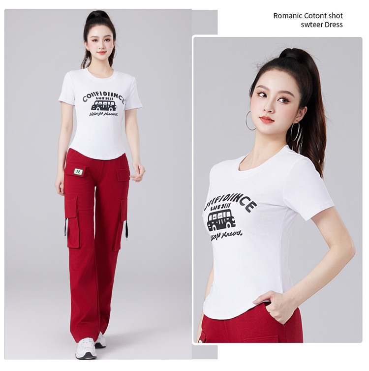 2025 Летний новый спортивный набор для танца в стиле призрачный танец повседневная одежда с принтом буквами с короткими рукавами комбинезон