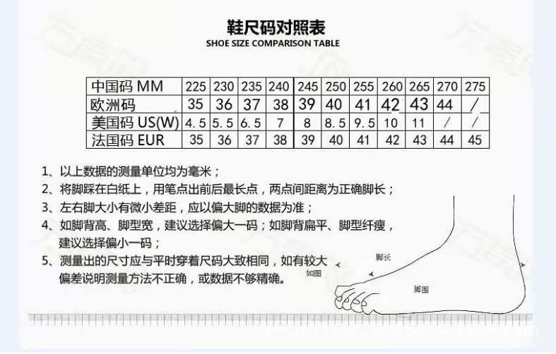 【关于售后】售出鞋子如有任何问题均需第一时间联系我们客服说明情况,我们会负责到底,退回运费按照寄出运费补回。拍错码子和颜色来回运费由买家自己承担!