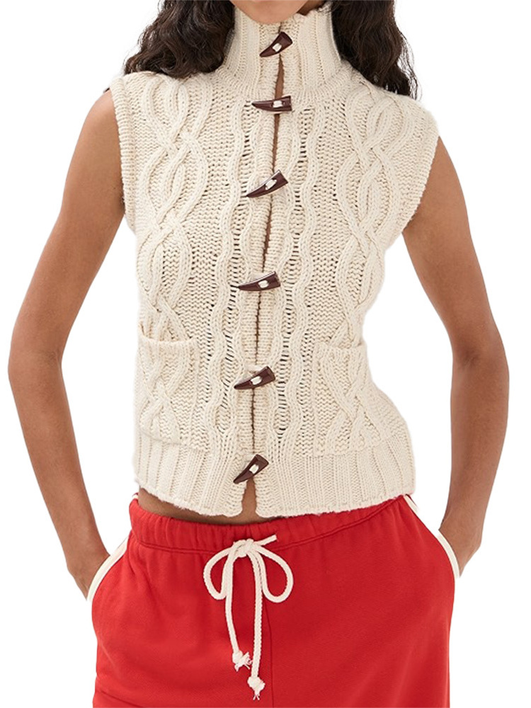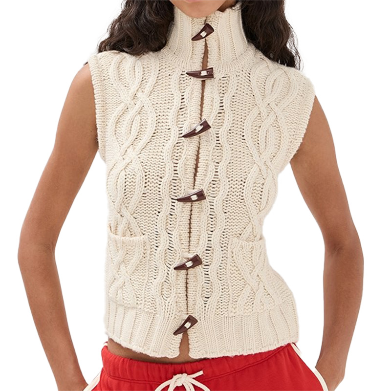 Европейский и американский повседневный ретро-кардиган с высоким воротом, без рукавов, вязаный, с индивидуальным узором, из шерсти Daliang.