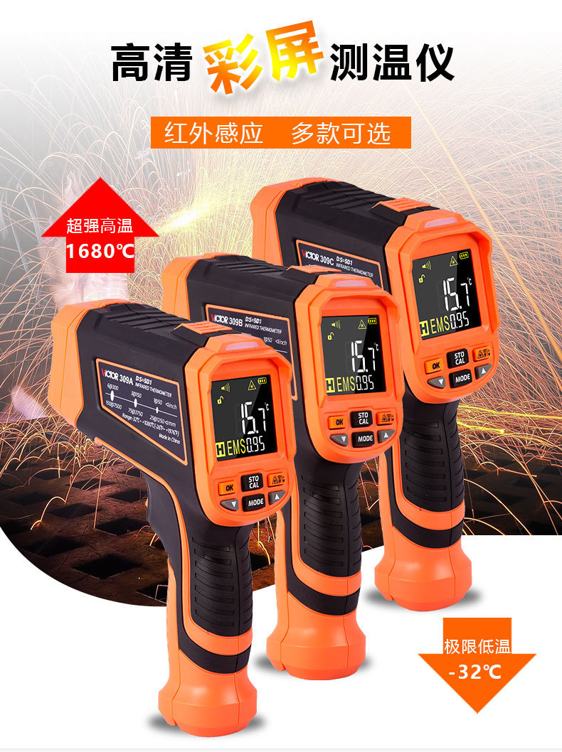 Victory VC309A/VC309B/VC309C высокотемпературный инфракрасный термометр промышленный высокоточный бесконтактный температурный пистолет