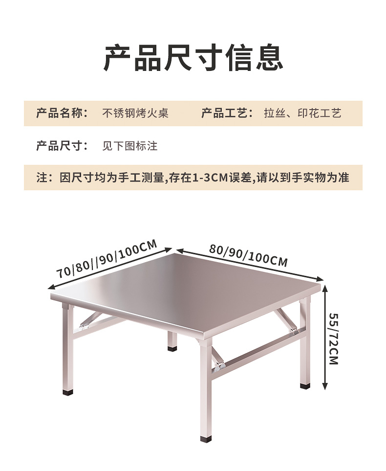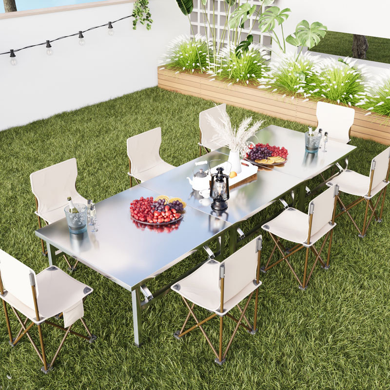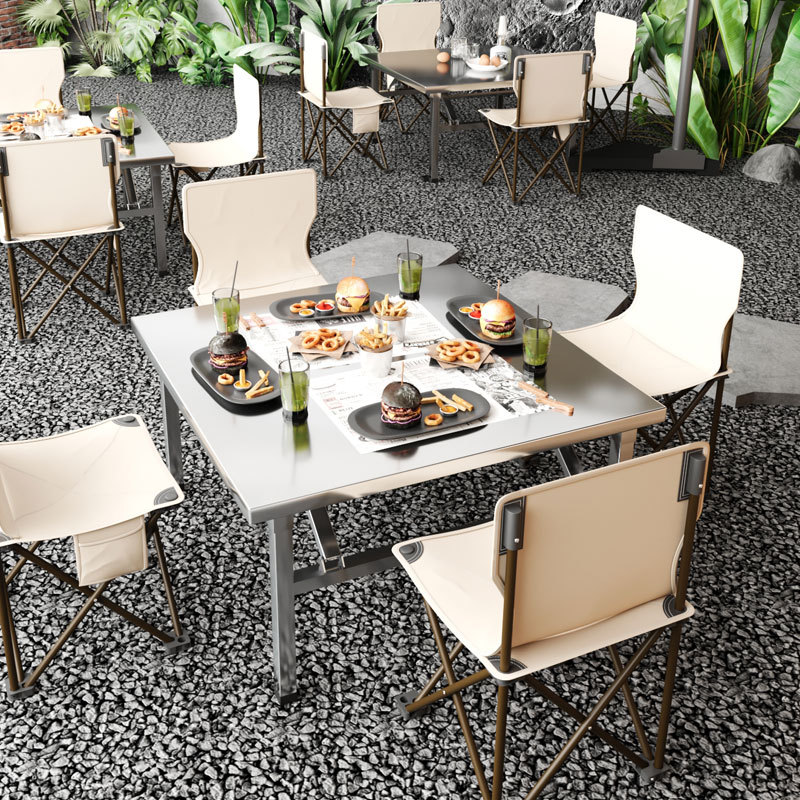 Оптовая продажа, складной квадратный стол из нержавеющей стали, небольшой обеденный стол, коммерческий уличный портативный низкий столик, уличный ларек