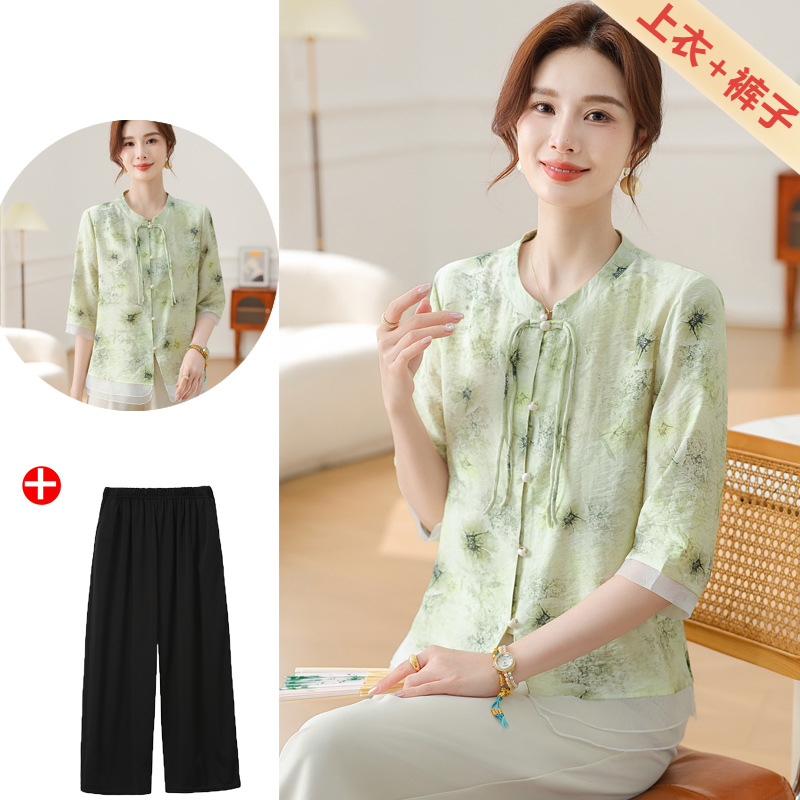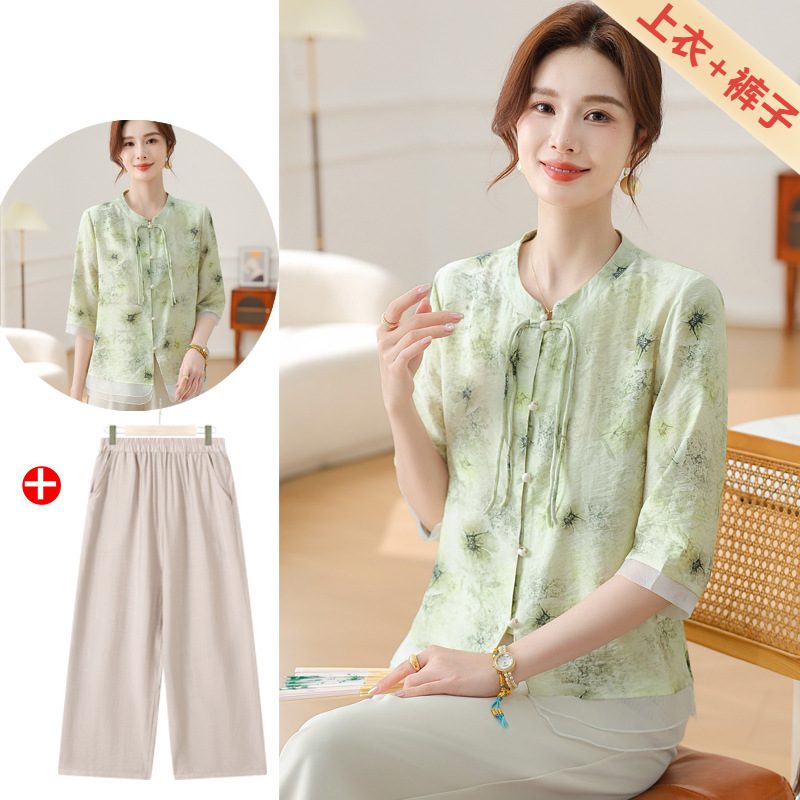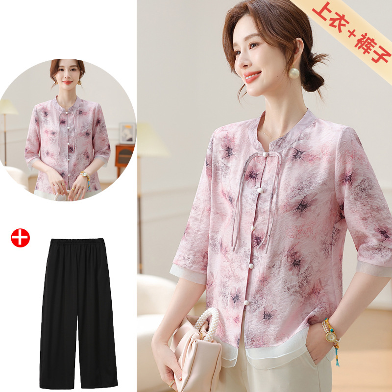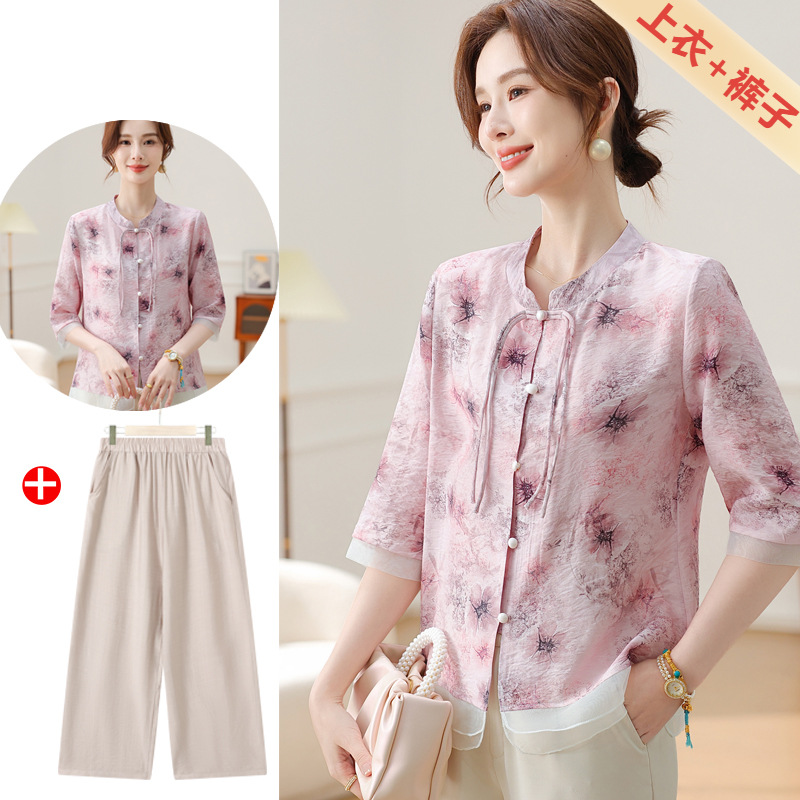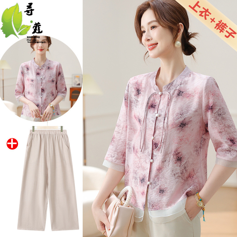 Ищу цветочный темперамент мамы Летняя одежда 2025 Новый костюм с рукавом из семи точек