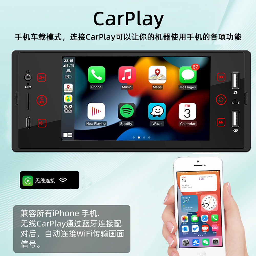 5inch Автомобильный одноцилиндровый MP5-плеер HD с сенсорным экраном, беспроводной Carplay, обратное видео F150W