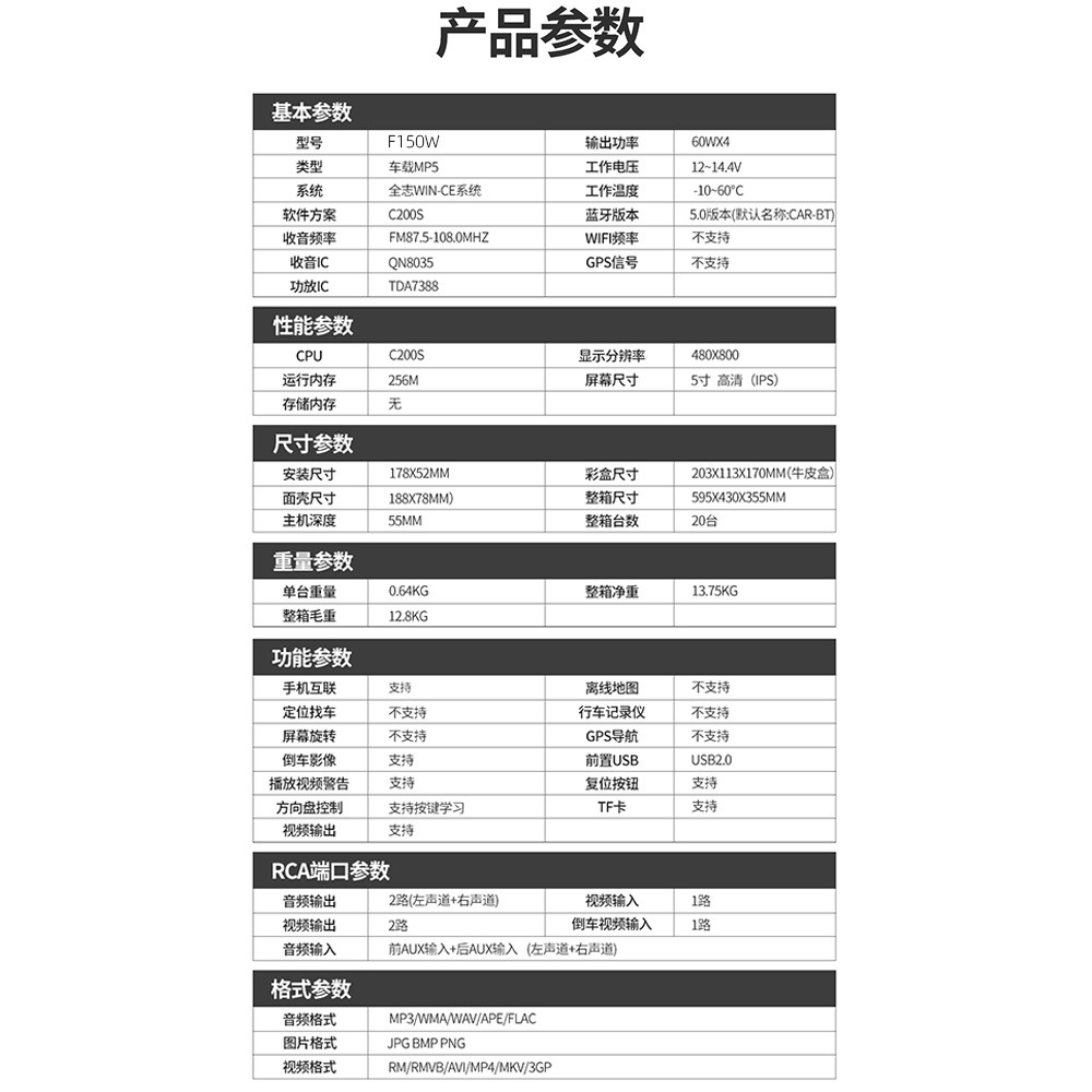 F150W 5英寸车载收音机多媒体MP5播放器高清触摸屏双USB蓝牙兼容倒车视频卡U盘收音机MP5播放器