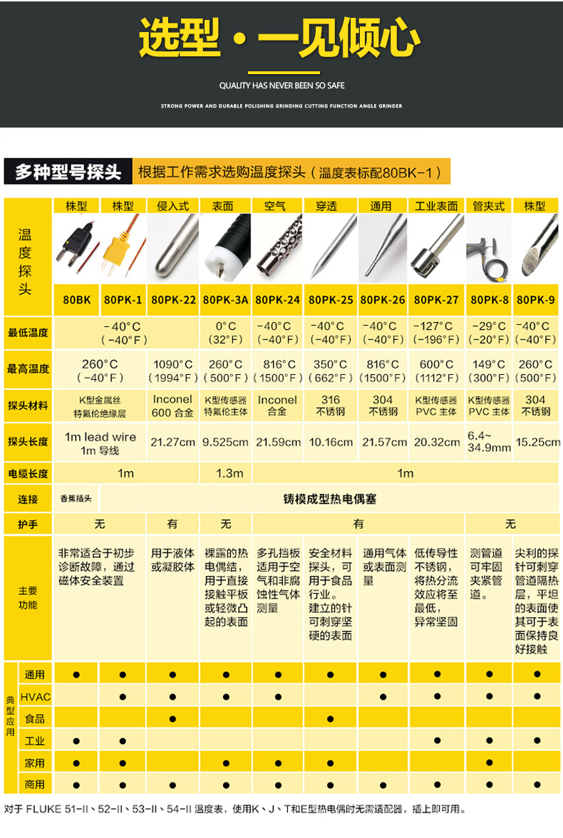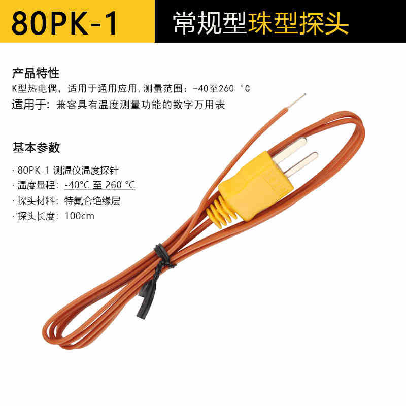 80BK-Мультиметр-зонд [-40°С до 260°С]; 80PK-1 щуп для шариков [-40°С до 260°С]; Датчик температуры поверхности 80PK-3A【0 ° С до 260 ° С]; Датчик высокого напряжения 80К-40 (40000В); Датчик высокого напряжения 80К-6 (6000В); 80PK-22 Инвазивный зонд [от -40C до 1090°С]