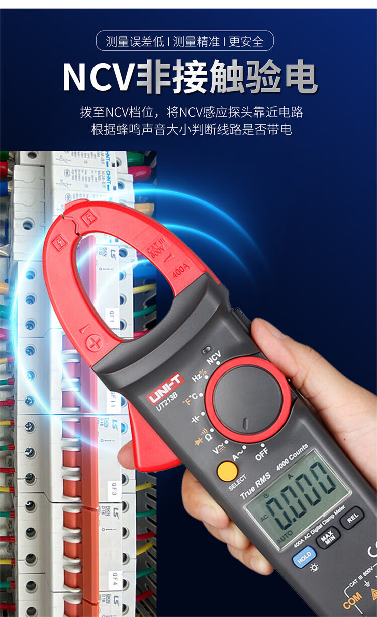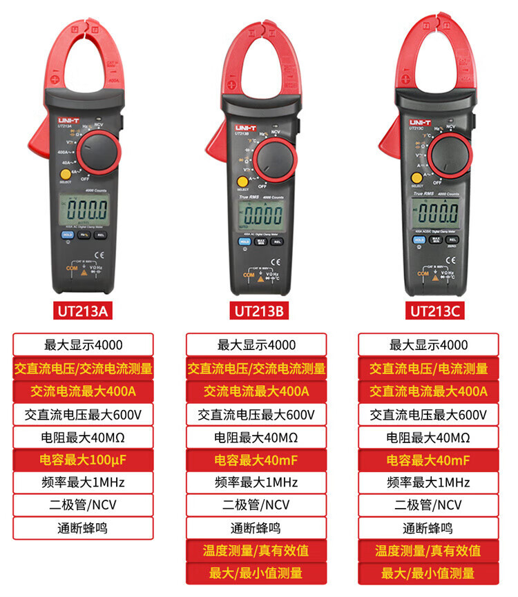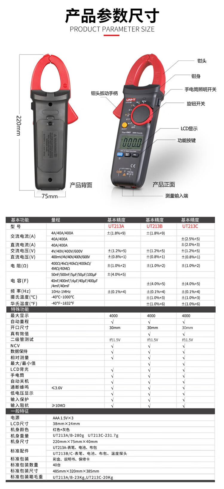 UNI-T UT213A клещевой мультиметр цифровой интеллектуальный антиожоговый амперметр с измерением сопротивления и конденсаторов