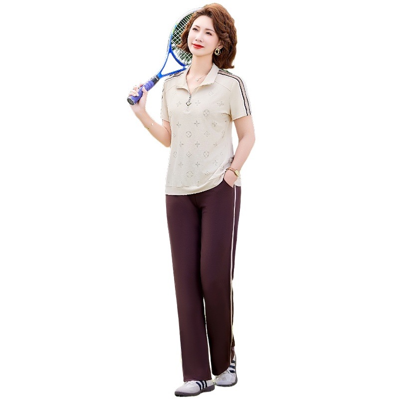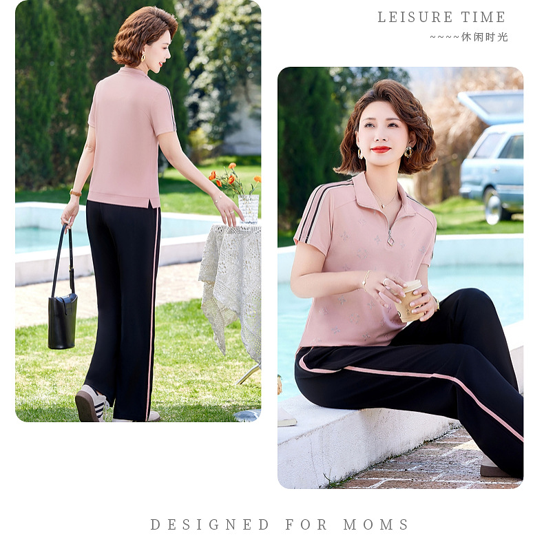 Среднее и старое летнее платье для мамы модный повседневный спорт среднего возраста два комплекта с короткими рукавами