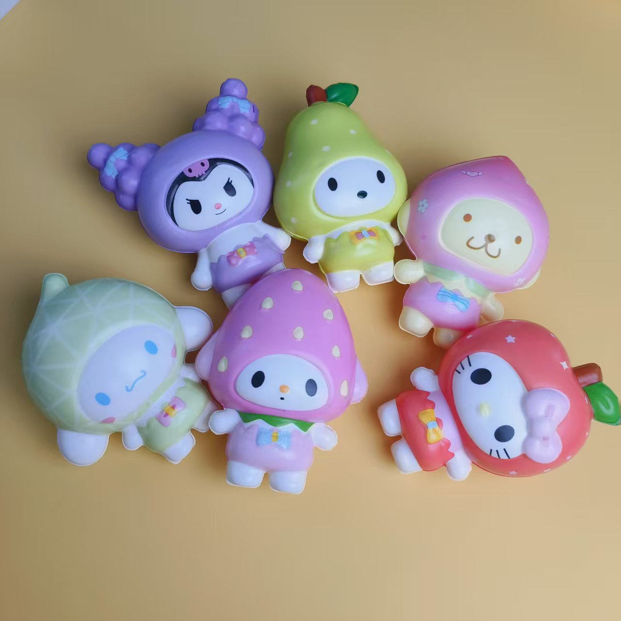 Мягкая игрушка Sanrio с фруктами, Куроми, собака с большими ушами, Почако, котенок Китти, антистрессовая игрушка для ночного рынка