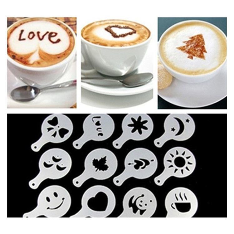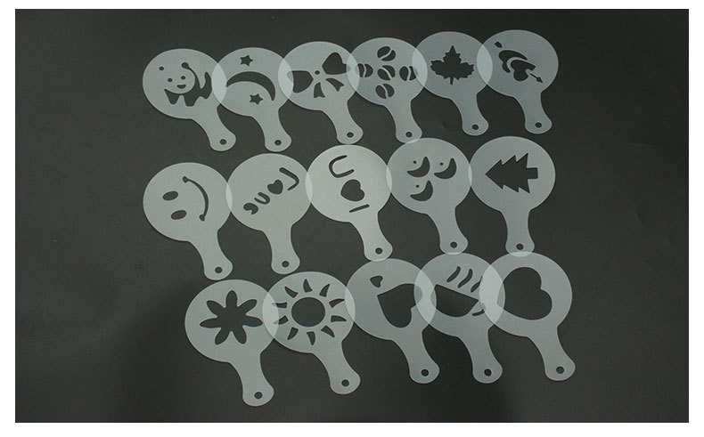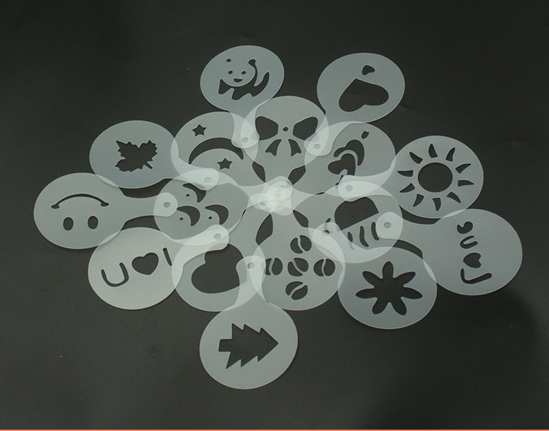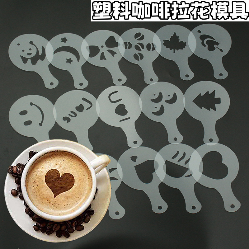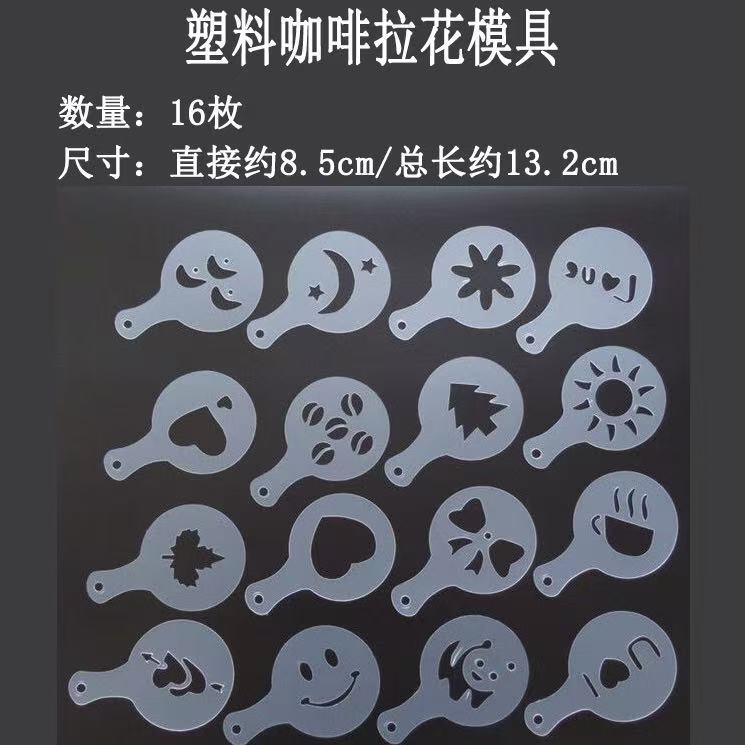 Пластиковая форма для латте-арта, модель для печати необычного кофе, утолщенный шаблон для распыления цветов из кофейной молочной пены, набор из 16 предметов