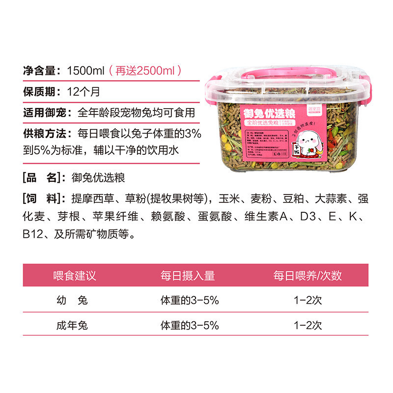 Корм для кроликов в большой коробке для молодых и взрослых кроликов, морской свинки, кролика, морской свинки, корм для кроликов с длинными ушами, корм против шариков, оптовая продажа