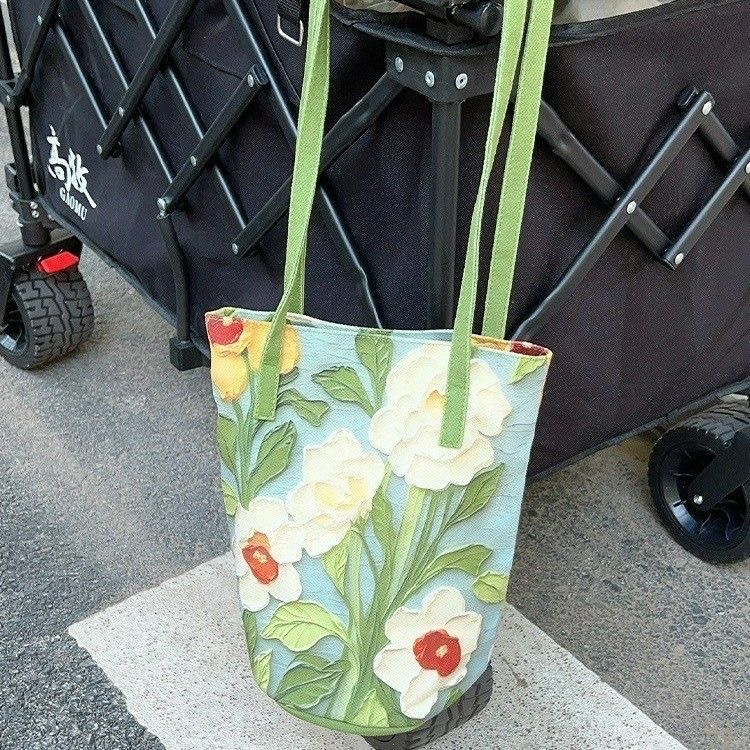 2025 новая масляная живопись, цветочная ниша, высококачественная сумка через плечо, универсальная ниша, портативная сумка-ведро большой вместимости