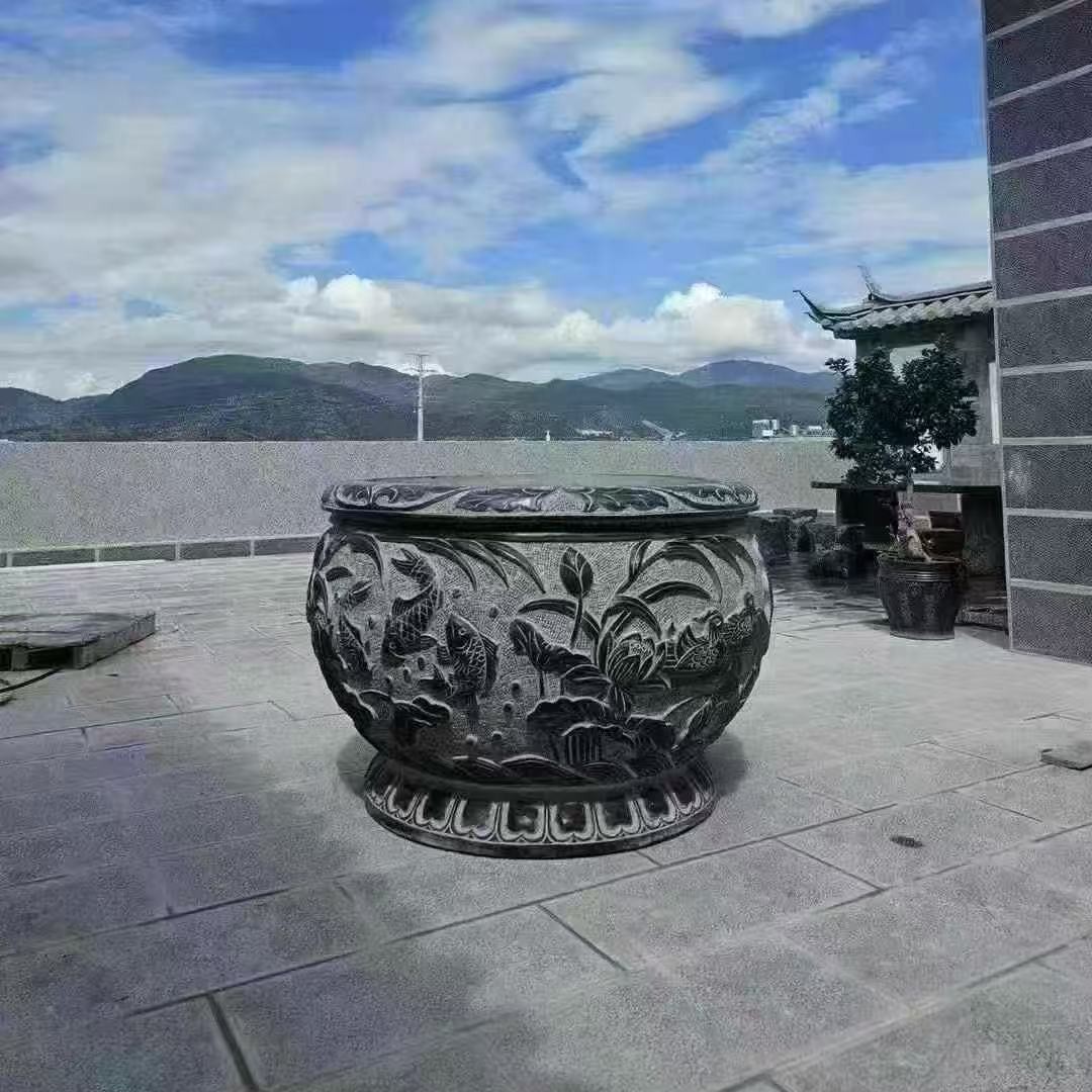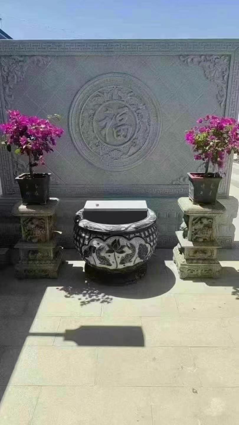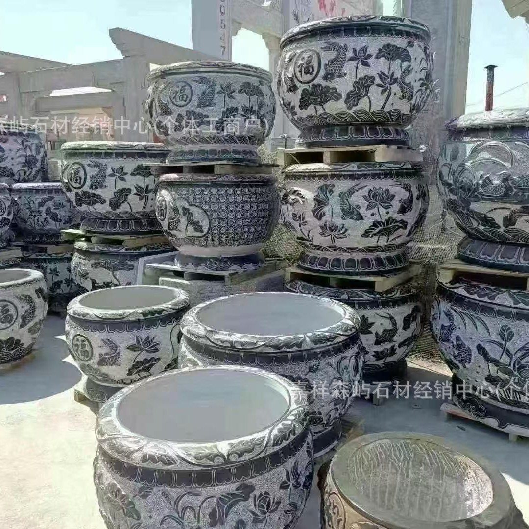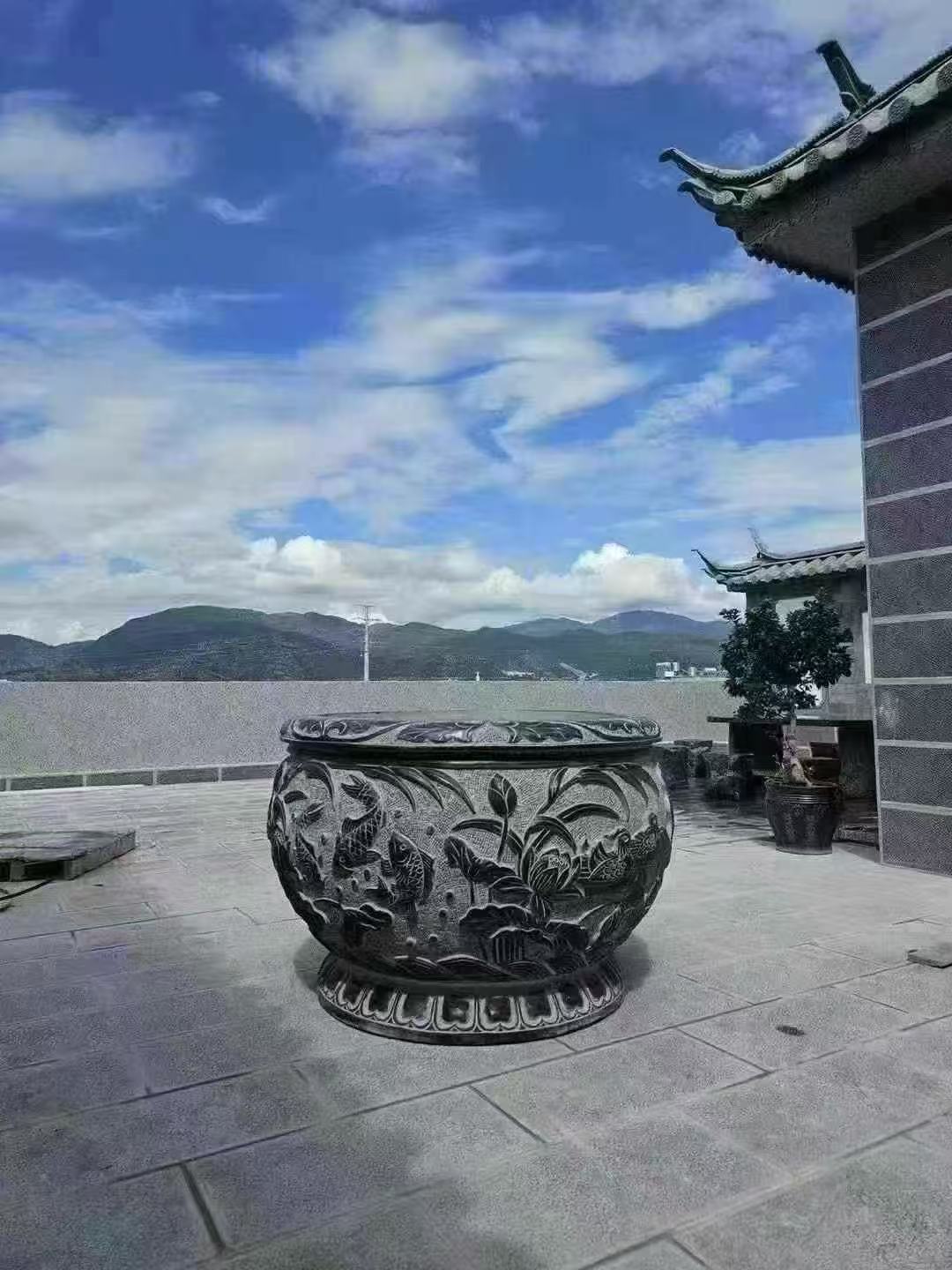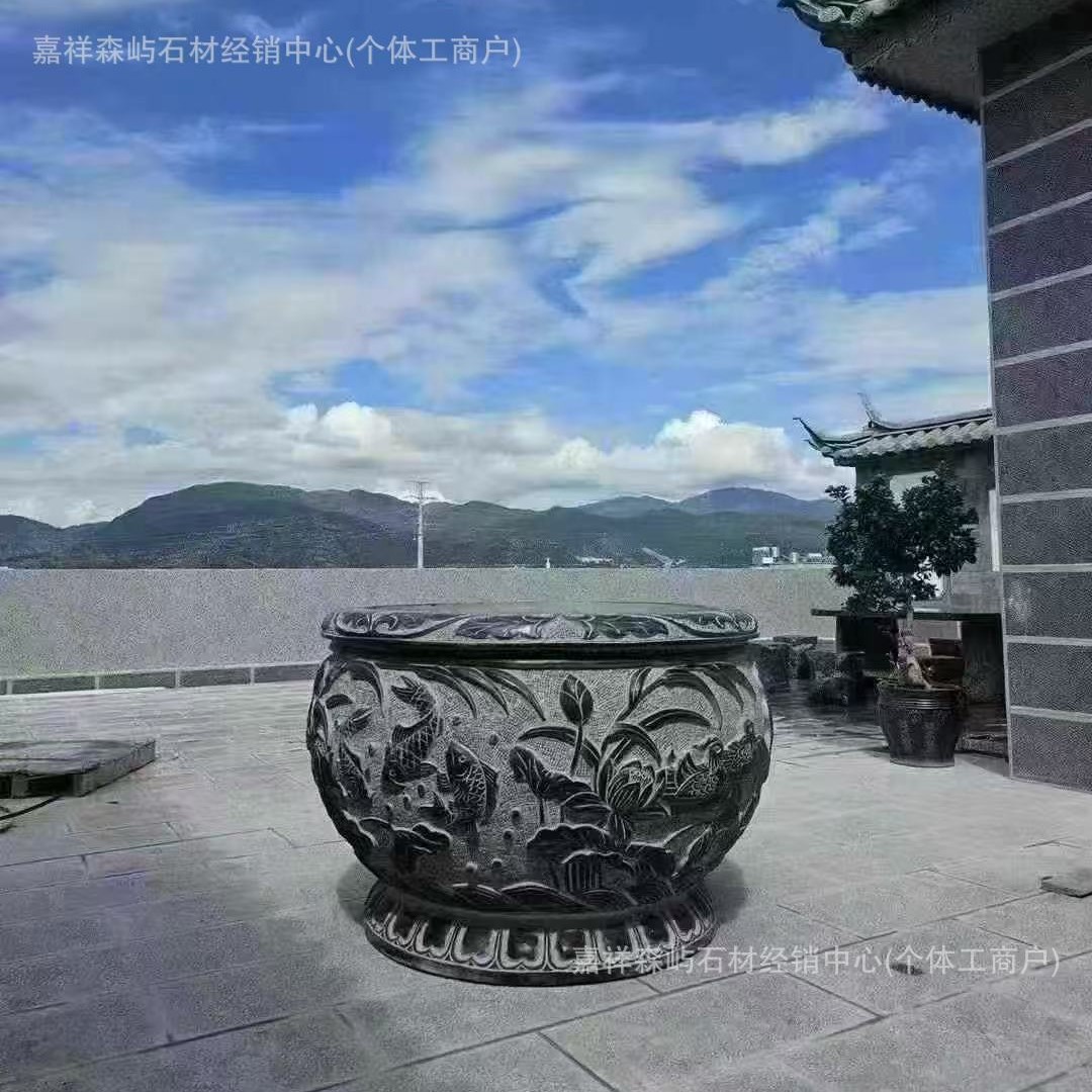 Каменный аквариум в античном стиле с синей каменной резьбой, цветочный горшок на открытом воздухе во дворе, пруд для рыбы, резервуар для лотоса, круглый орнамент для резервуара во дворе виллы.