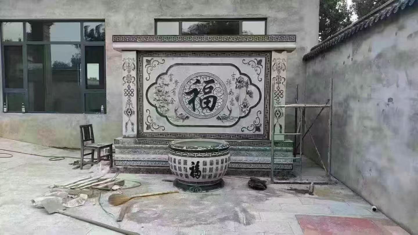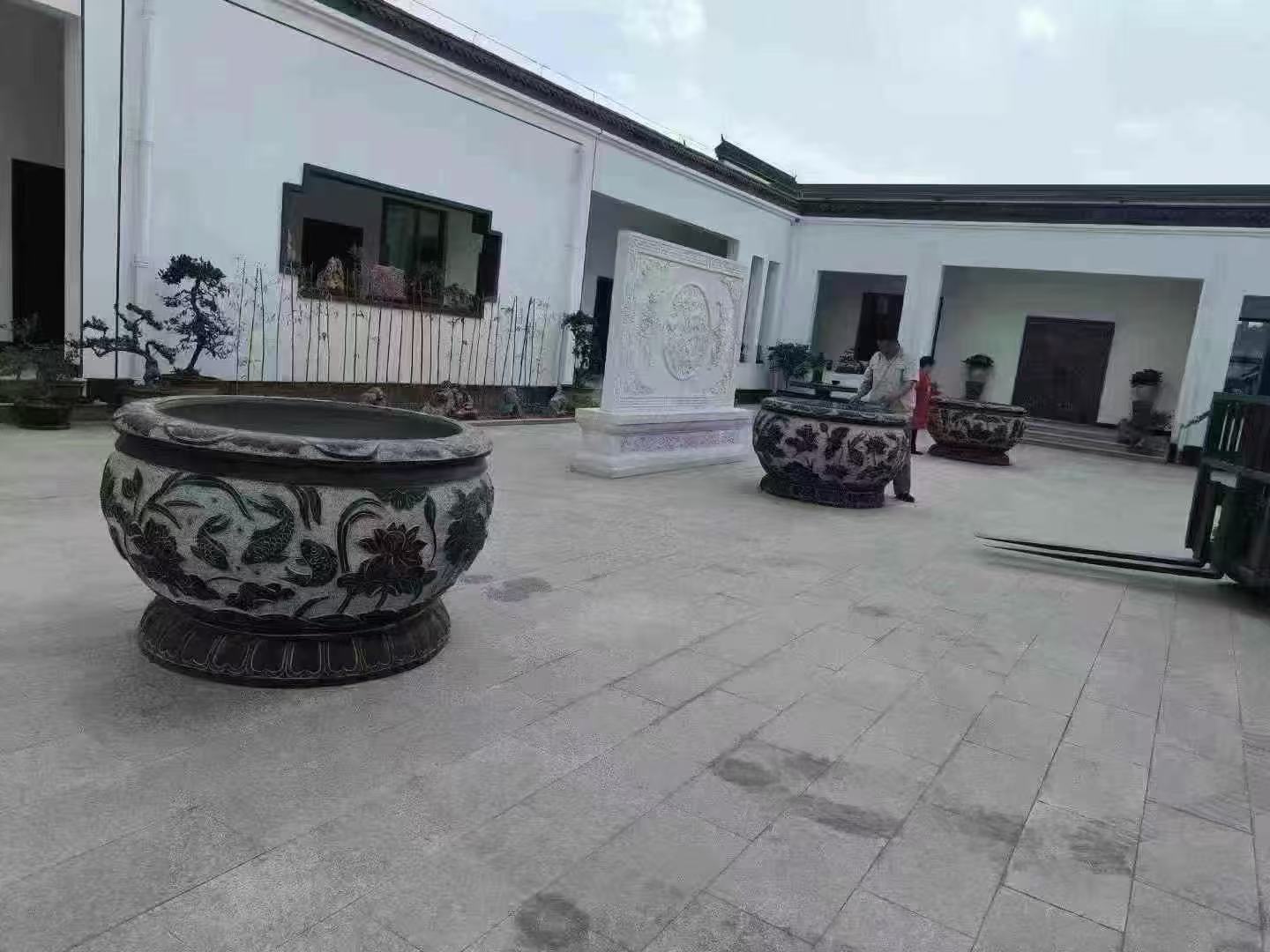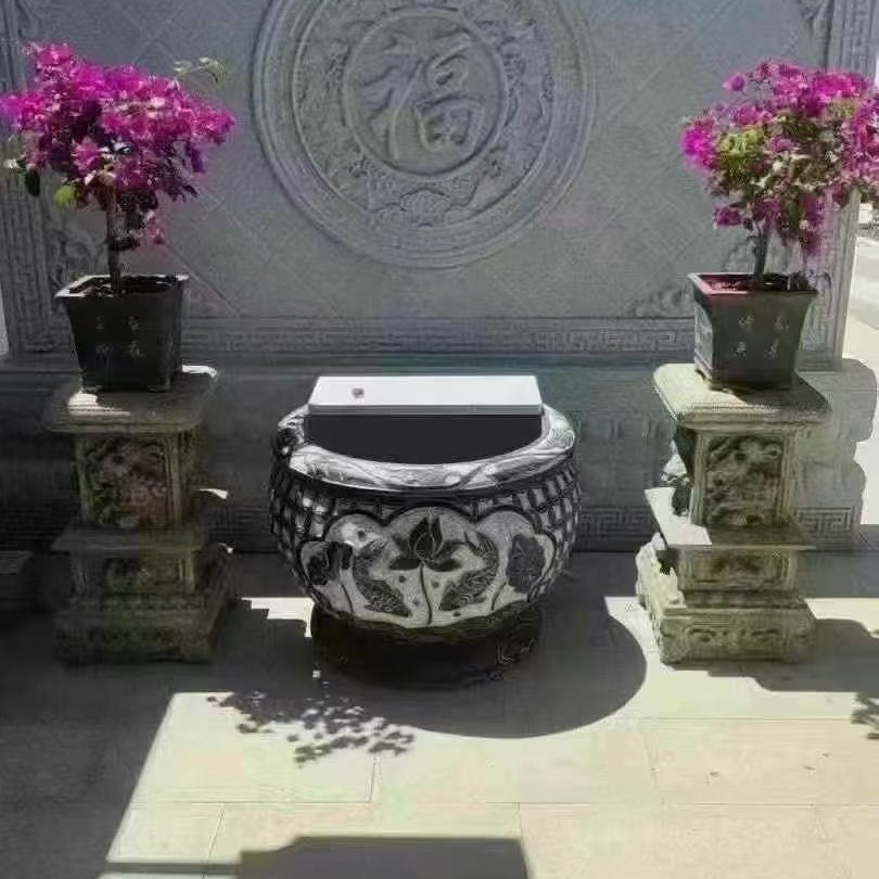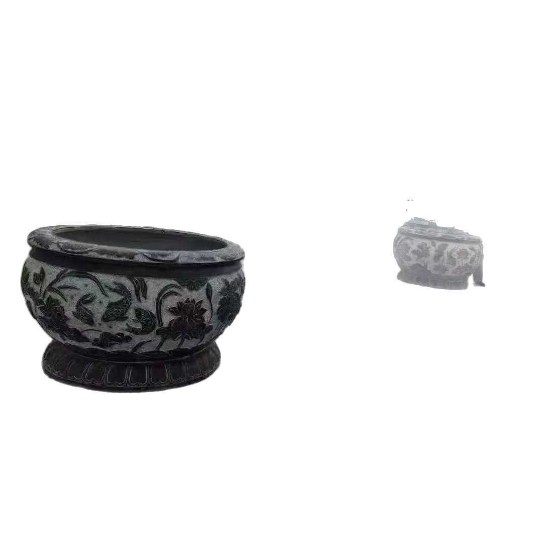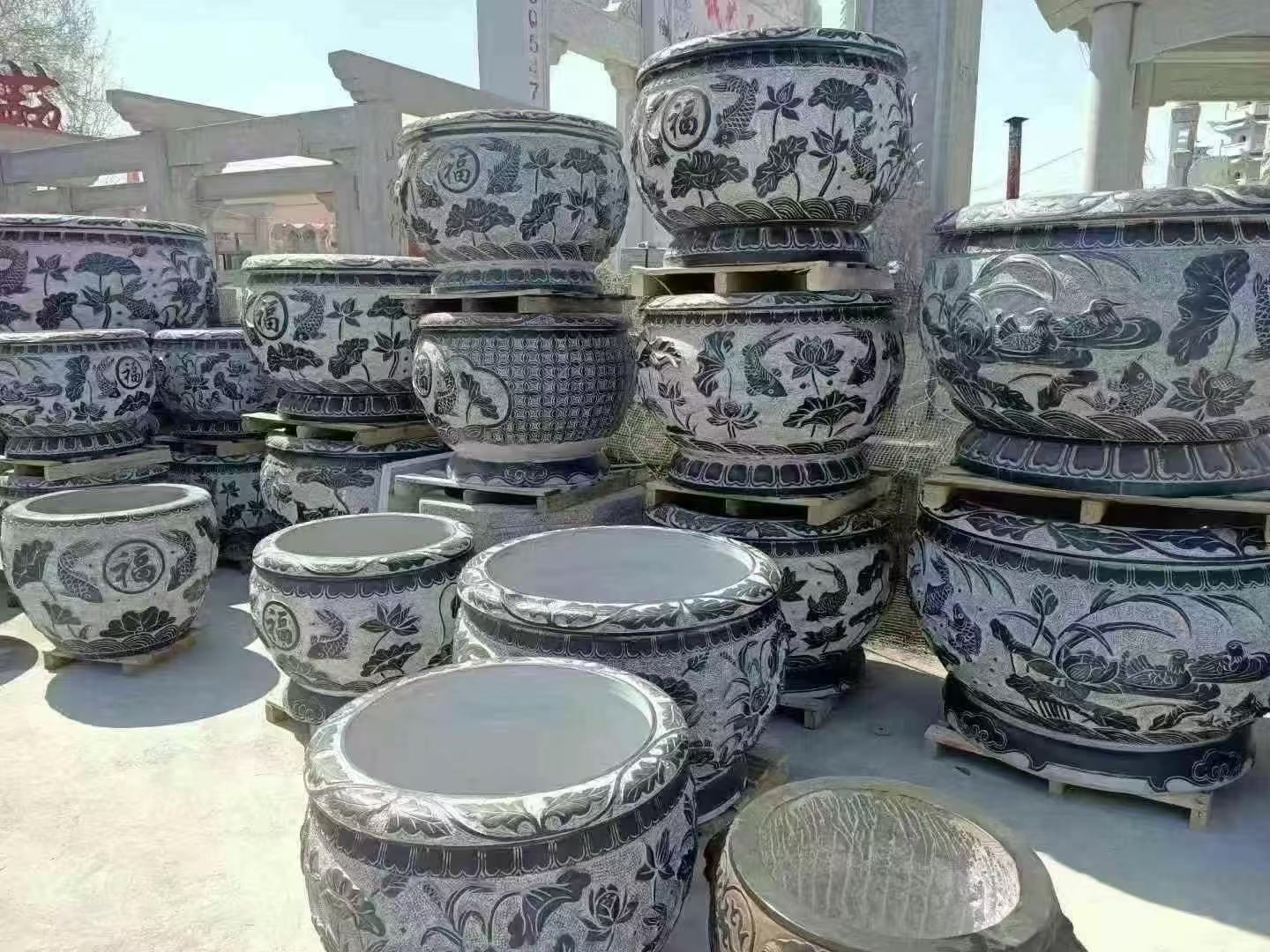 Каменный аквариум в античном стиле с синей каменной резьбой, цветочный горшок на открытом воздухе во дворе, пруд для рыбы, резервуар для лотоса, круглый орнамент для резервуара во дворе виллы.