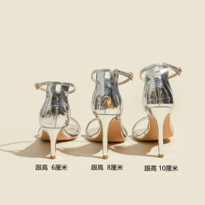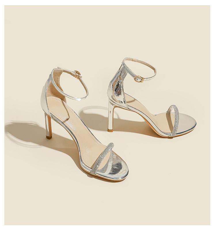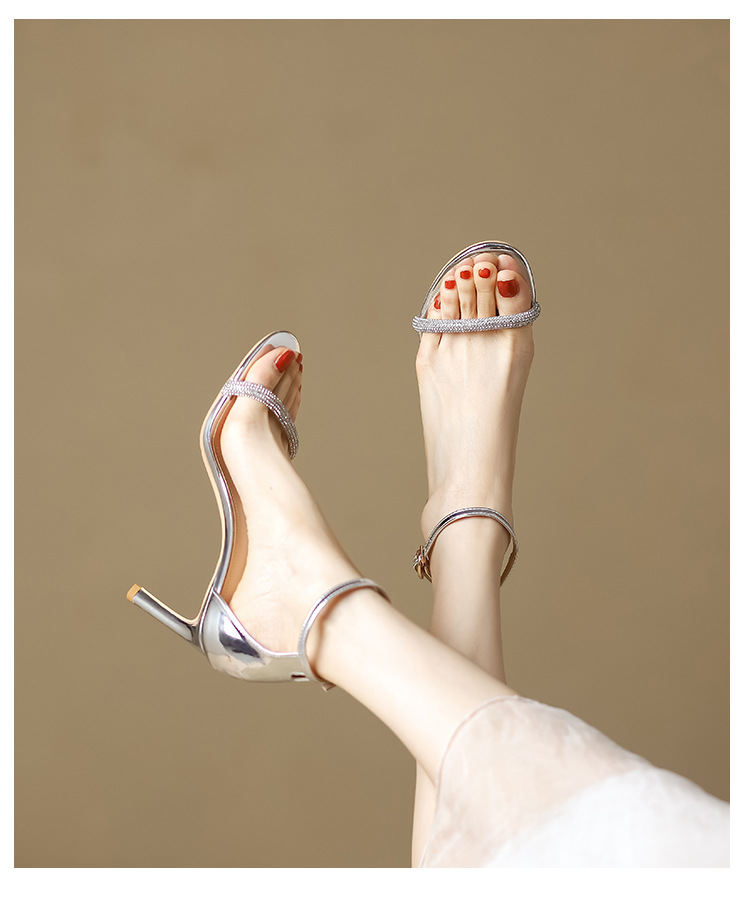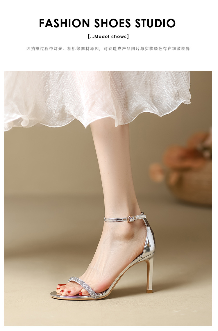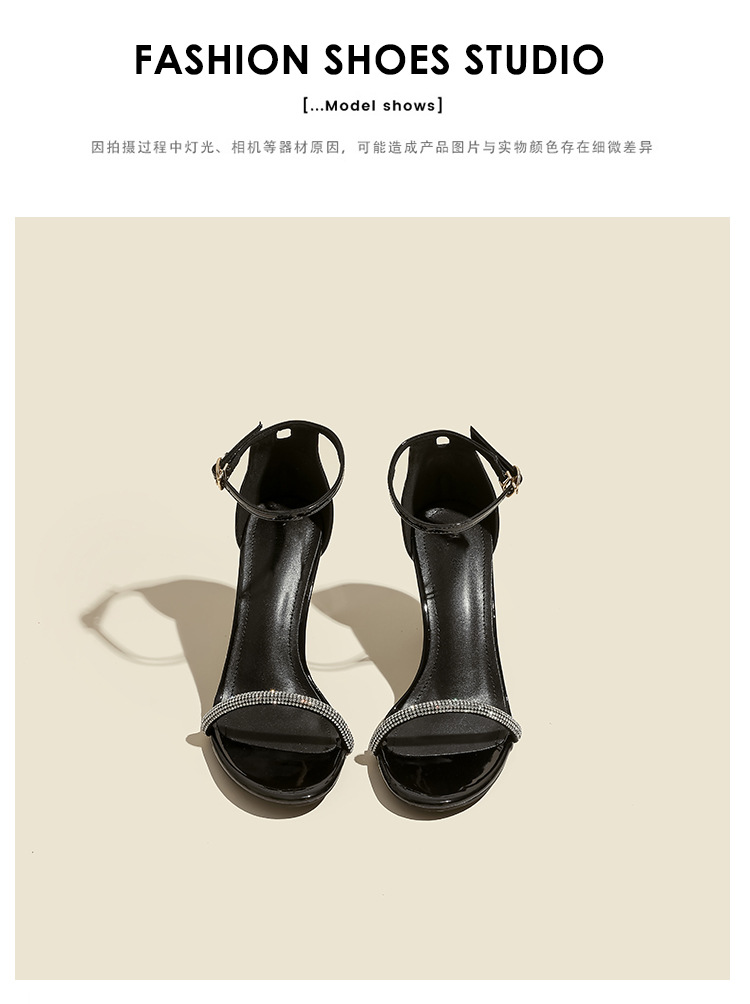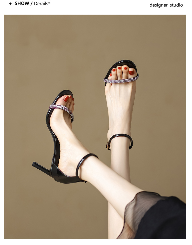 Босоножки на ремешках для женщин, весна-лето 2025, новый стиль, черные стразы, сексуальные высокие каблуки, модные мужские шпильки, женская обувь
