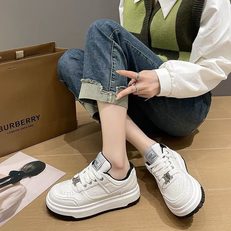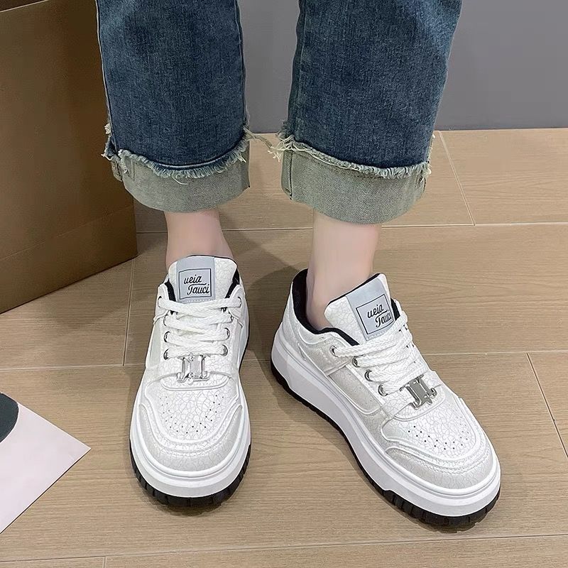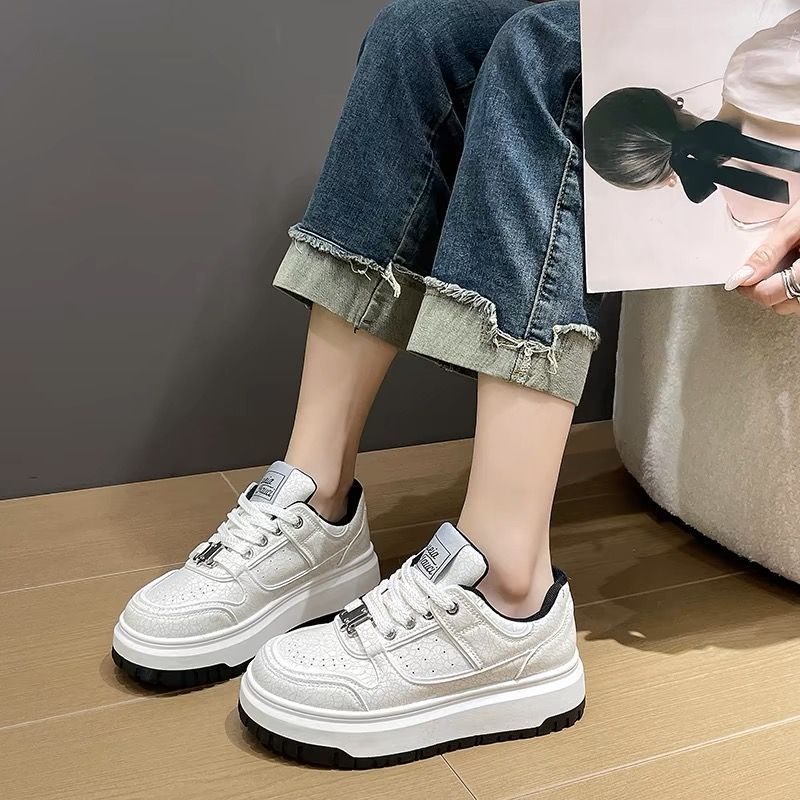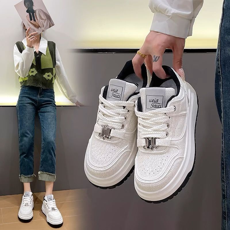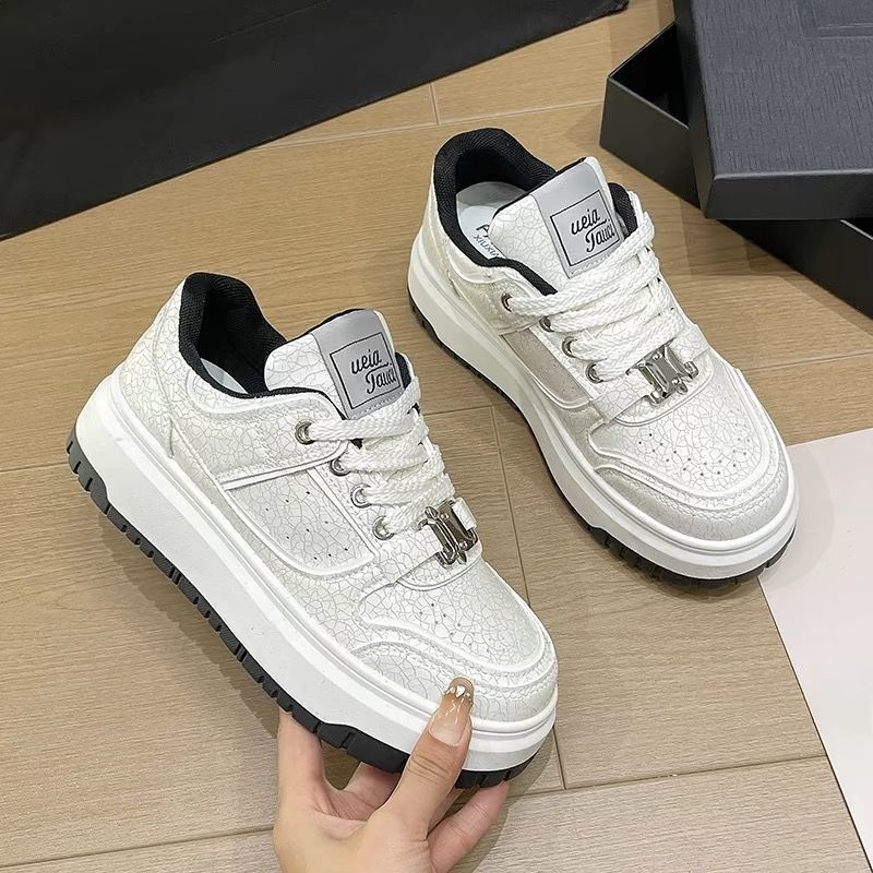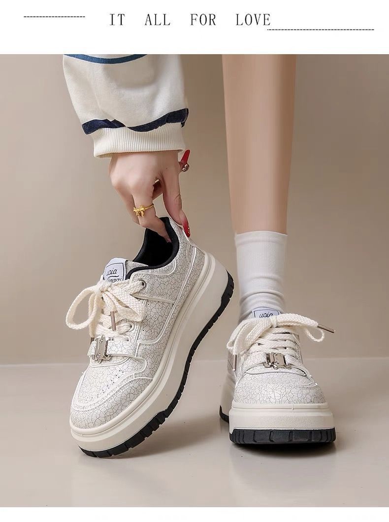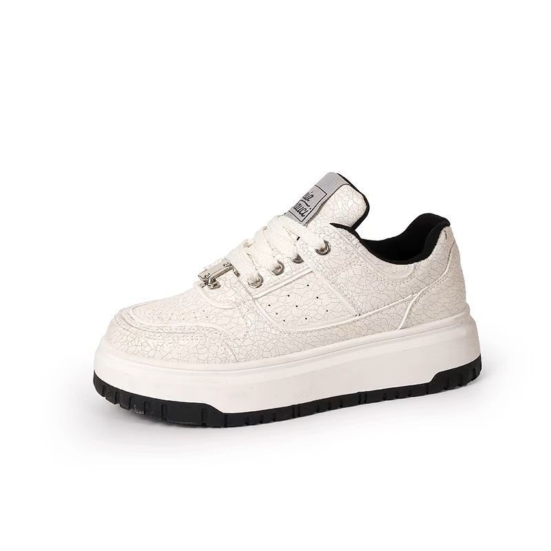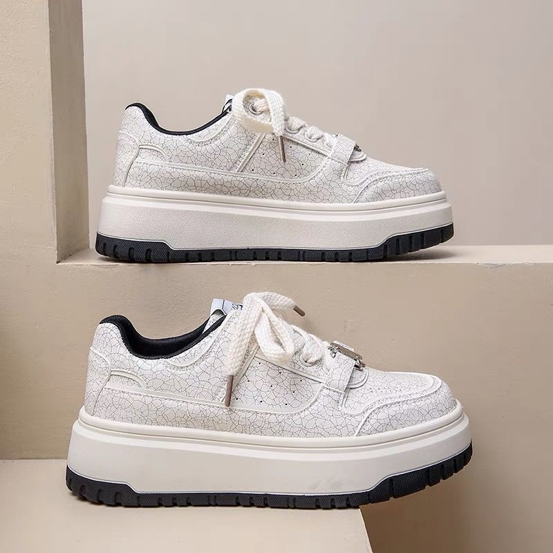Женские кроссовки с белым рисунком "ледяной кракелюр", на толстой подошве, новые универсальные кеды в стиле casual с корейским трендом, белые, 2025 год.