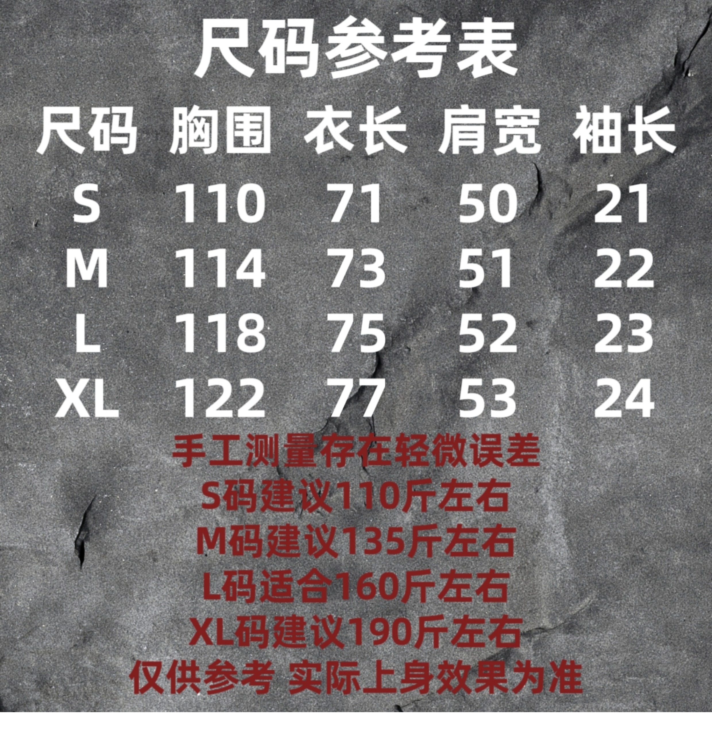 S около 57.5kg; М около 67.5kg; Л около 80kg; XL около 95kg