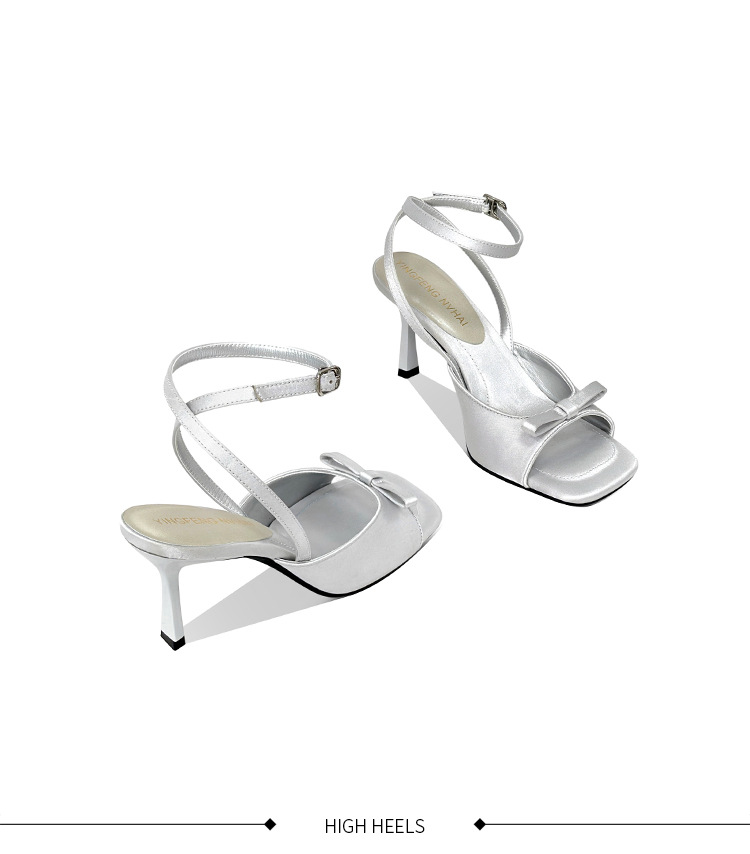В наличии: французские босоножки в стиле кэжуал, сочетаются с юбками, элегантные и красивые туфли-принцессы с бантом, серебристые туфли на высоком каблуке для девочек, летние.