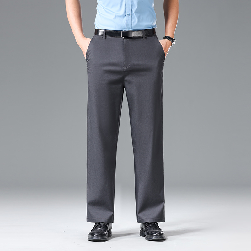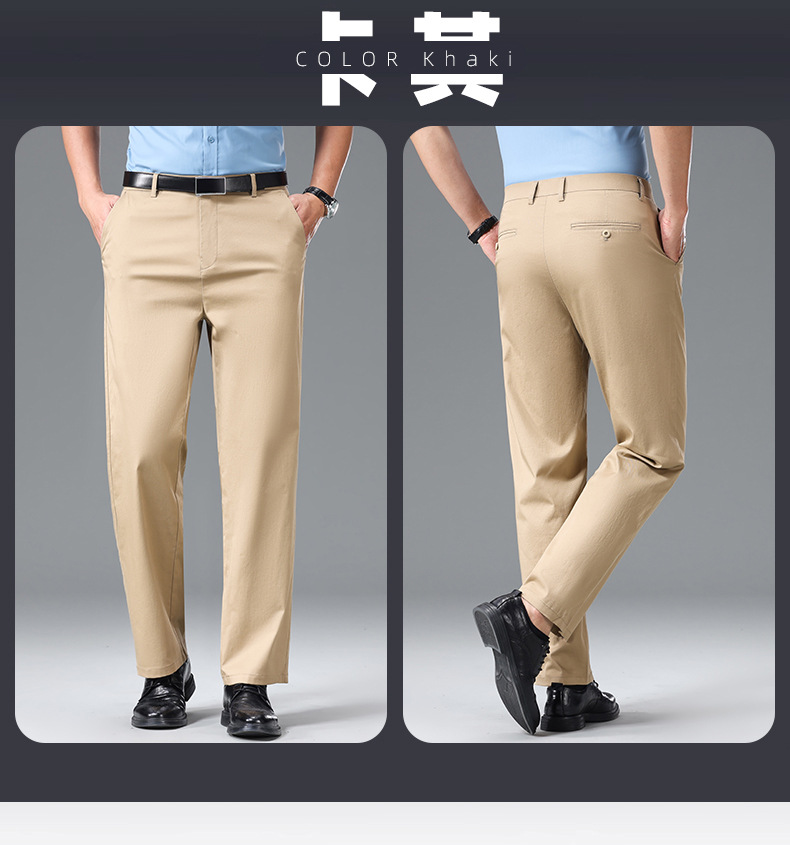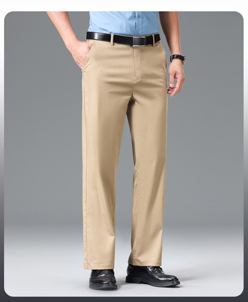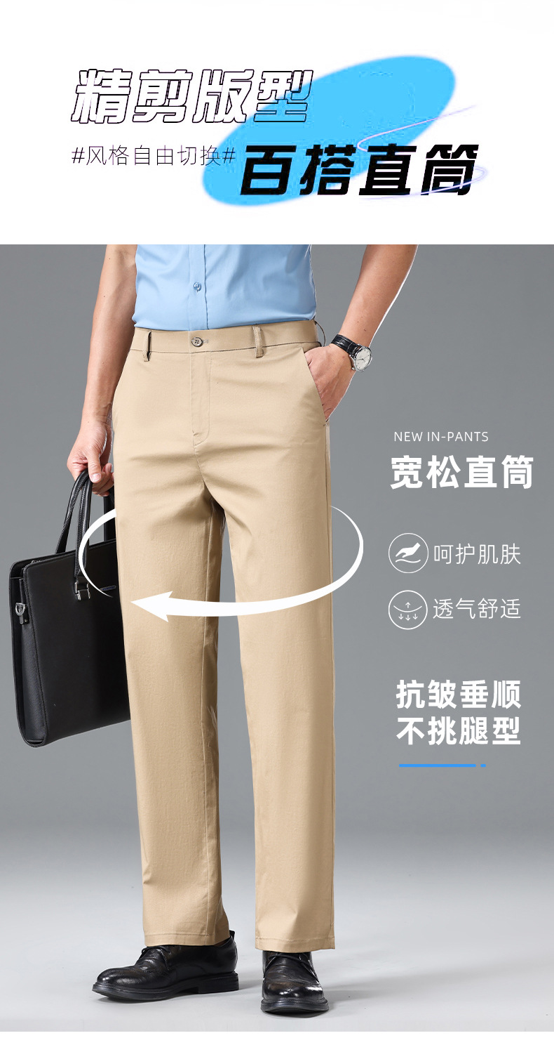 Мужские хлопковые брюки без глажки для повседневной носки, лето 2025, прямые, тонкие, деловой стиль, дышащие.