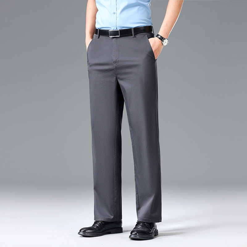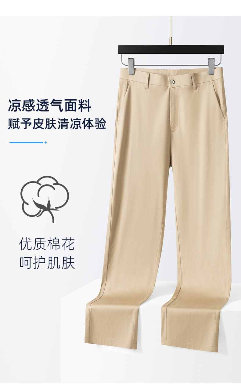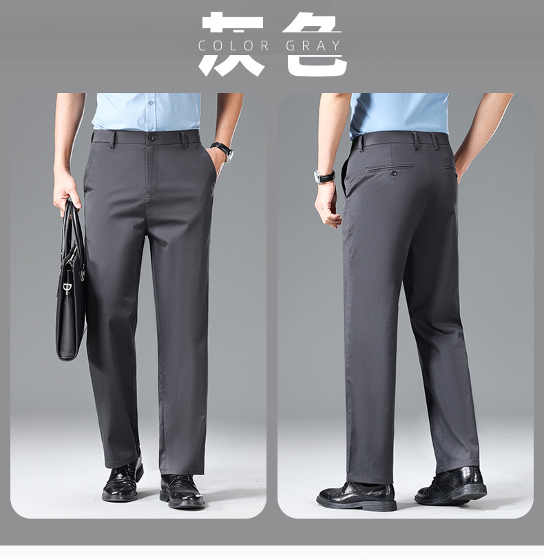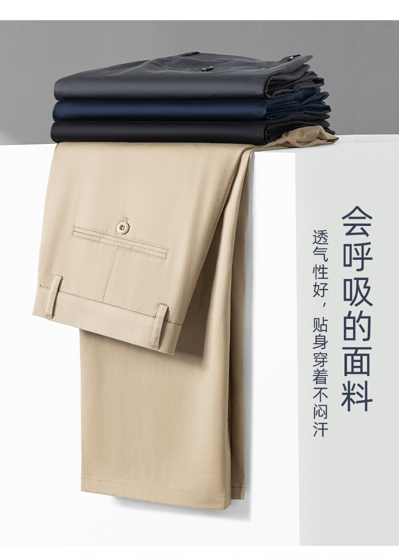 Мужские хлопковые брюки без глажки для повседневной носки, лето 2025, прямые, тонкие, деловой стиль, дышащие.