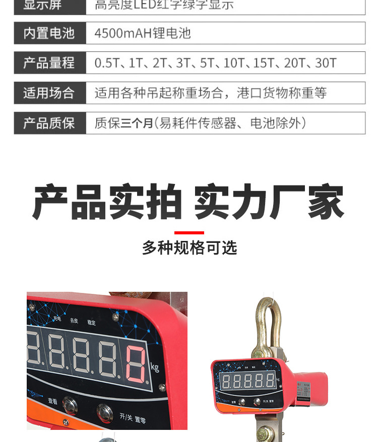 1-тонный красный и зеленый двойной дисплей (маленький экран); 2-тонный красный и зеленый двойной дисплей (маленький экран); 3-тонный красно-зеленый двойной дисплей (маленький экран); 5-тонный красно-зеленый двойной дисплей [маленький экран]; Специальное предложение: 1 тонна дисплея с маленьким экраном — красные/зеленые символы; Специальное предложение: 2-тонный дисплей с маленьким экраном — красные/зеленые символы; Специальное предложение: 3-тонный цифровой дисплей с прямым просмотром — красные буквы/зеленые буквы; Специальное предложение: 5-тонный цифровой дисплей с прямым изображением — красные буквы/зеленые буквы (маленький крючок); Цифровой дисплей национального стандарта, 2 тонны, с прямым просмотром, с красными и зелеными символами, отправленными случайным образом.; Цифровой дисплей национального стандарта, 3 тонны, с прямым просмотром и зелеными символами.; Цифровой дисплей национального стандарта, 5 тонн, с прямым просмотром и зелеными символами.; Специальное предложение: 1 тонна красного и зеленого двойного дисплея (маленький экран); Специальное предложение 2 тонны красного и зеленого двойного дисплея (маленький экран); Специальное предложение 3 тонны красного и зеленого двойного дисплея (маленький экран); Специальное предложение 5 тонн красного и зеленого двойного дисплея (маленький экран); Цифровой дисплей прямого просмотра национального стандарта, 1 тонна — красные/зеленые символы; Цифровой дисплей прямого просмотра национального стандарта, 2 тонны — красные/зеленые символы; Цифровой дисплей прямого просмотра национального стандарта, 3 тонны — красные/зеленые символы; Цифровой дисплей прямого просмотра национального стандарта, 5 тонн — красные буквы/зеленые буквы; Цифровой дисплей прямого просмотра национального стандарта, 10 тонн — красные/зеленые символы; Цифровой дисплей прямого просмотра национального стандарта, 15 тонн — красные буквы/зеленые буквы; Цифровой дисплей прямого просмотра национального стандарта, 20 тонн — красные/зеленые символы; Цифровой дисплей прямого просмотра национального стандарта, 30 тонн, красные/зеленые символы; Модель Bluetooth национального стандарта 1 тонна — красная буква/зеленая буква; Модель Bluetooth национального стандарта 2 тонны - красные буквы/зеленые буквы; Модель Bluetooth национального стандарта 3 тонны - красная буква/зеленая буква; (Модель Bluetooth) Национальный стандарт 5 тонн — красная буква/зеленая буква; Специальное предложение 1 тонна ручная модель - красная буква/зеленая буква; Специальное предложение: 2-тонная ручная модель — красная буква/зеленая буква; Специальное предложение: 3-тонная ручная модель — красная буква/зеленая буква; Специальное предложение 5-тонная ручная модель - красная буква/зеленая буква (маленький крючок); Национальный стандарт, 1-тонная портативная модель — красные буквы/зеленые буквы; 2-тонная портативная модель национального стандарта — красные буквы/зеленые буквы; Национальный стандарт, 3-тонная портативная модель — красные буквы/зеленые буквы; Национальный стандарт 5-тонной портативной модели — красные буквы/зеленые буквы; Национальный стандарт, 10-тонная портативная модель — красные буквы/зеленые буквы; Специальное предложение: 1-тонная модель ручной печати — красные буквы/зеленые буквы; Специальное предложение: 2-тонная портативная модель для 