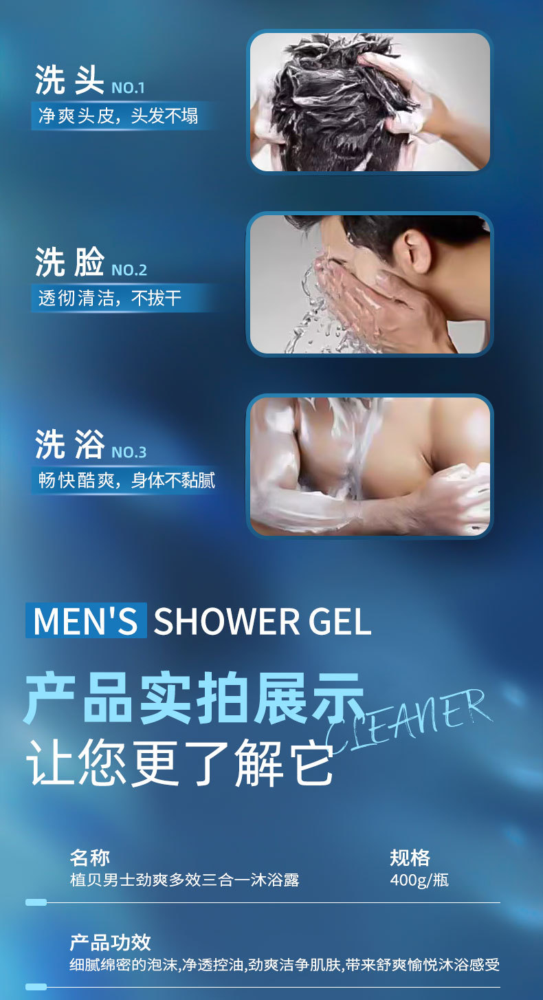 Мужской гель для душа Zhibe с многофункциональным эффектом «три в одном», 400 мл, шампунь, средство для мытья лица, аромат для ванны, освежающий мужской специальный гель