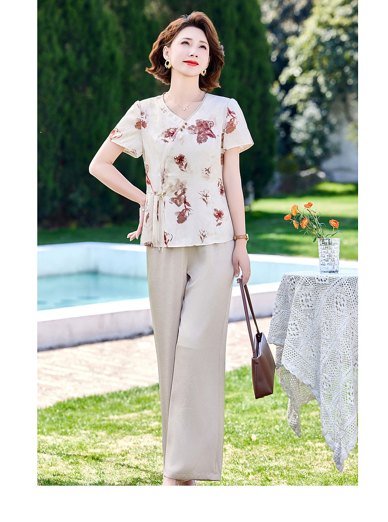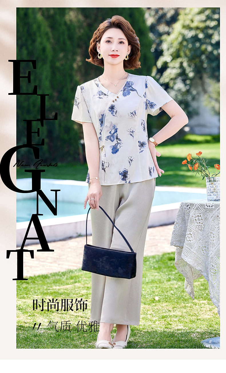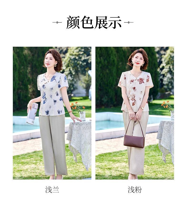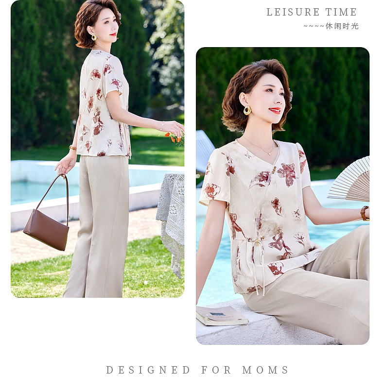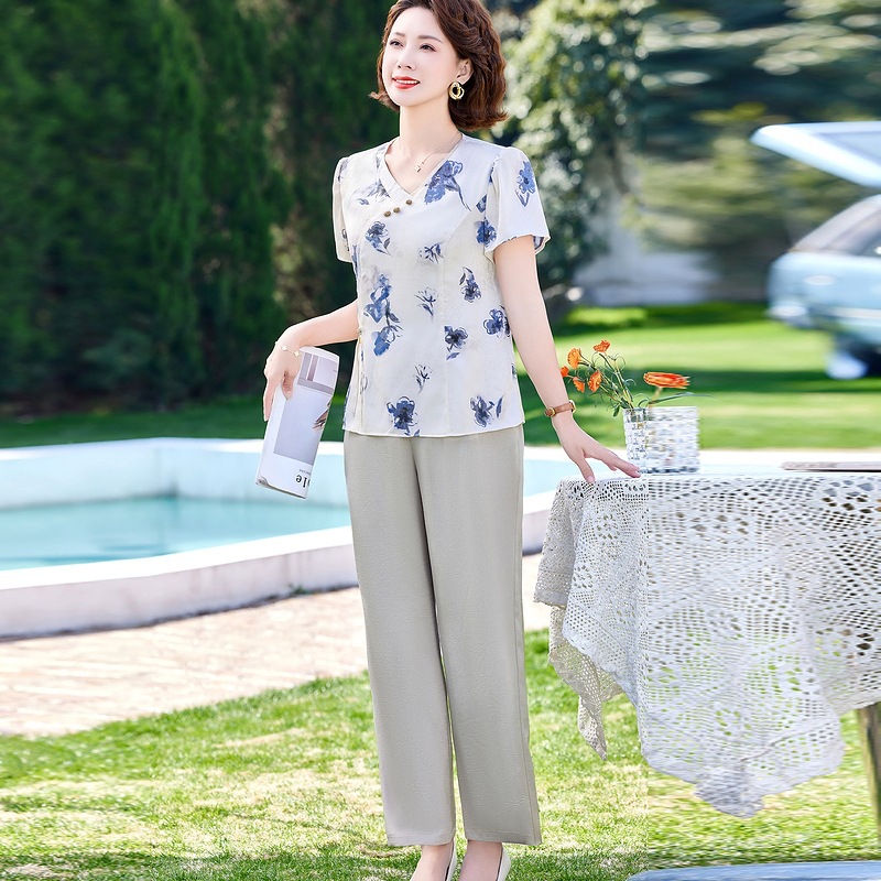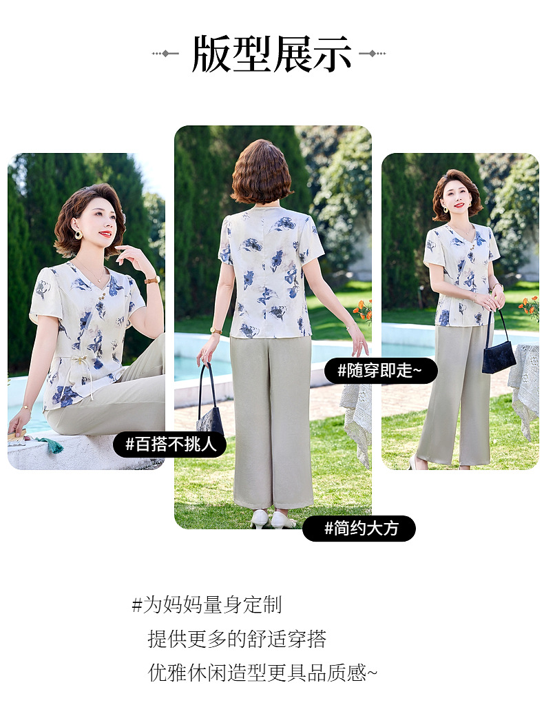 Летний женский повседневный костюм для мамы, модный и простой, женский костюм для похудения талии среднего и пожилого возраста, комплект из двух предметов для женщин среднего возраста
