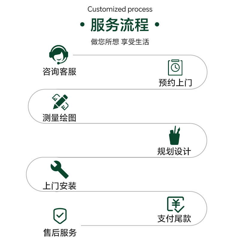 Установка «под ключ» [включая работу и материалы]; Бесплатные измерения «от двери до двери» [дизайнерское предложение]; Индивидуальный план/связаться со службой поддержки клиентов; Частичная перестройка/реконструкция/восстановление