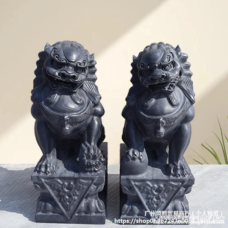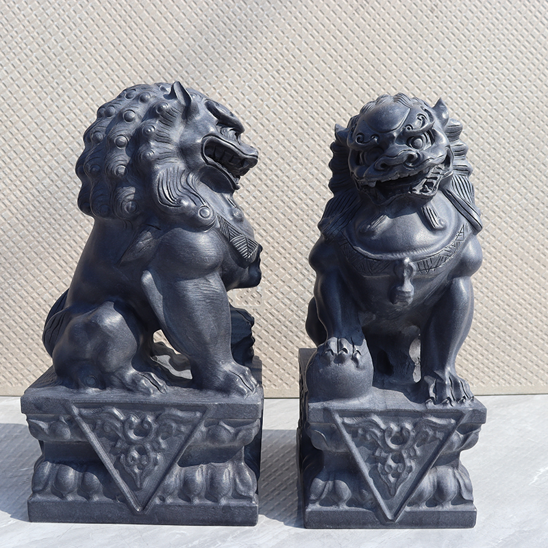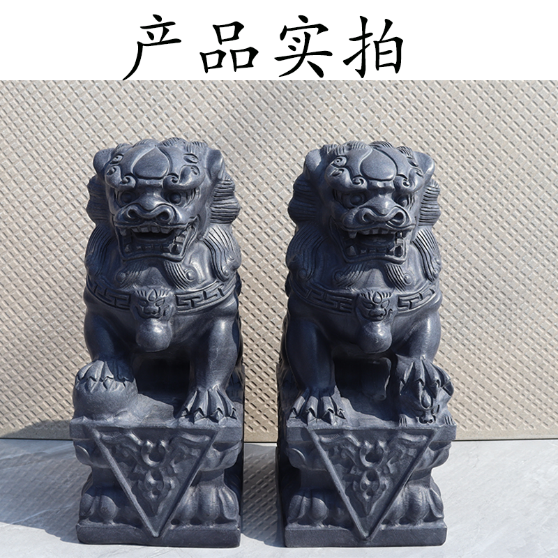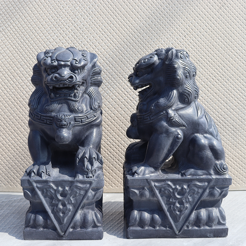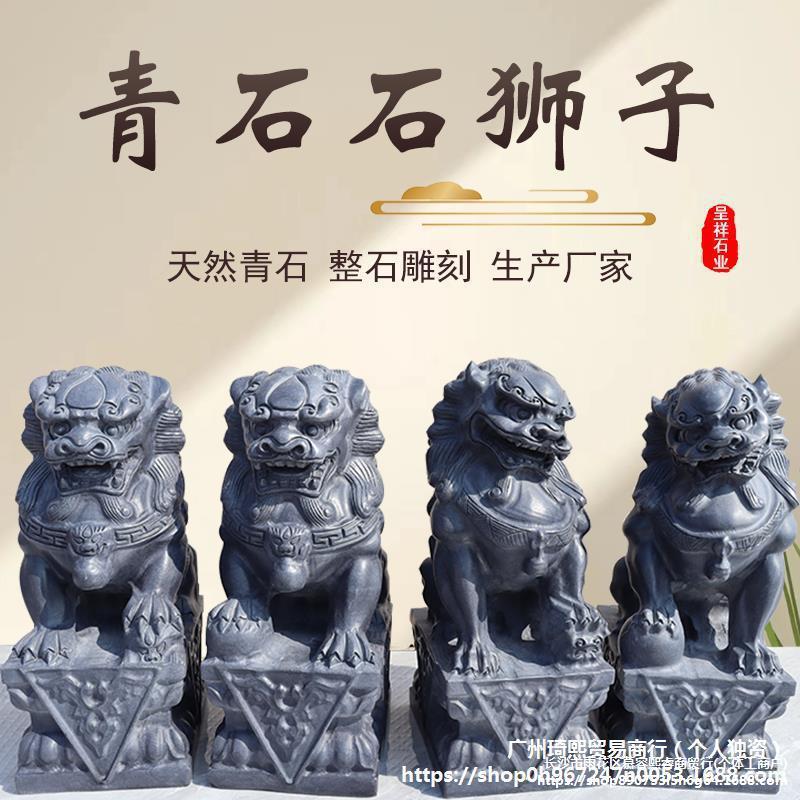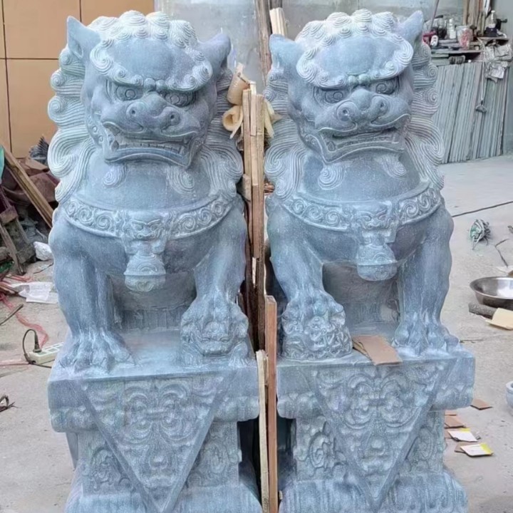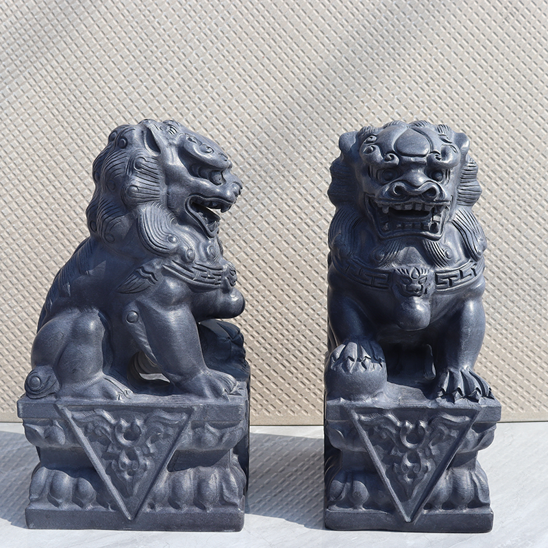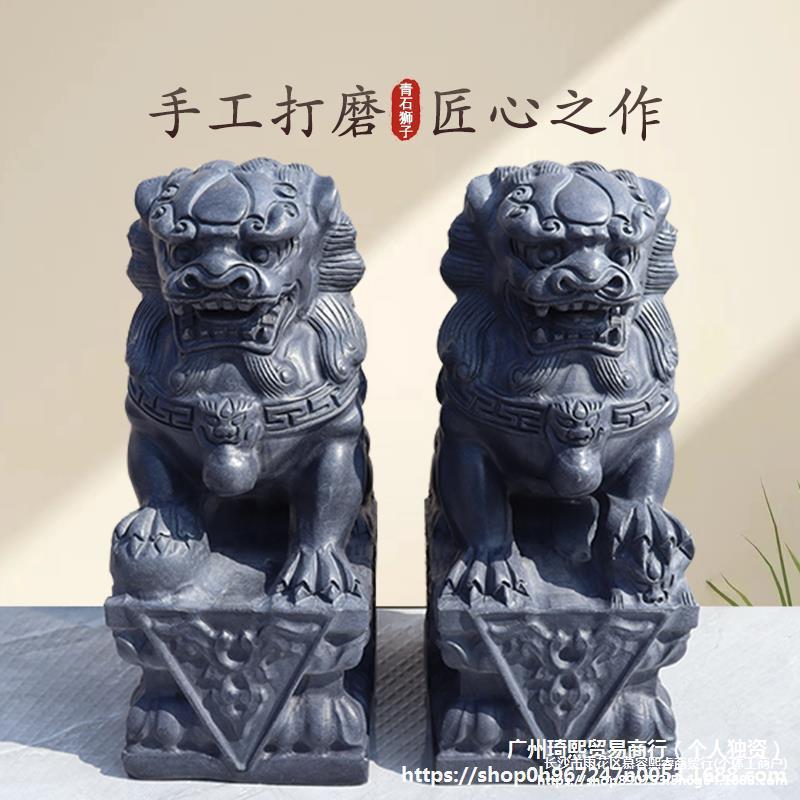 Пара каменных львов, маленькие каменные львы, львы из голубого камня, тонко вырезанные львы из голубого камня у входа в дом, перед гробницей