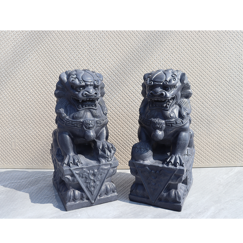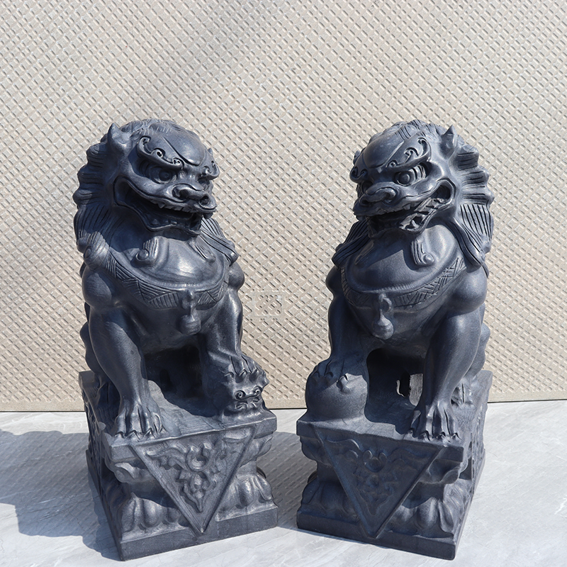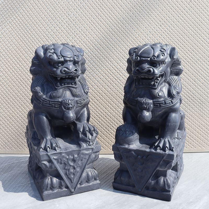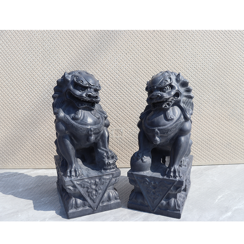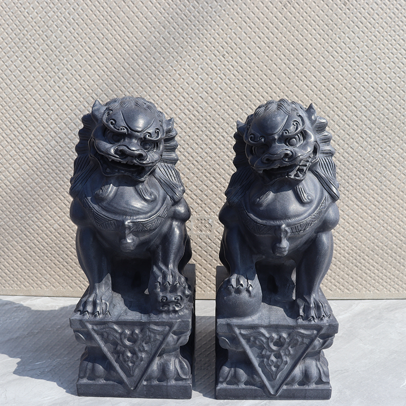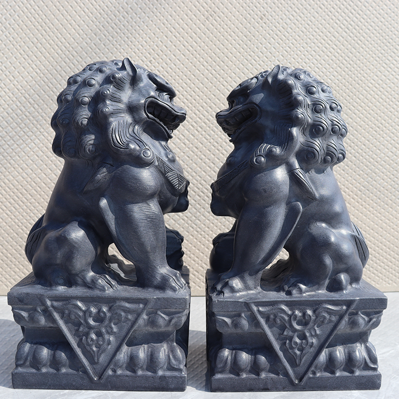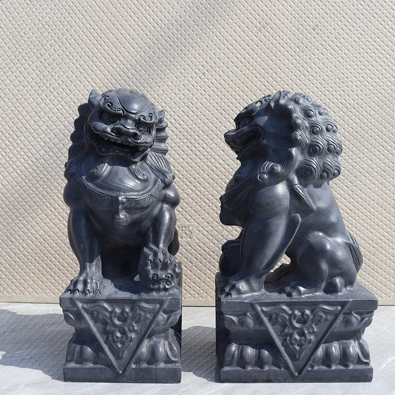Пара каменных львов, маленькие каменные львы, львы из голубого камня, тонко вырезанные львы из голубого камня у входа в дом, перед гробницей