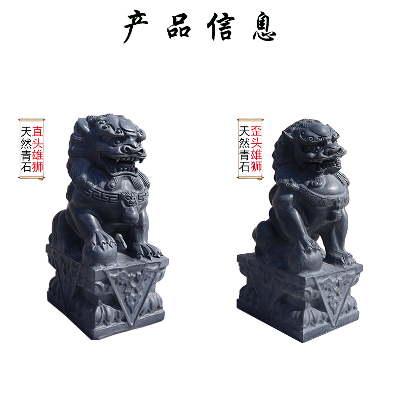 Лев с прямой головой из голубого камня имеет длину 8 см, ширину 7 см и высоту 15 см.; Bluestone лев с прямой головой длина 8 ширина 7 высота 15 см пара; Лев с кривой головой из голубого камня имеет длину 8 см, ширину 7 см и высоту 15 см.; Пара наклоненных львов из голубого камня, длина 8, ширина 7, высота 15 см.; Лев с прямой головой из голубого камня имеет длину 11 см, ширину 9 см и высоту 20 см.; Пара львов с прямой головой из голубого камня, длина 11, ширина 9, высота 20см.; Лев с кривой головой из голубого камня имеет длину 11 см, высоту 9 см и высоту 20 см.; Пара кривых львов из голубого камня, длина 11, ширина 9, высота 20 см.; Лев с прямой головой из голубого камня имеет длину 13 см, ширину 10 см и высоту 25 см.; Пара львов с прямой головой из голубого камня, длина 13, ширина 10, высота 25см.; Лев с кривой головой из голубого камня имеет длину 13 см, ширину 10 см и высоту 25 см.; Пара кривых львиных голов из голубого камня, длина 13, ширина 10, высота 25см.; Лев с прямой головой из голубого камня имеет длину 17 см, ширину 13 см и высоту 30 см.; Пара львов с прямой головой из голубого камня, длина 17, ширина 13, высота 30см.; Лев с кривой головой из голубого камня имеет длину 17 см, ширину 13 см и высоту 30 см.; Пара кривых львиных голов из голубого камня, длина 17, ширина 13, высота 30см.; Пара львов с прямой головой из голубого камня, длина 23, ширина 17, высота 40см.; Пара кривых львиных голов из голубого камня, длина 23, ширина 17, высота 40см.; Пара львов с прямой головой из голубого камня, длина 25см, ширина 20см, высота 50см.; Пара кривых львиных голов из голубого камня длиной 25 см, шириной 20 см и высотой 50 см.; Пара львов с прямой головой из голубого камня, длина 30см, ширина 23см, высота 60см.; Пара наклоненных львиных голов из голубого камня длиной 30 см, шириной 23 см и высотой 60 см.; Пара львов с прямой головой из голубого камня, длина 40см, ширина 30см, высота 80см.; Пара кривых львиных голов из голубого камня, длина 40см, ширина 30см, высота 80см.; Пара львов с прямой головой из голубого камня, длина 48см, ширина 37см, высота 100см.; Пара кривых львиных голов из голубого камня, длина 48см, ширина 37см, высота 100см.; Пара львов с прямой головой из голубого камня, длина 60 см, ширина 50 см, высота 120 см.; Пара кривых львиных голов из голубого камня длиной 60 см, шириной 50 см и высотой 120 см.