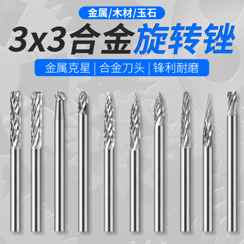 3*3 твердосплавный вращающийся напильник, набор вращающихся напильников 3 мм, электрическая шлифовальная машина, электрический фрезер из вольфрамовой стали, электрическая шлифовальная головка, шлифовальная головка