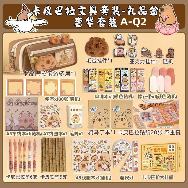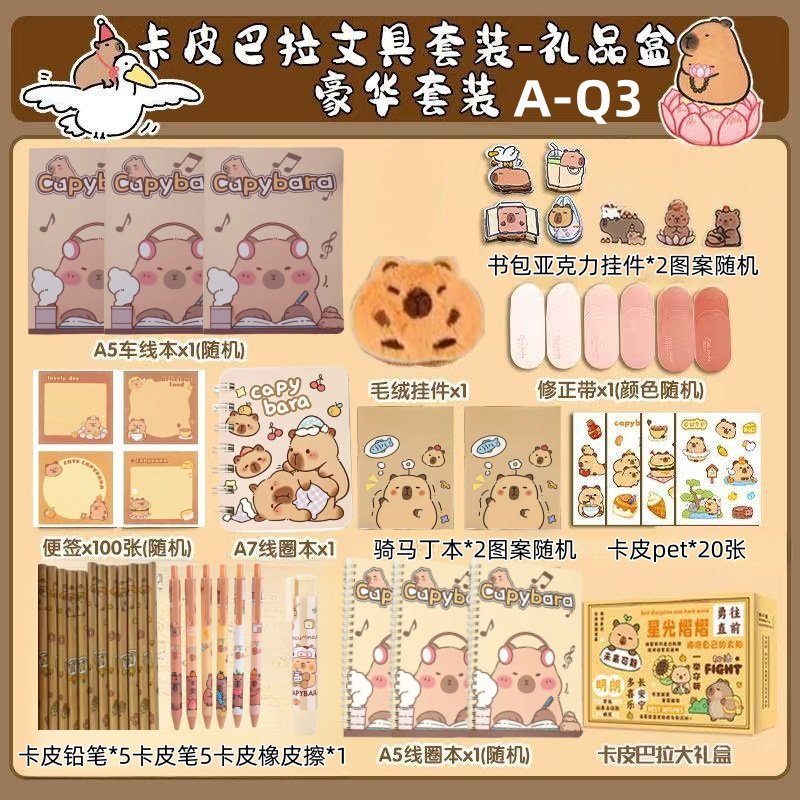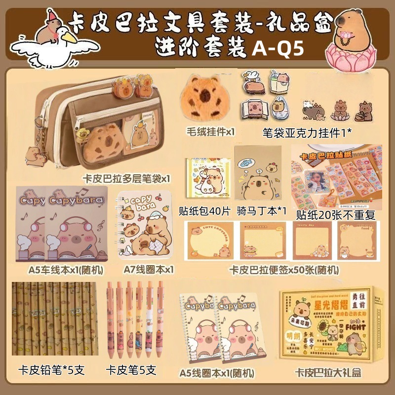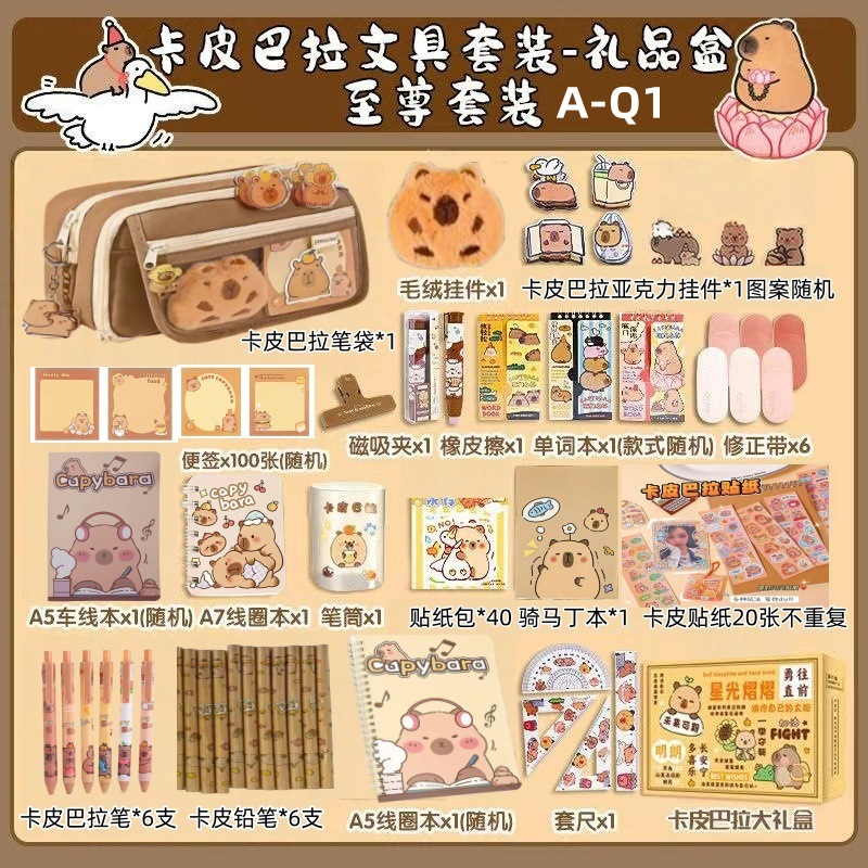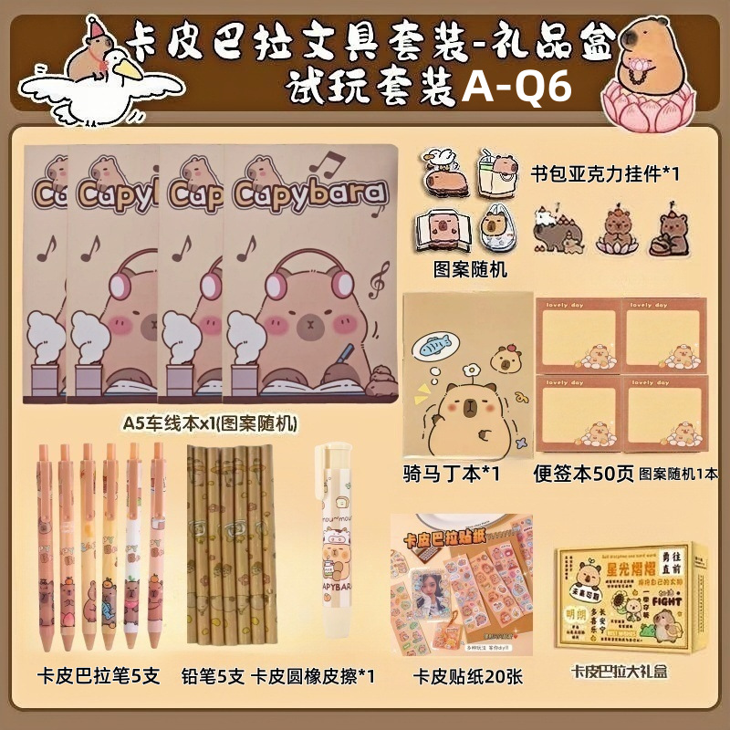 Костюм Капибала [Базовый стиль A-Q6]; Костюм Капибала [Расширенная модель A-Q5]; Костюм Капибала [Доступная модель-менеджер магазина рекомендует A-Q4]; Костюм Капибала [Роскошная модель A-Q3]; Костюм Капибала [Модернизированная роскошная модель A-Q2]; Костюм Капибала [Топ с Supreme Style A-Q1]; Подарочная коробка с набором канцелярских принадлежностей с розовым котом