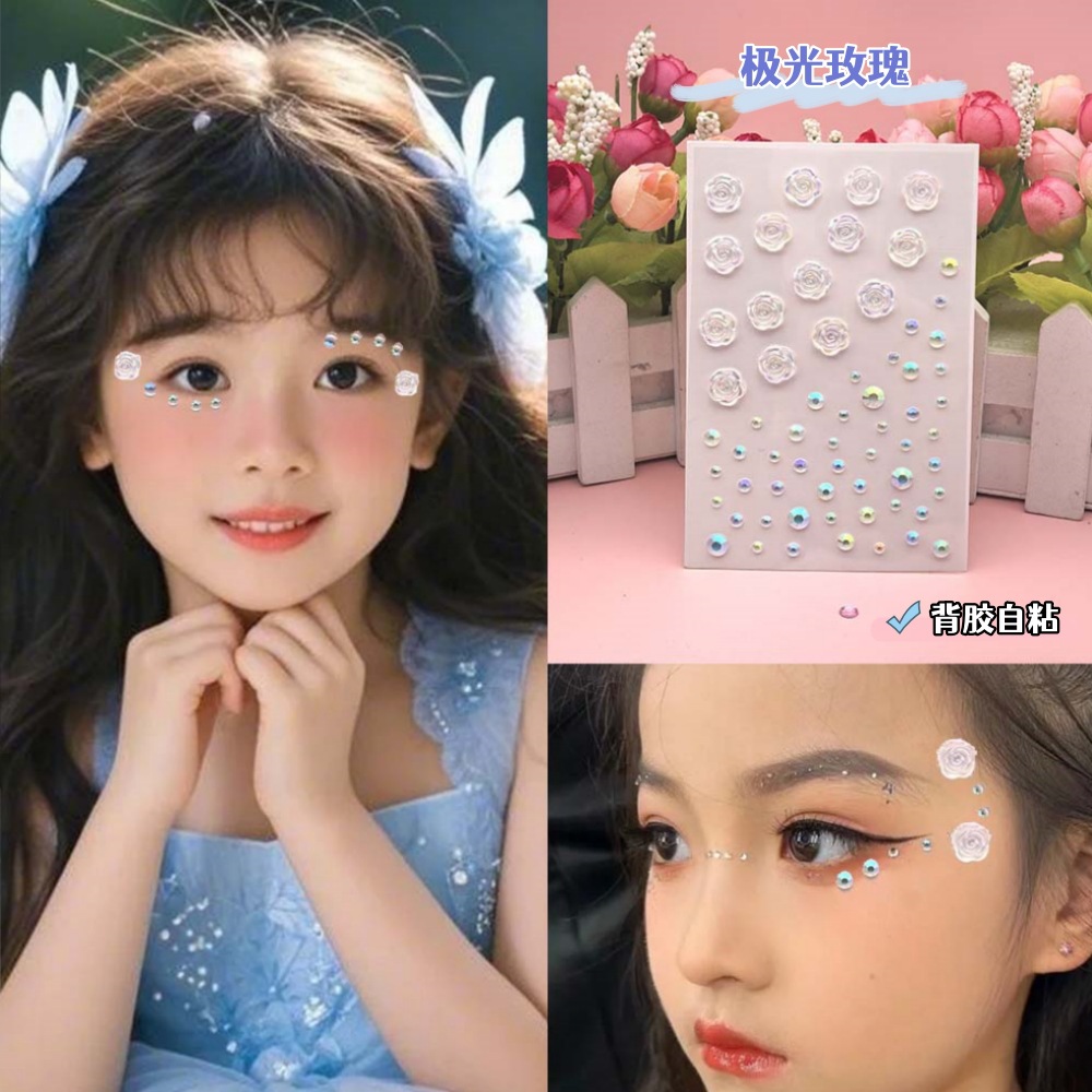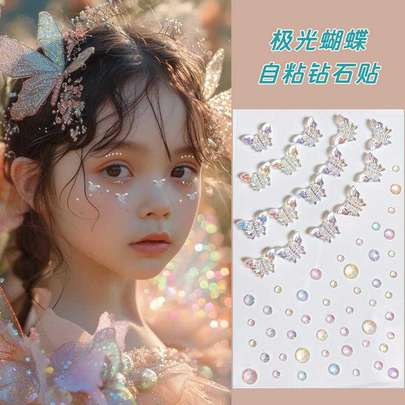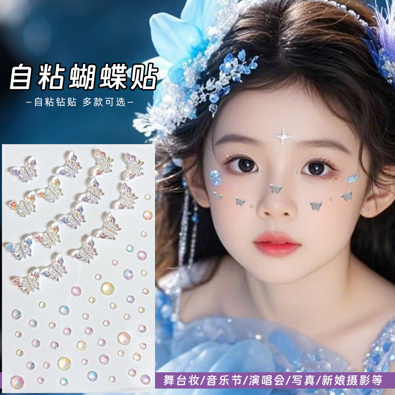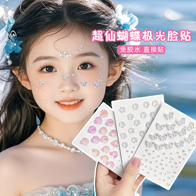 Детские наклейки для макияжа, аксессуары для лица, сценический макияж, наклейки для лица со сверкающими бриллиантами, тюлевые жемчужины-бабочки Авроры
