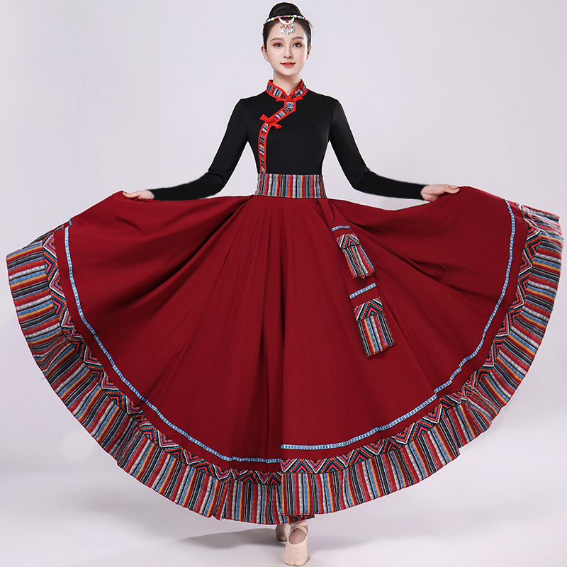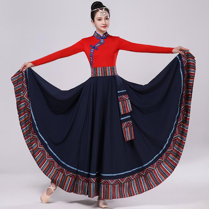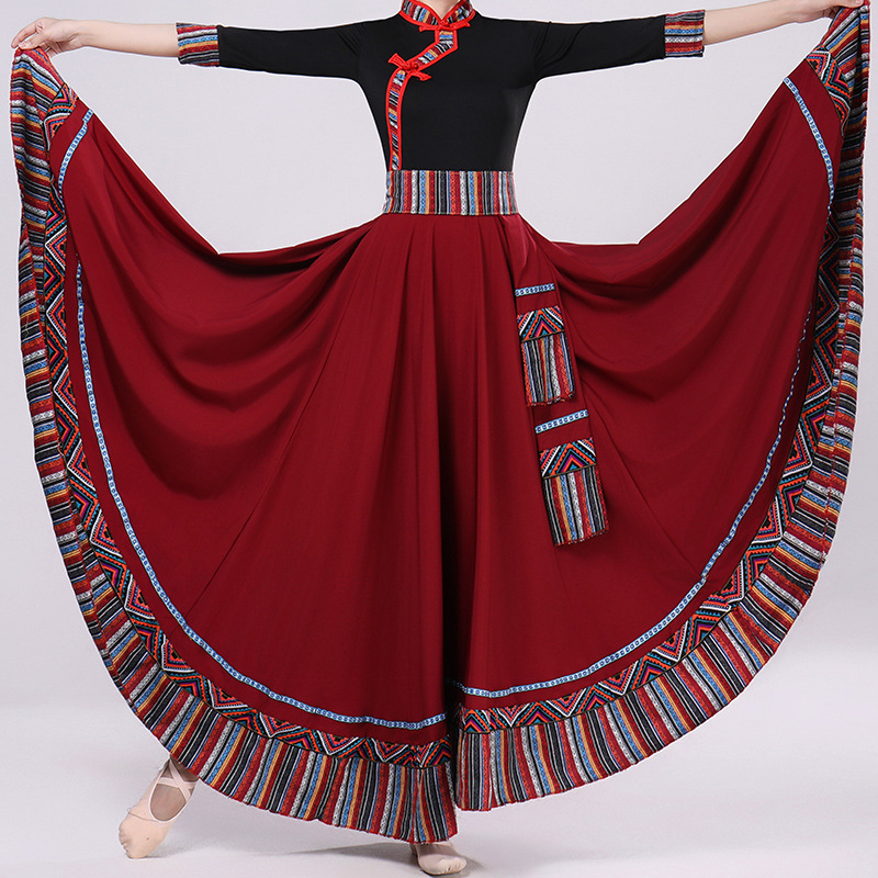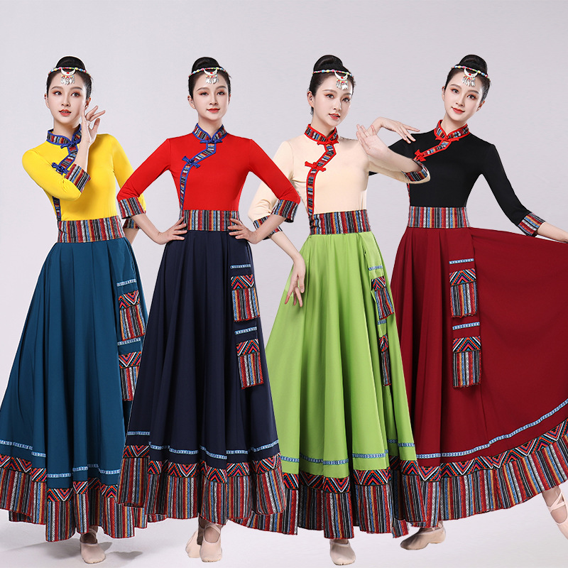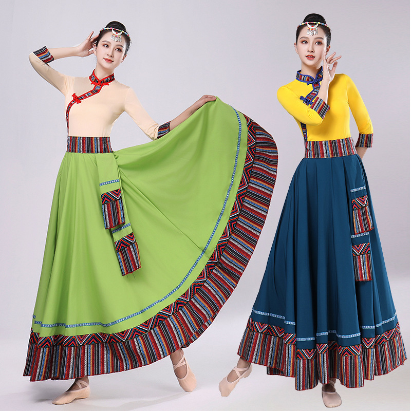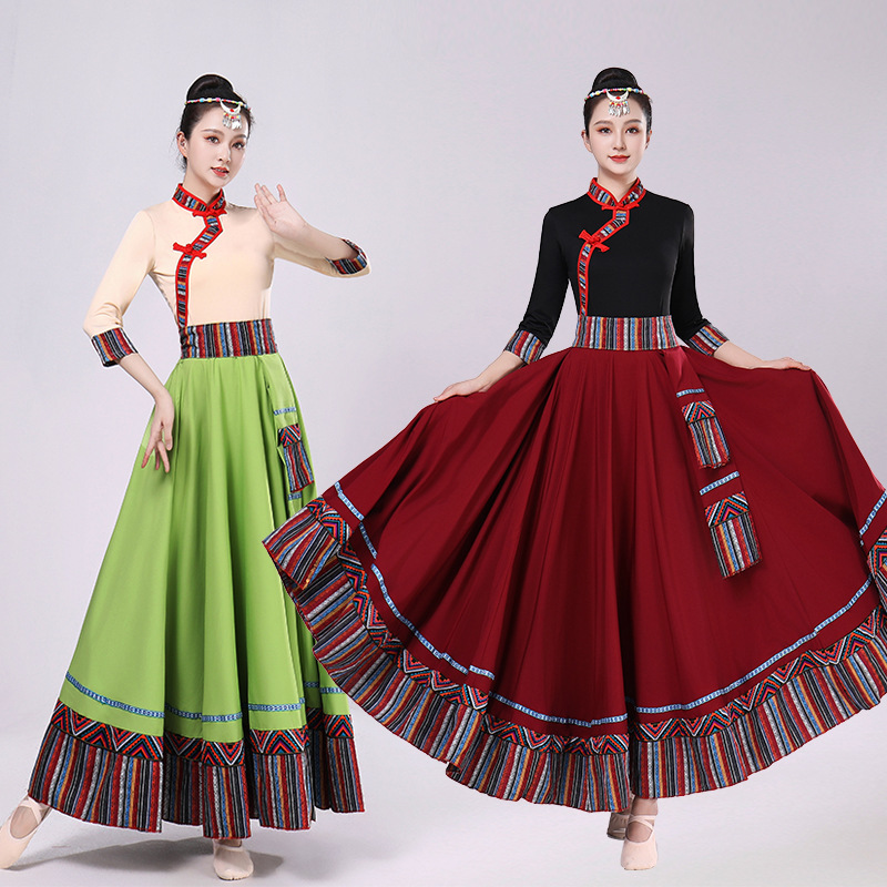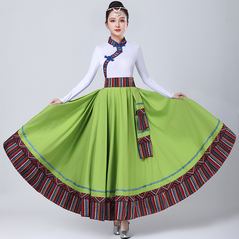 Тибетская танцевальная одежда, женский костюм, топ из молочного шелка, юбка для художественного экзамена, большая распашная юбка, длинная юбка, тренировочная юбка