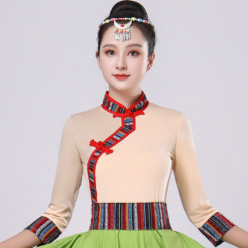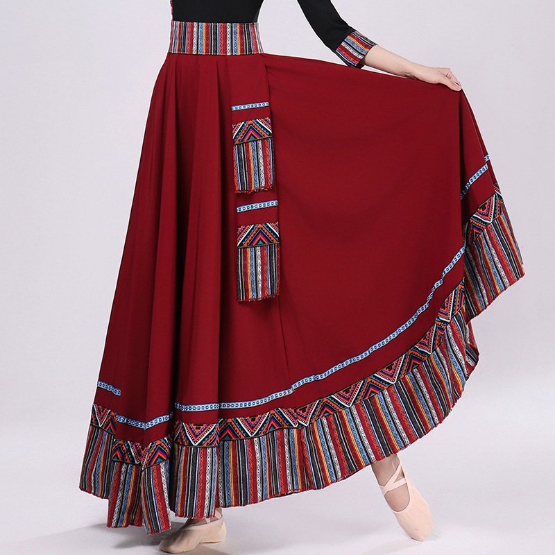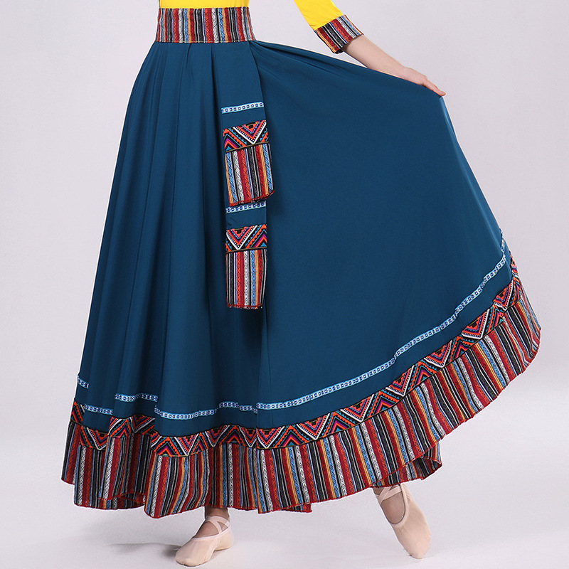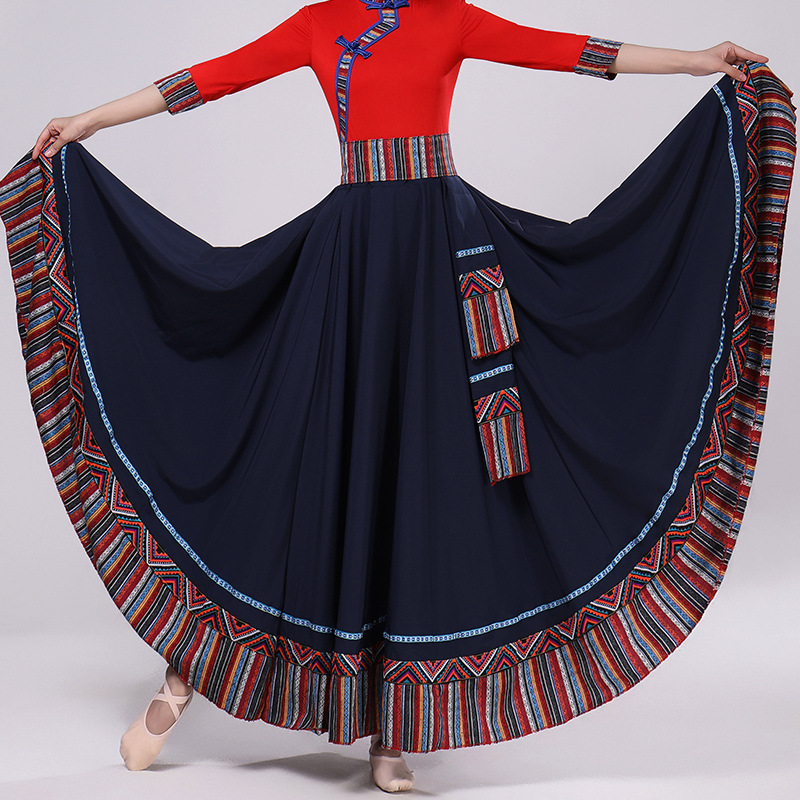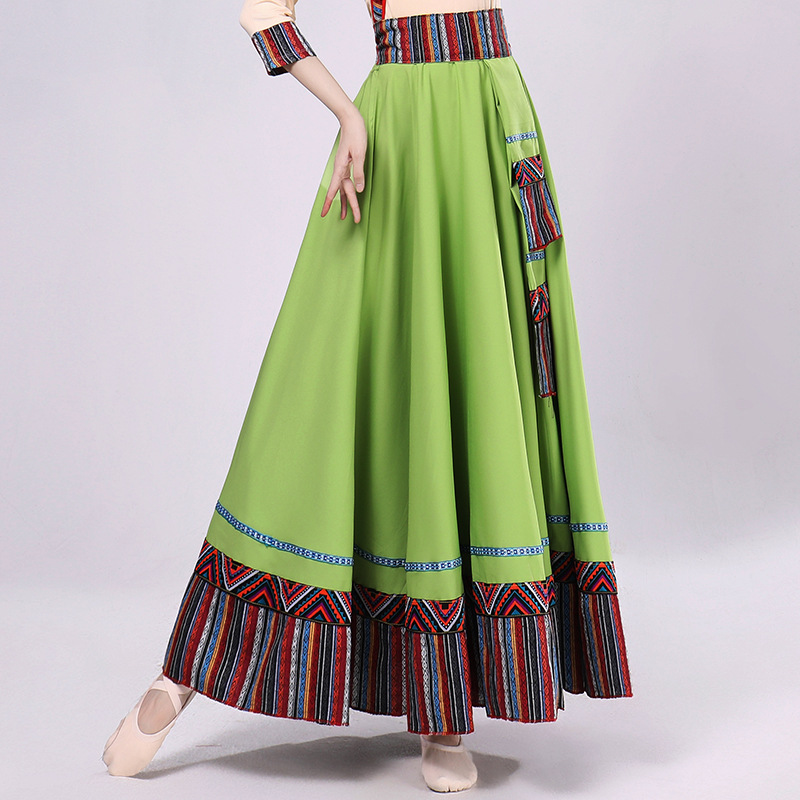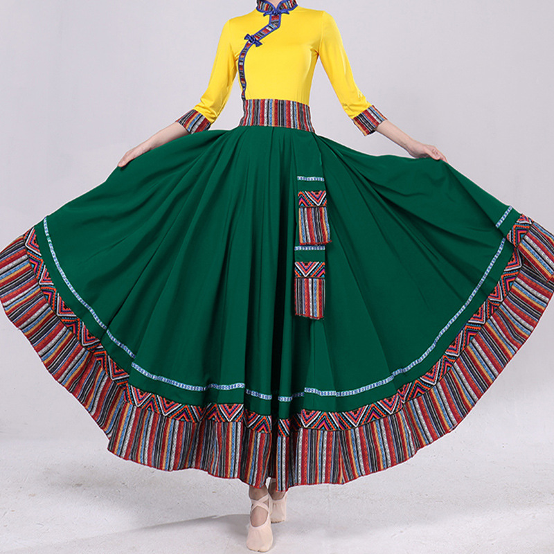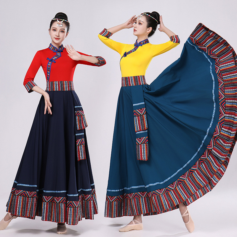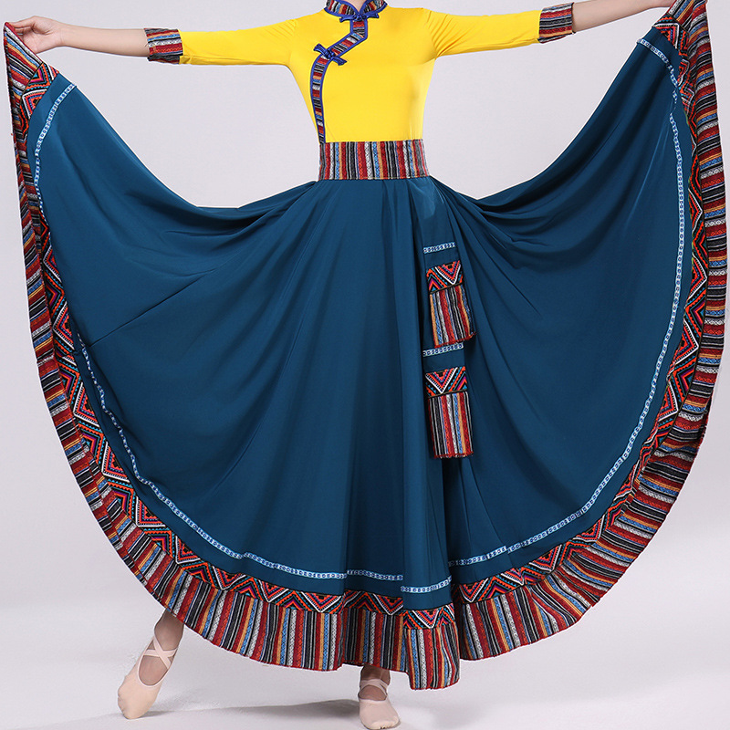 Тибетская танцевальная одежда, женский костюм, топ из молочного шелка, юбка для художественного экзамена, большая распашная юбка, длинная юбка, тренировочная юбка