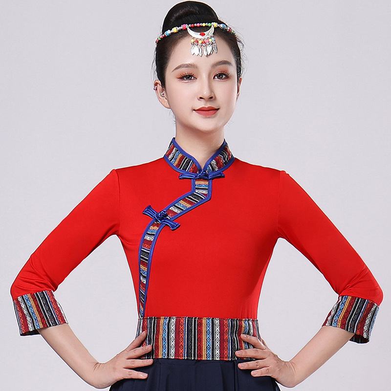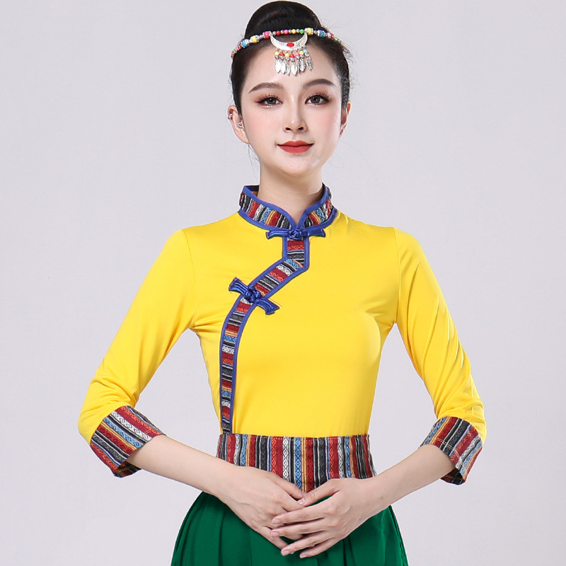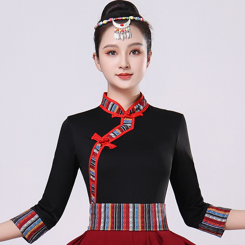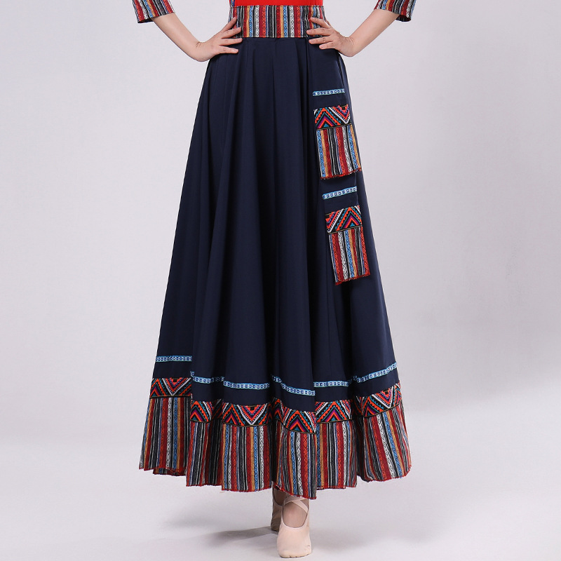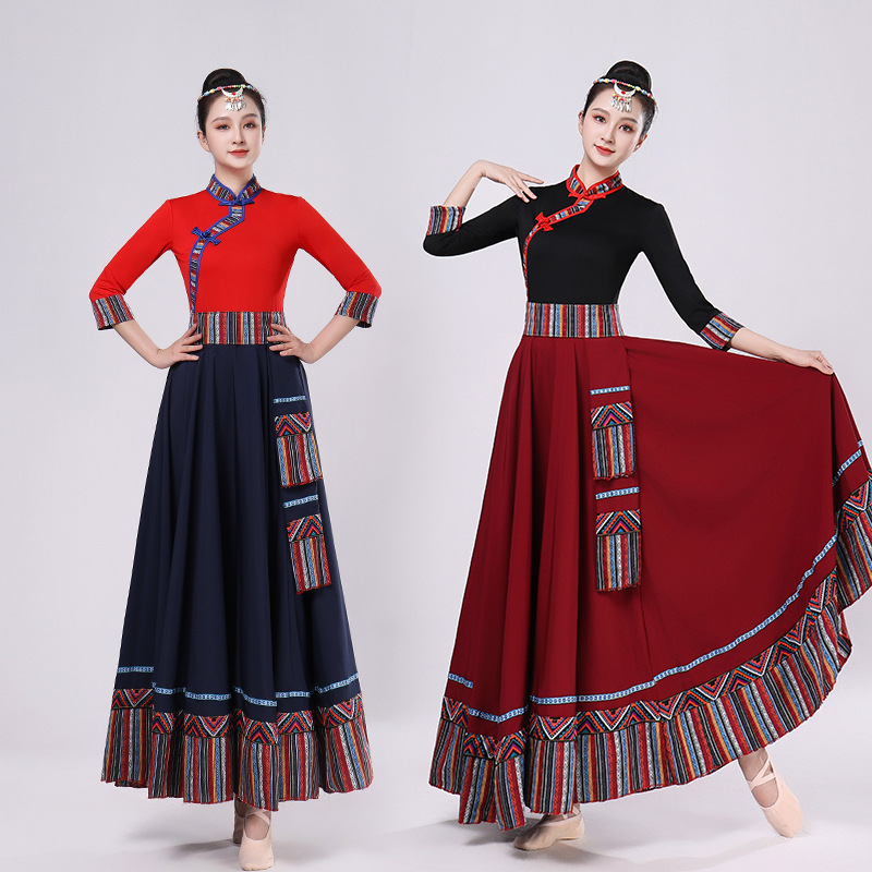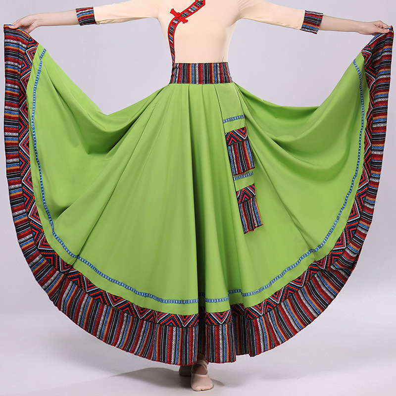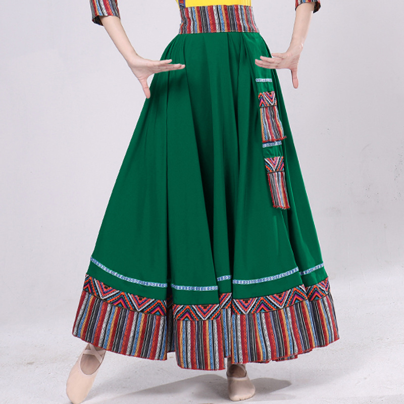 Тибетская танцевальная одежда, женский костюм, топ из молочного шелка, юбка для художественного экзамена, большая распашная юбка, длинная юбка, тренировочная юбка